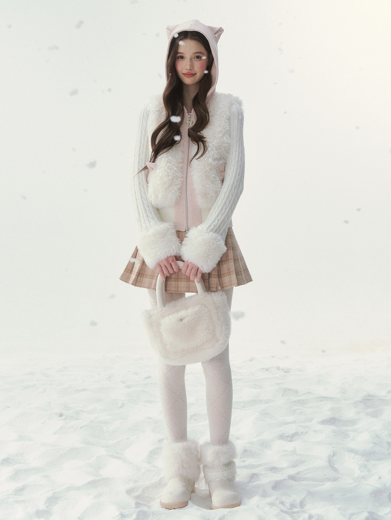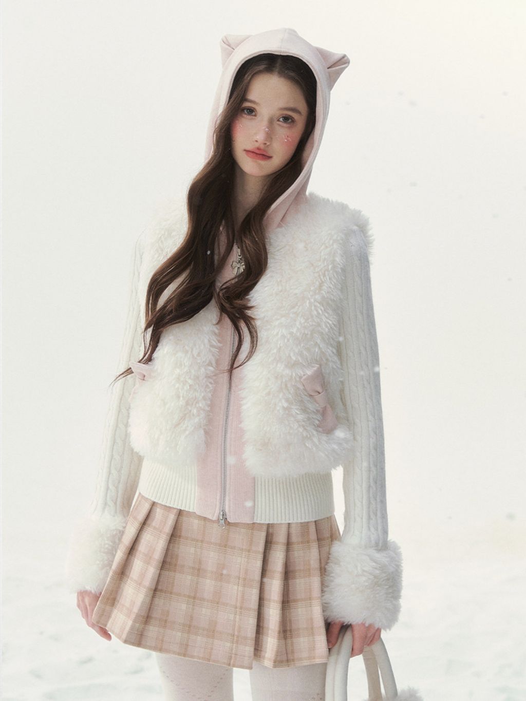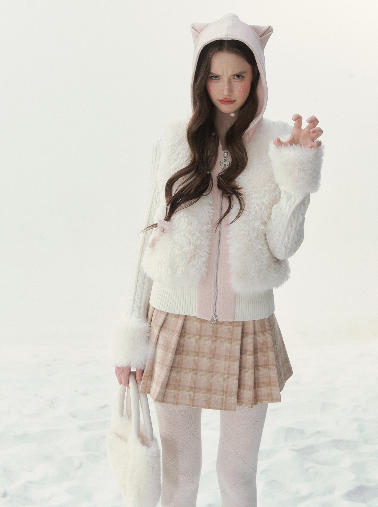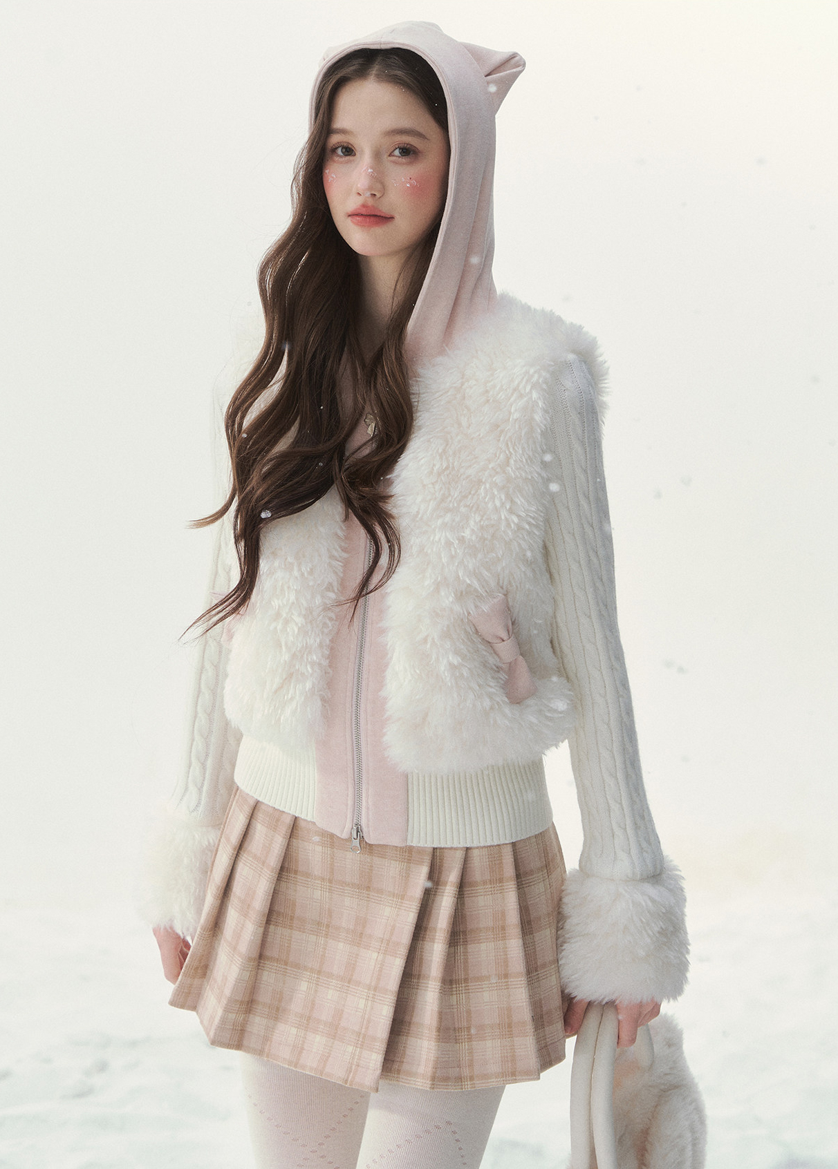 캣 이어 후드와 풍성한 퍼 디테일이 더해진 집업 가디건으로, 사랑스러운 겨울 포인트를 완성합니다.