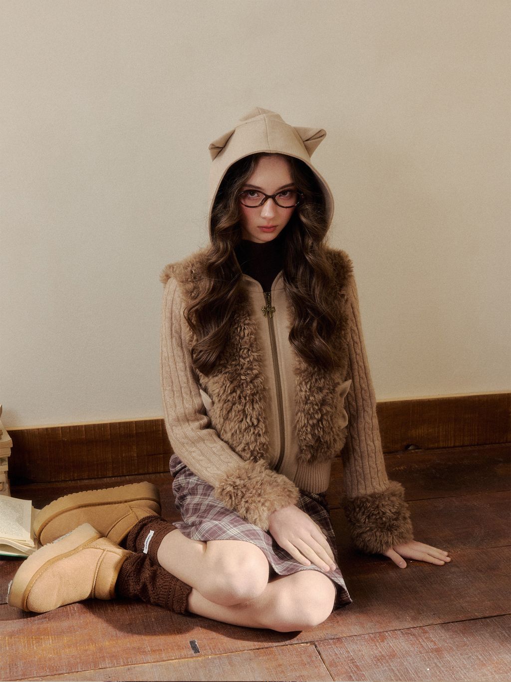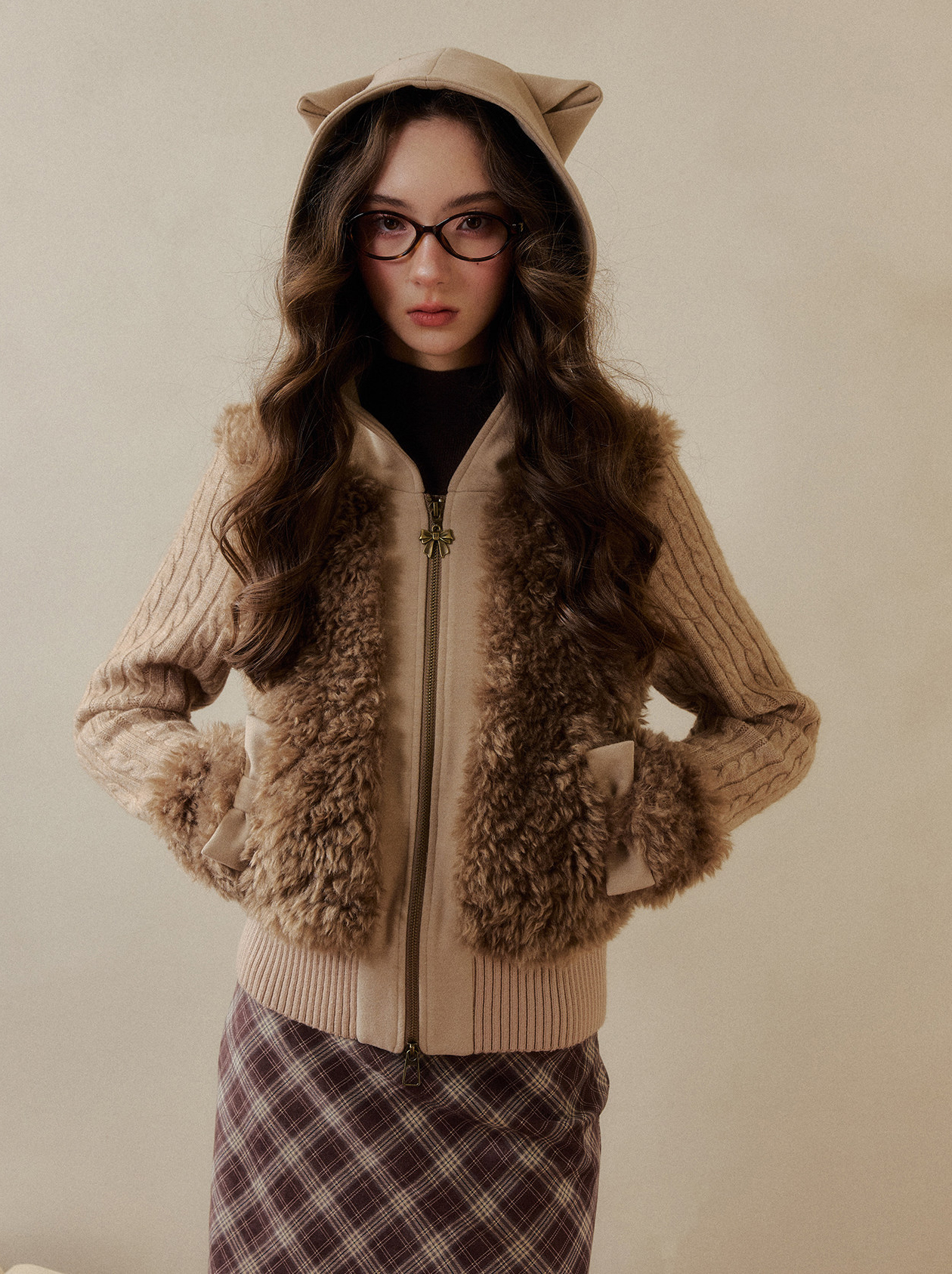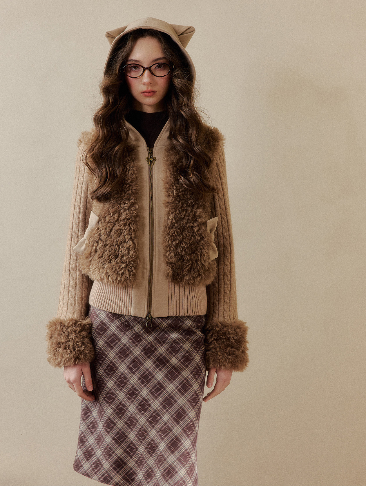 캣 이어 후드와 풍성한 퍼 디테일이 더해진 집업 가디건으로, 사랑스러운 겨울 포인트를 완성합니다.