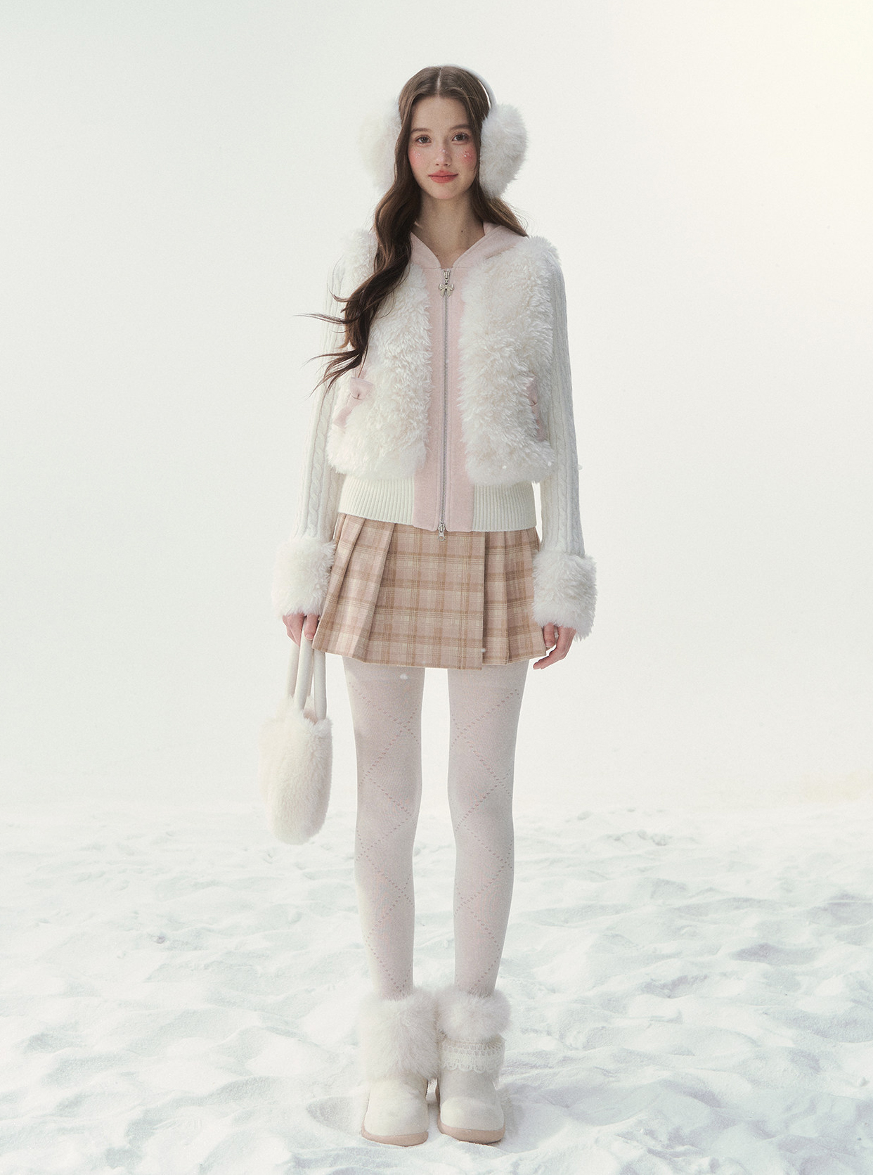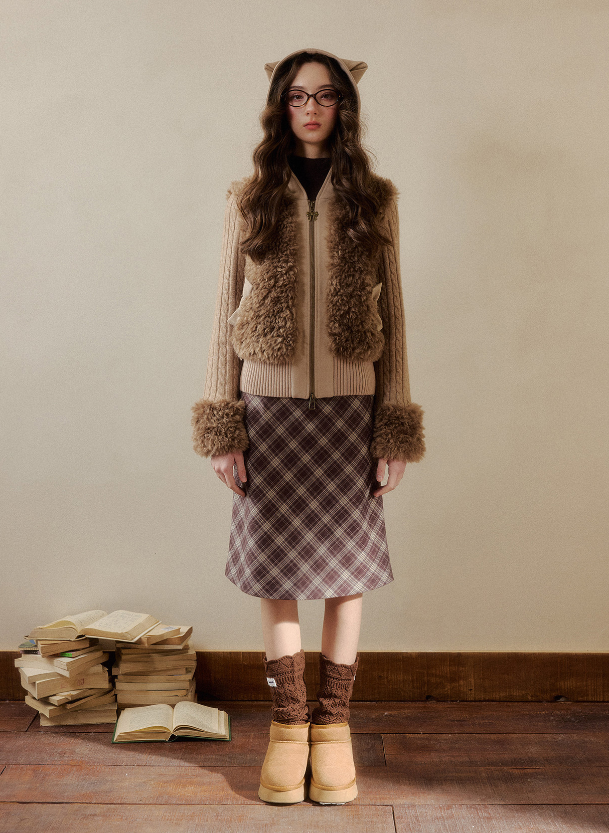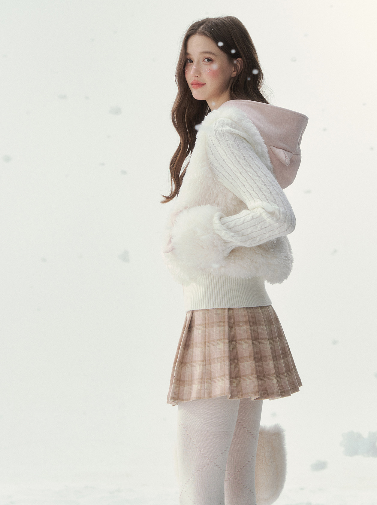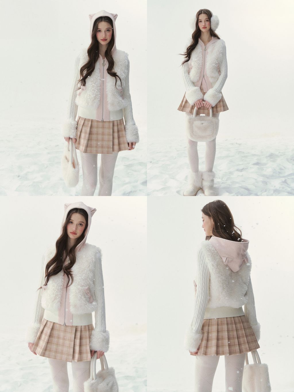 캣 이어 후드와 풍성한 퍼 디테일이 더해진 집업 가디건으로, 사랑스러운 겨울 포인트를 완성합니다.