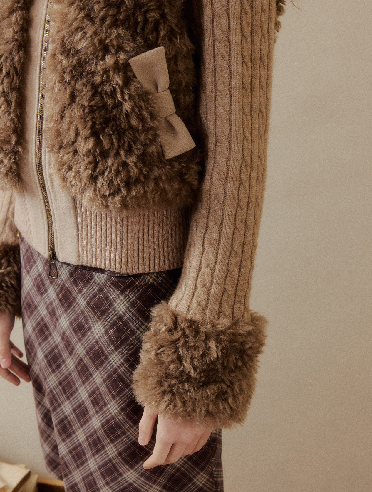 - 소매 퍼 마감 디테일로 전체 스타일의 완성도를 높인 겨울 아이템
