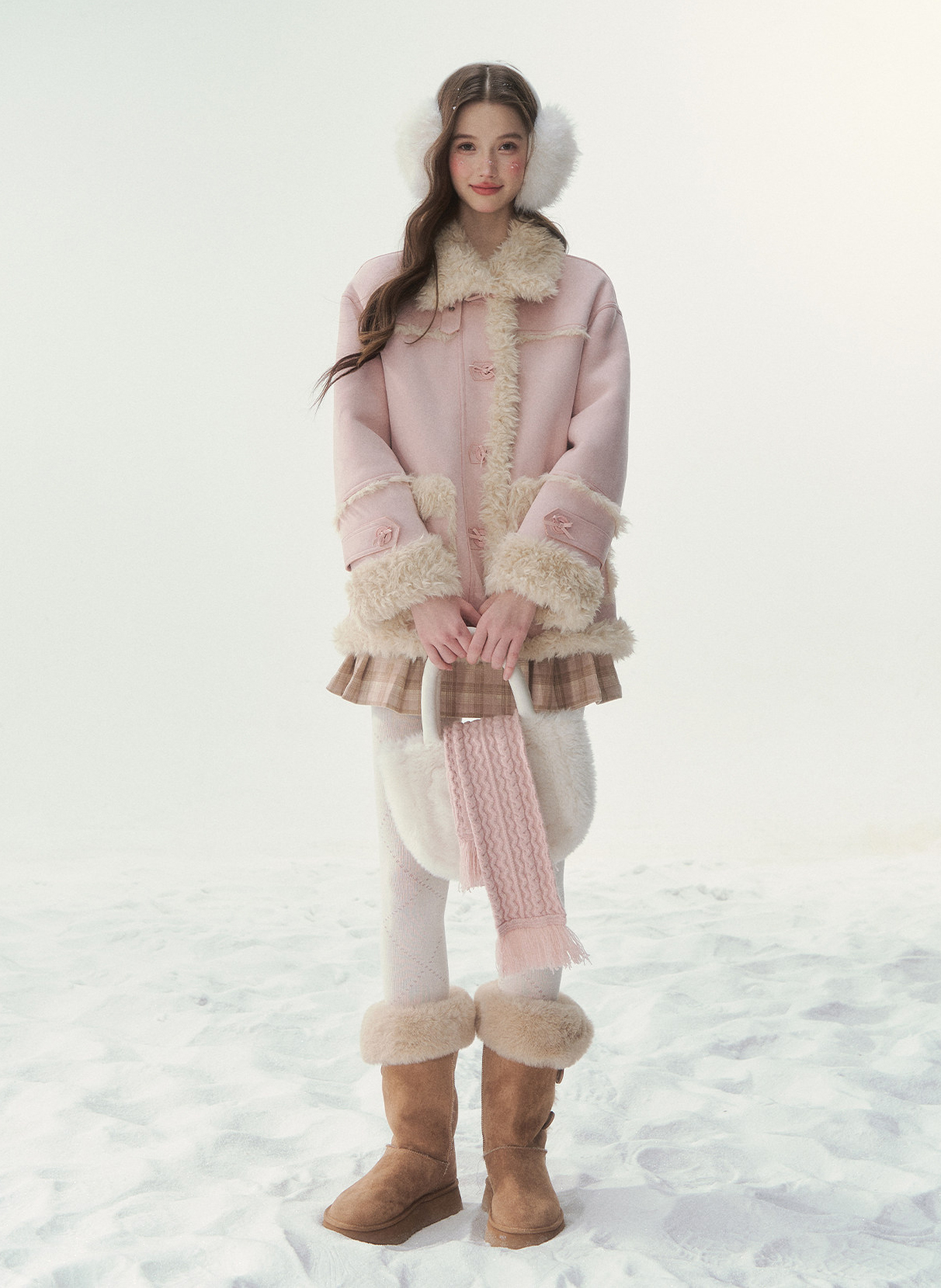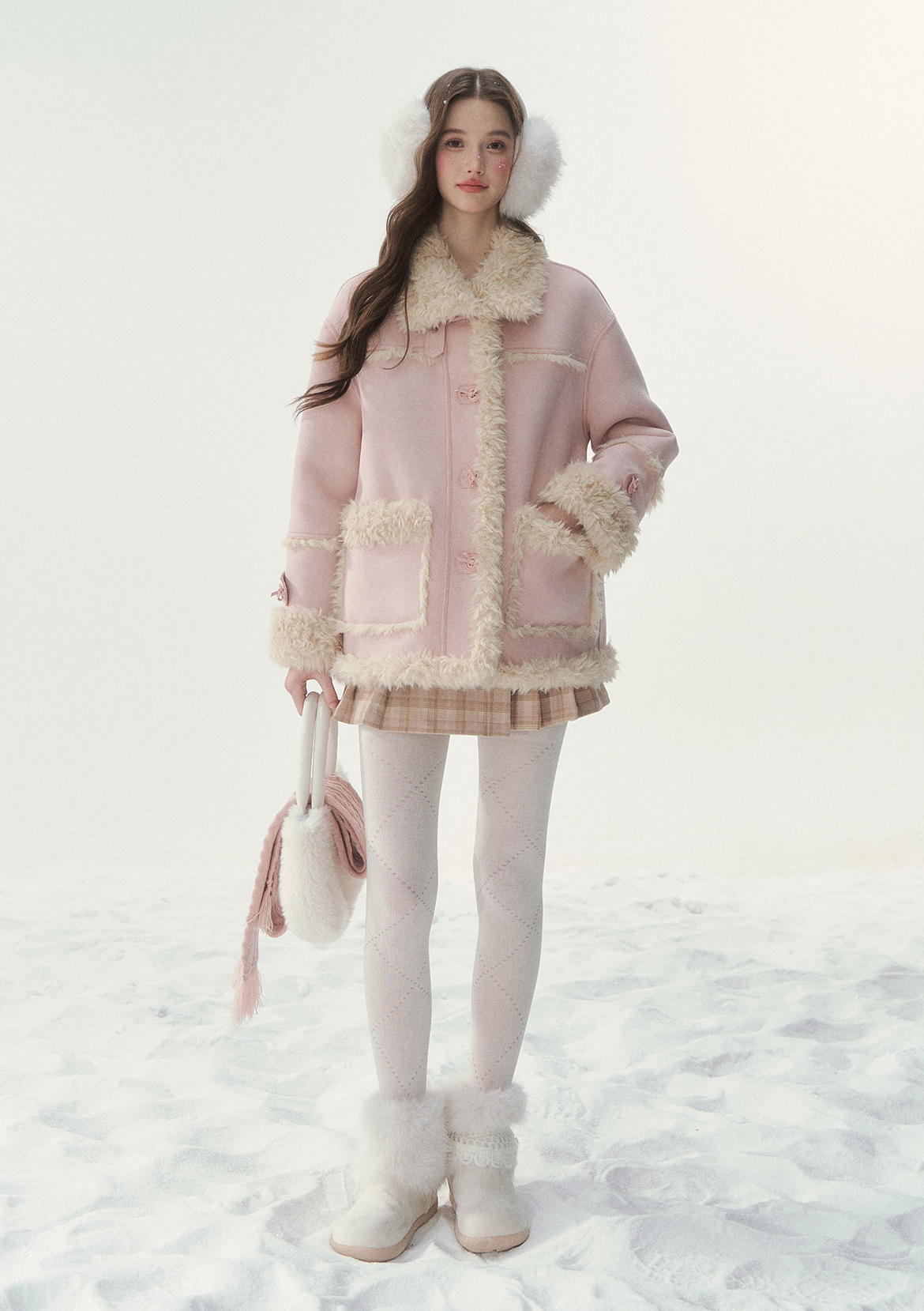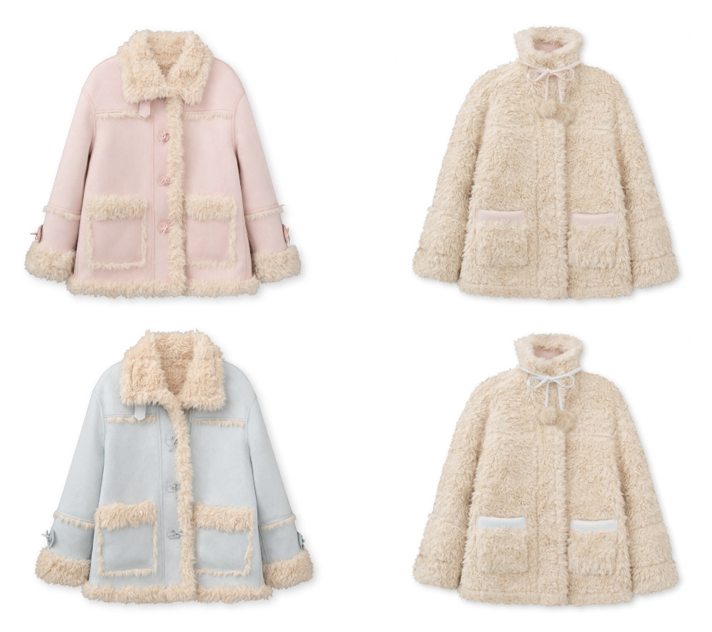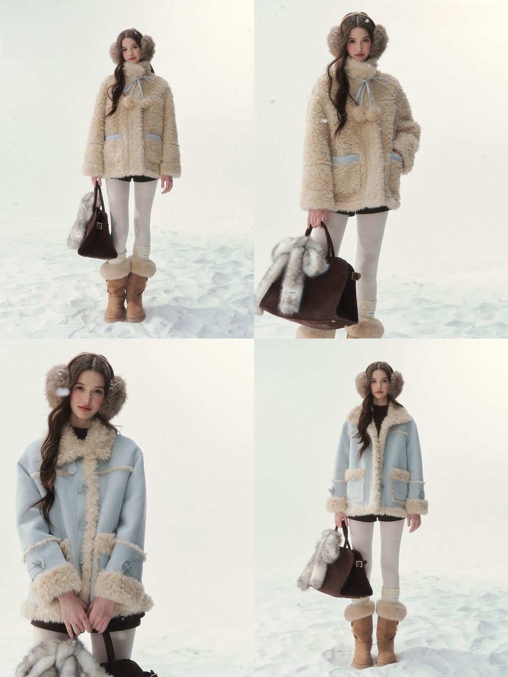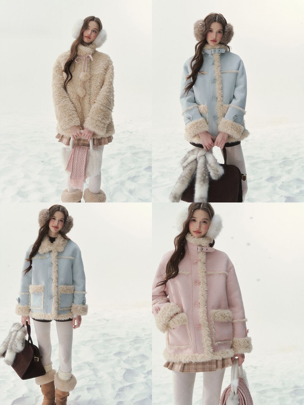 - 블러시 핑크, 소프트 블루 등 파스텔 컬러 구성으로 사랑스러운 겨울 스타일링 연출
