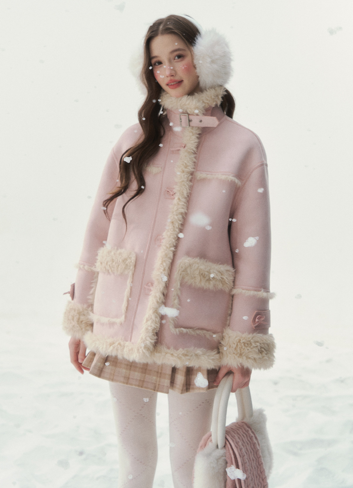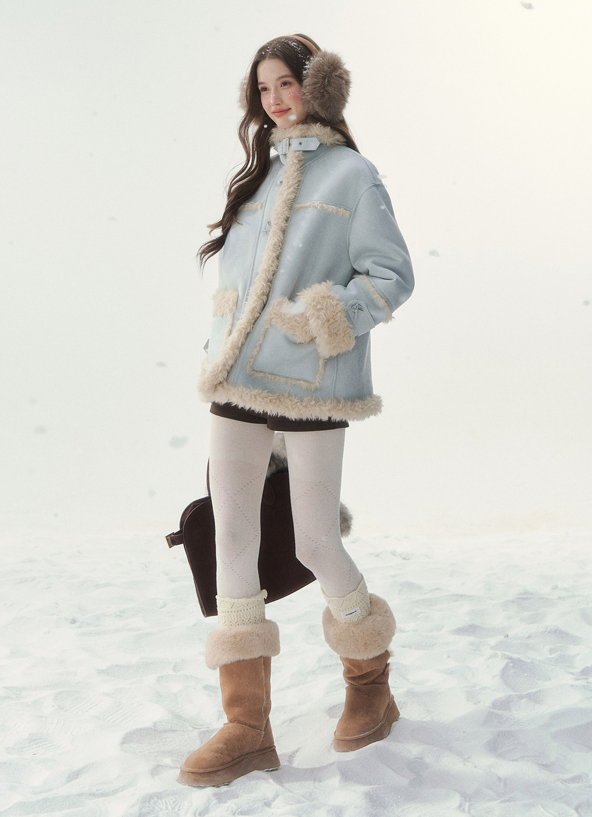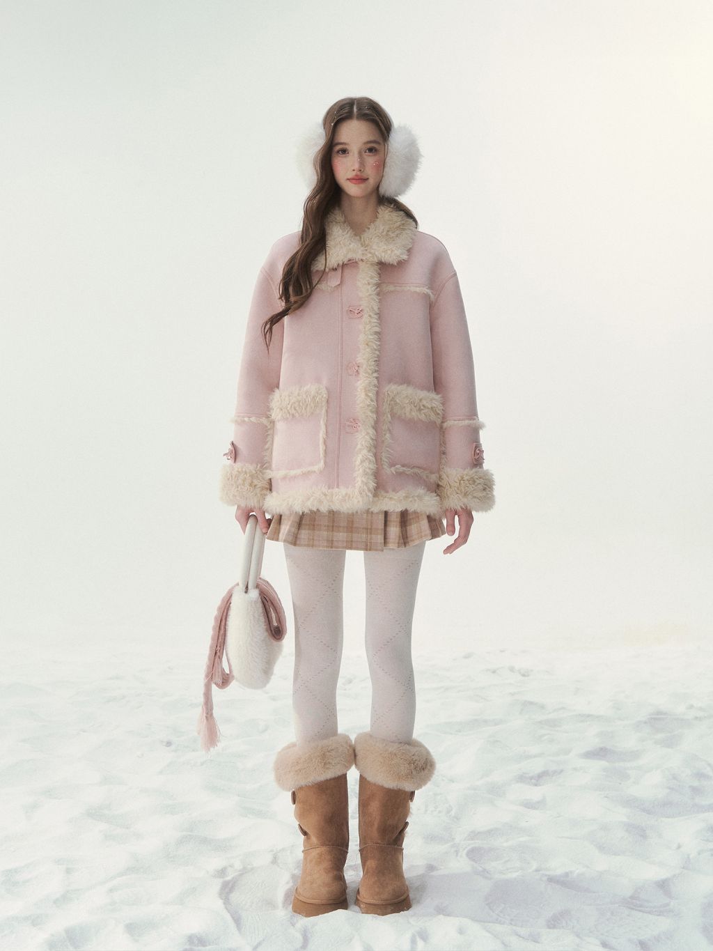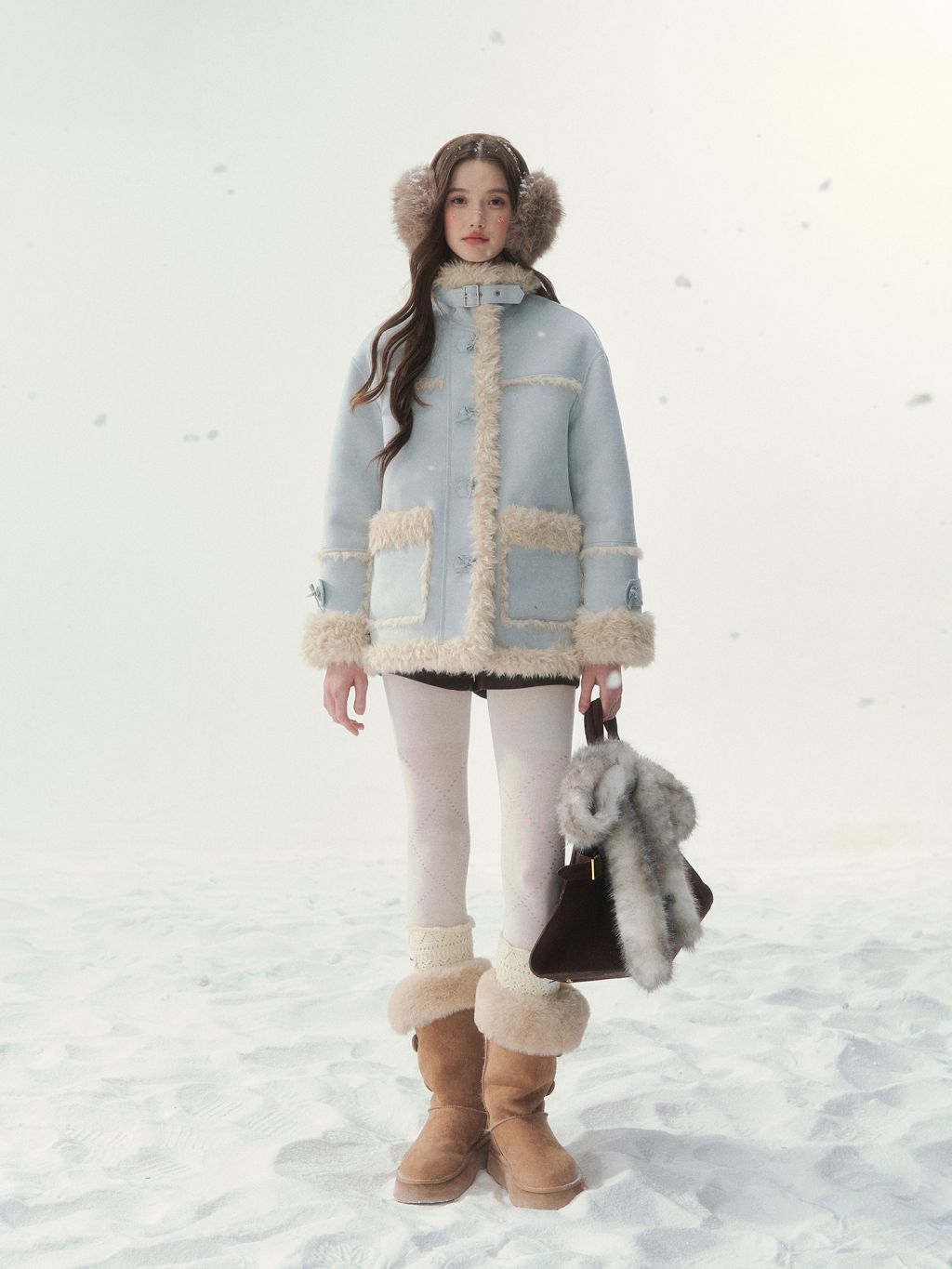 - 블러시 핑크, 소프트 블루 등 파스텔 컬러 구성으로 사랑스러운 겨울 스타일링 연출