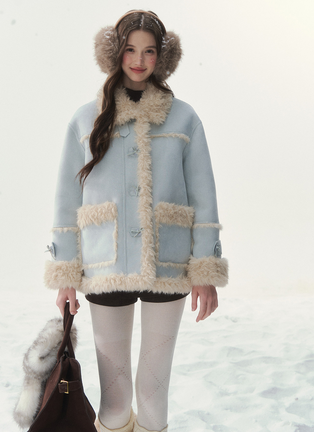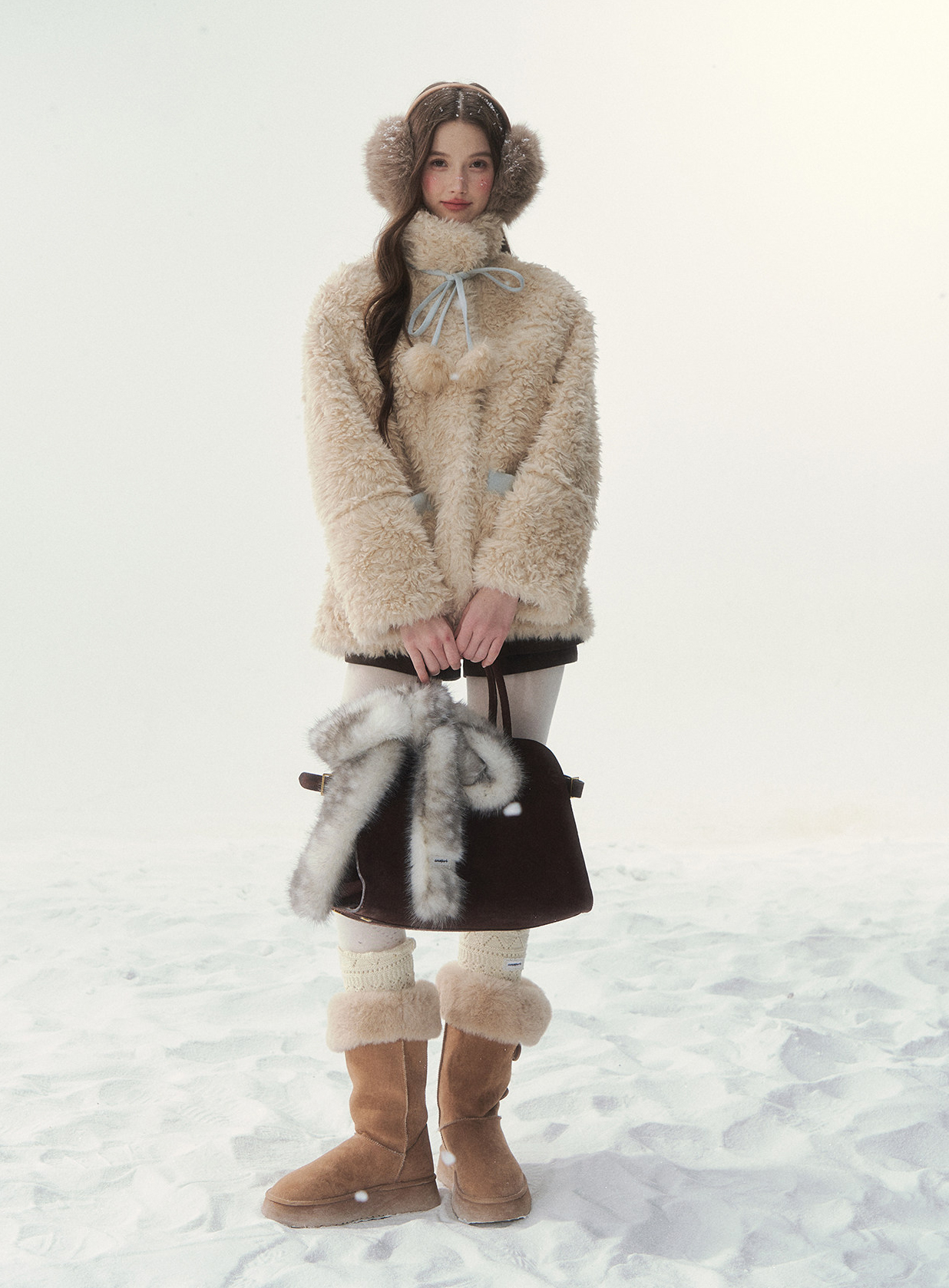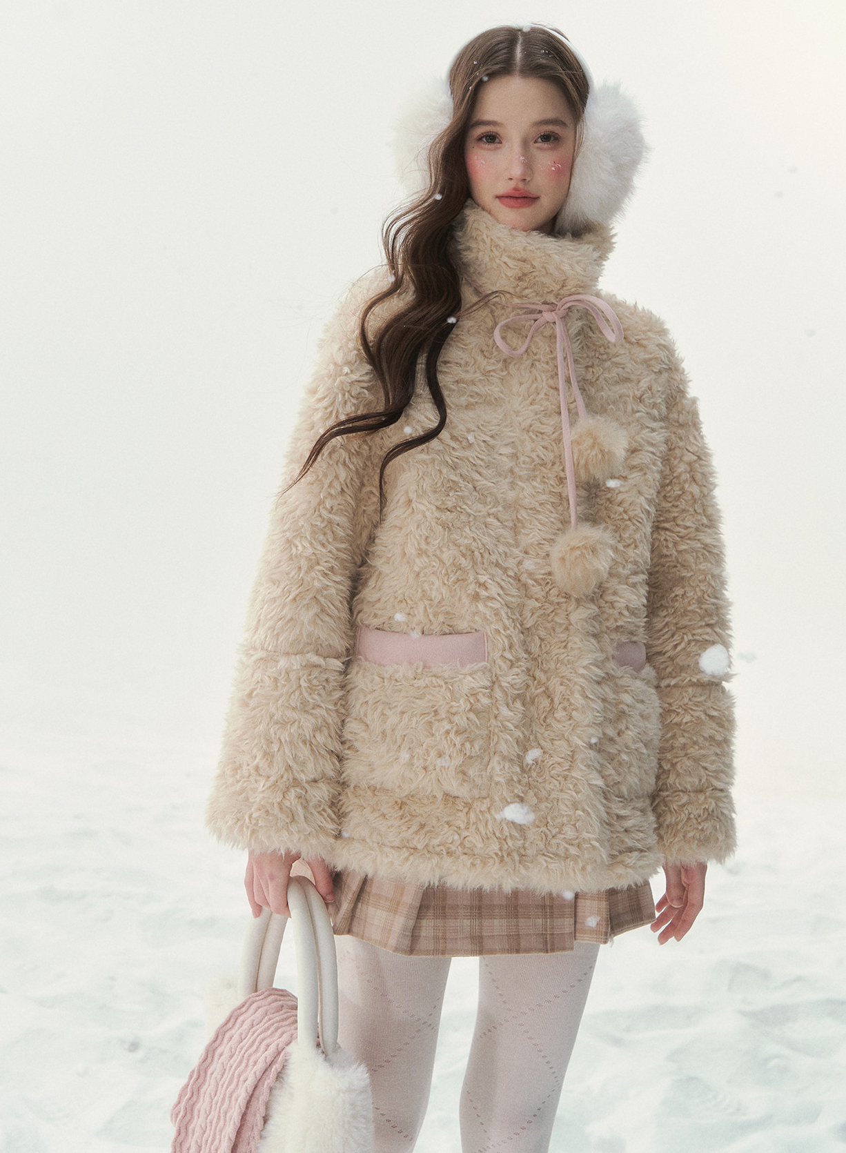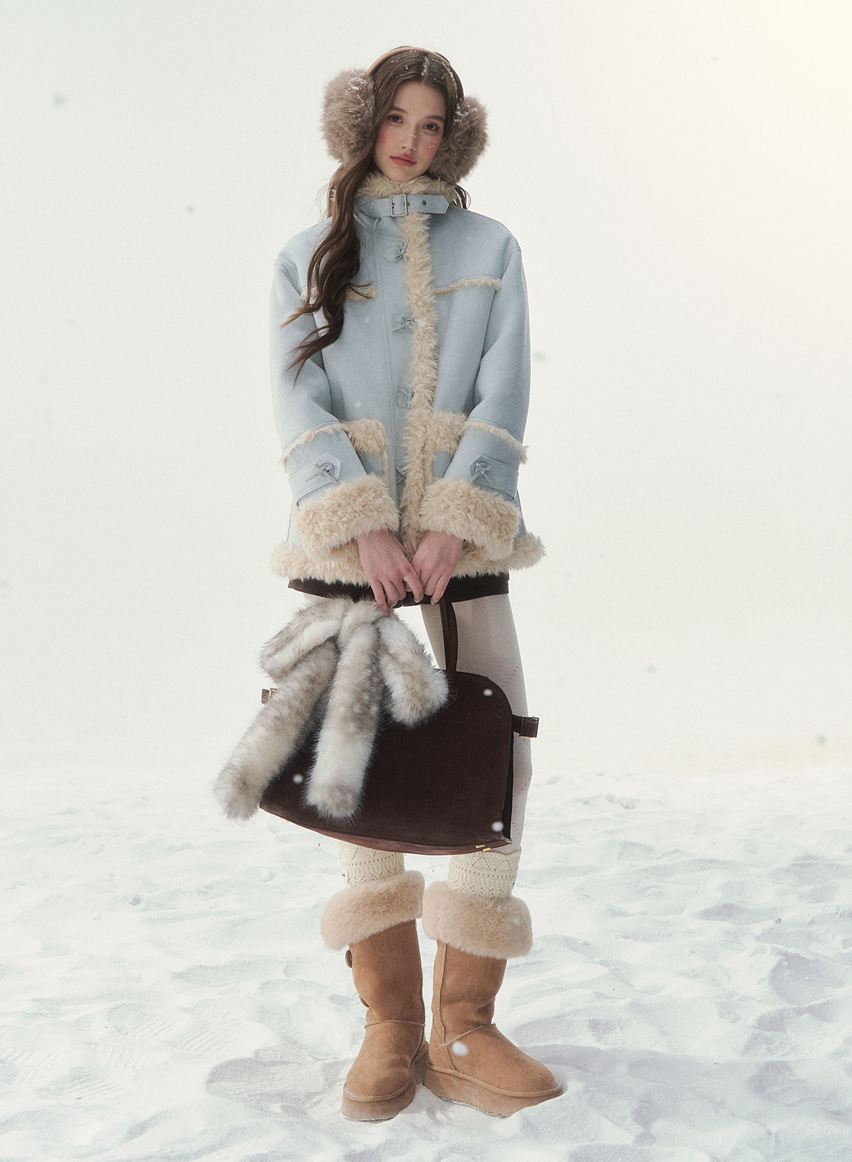 - 블러시 핑크, 소프트 블루 등 파스텔 컬러 구성으로 사랑스러운 겨울 스타일링 연출