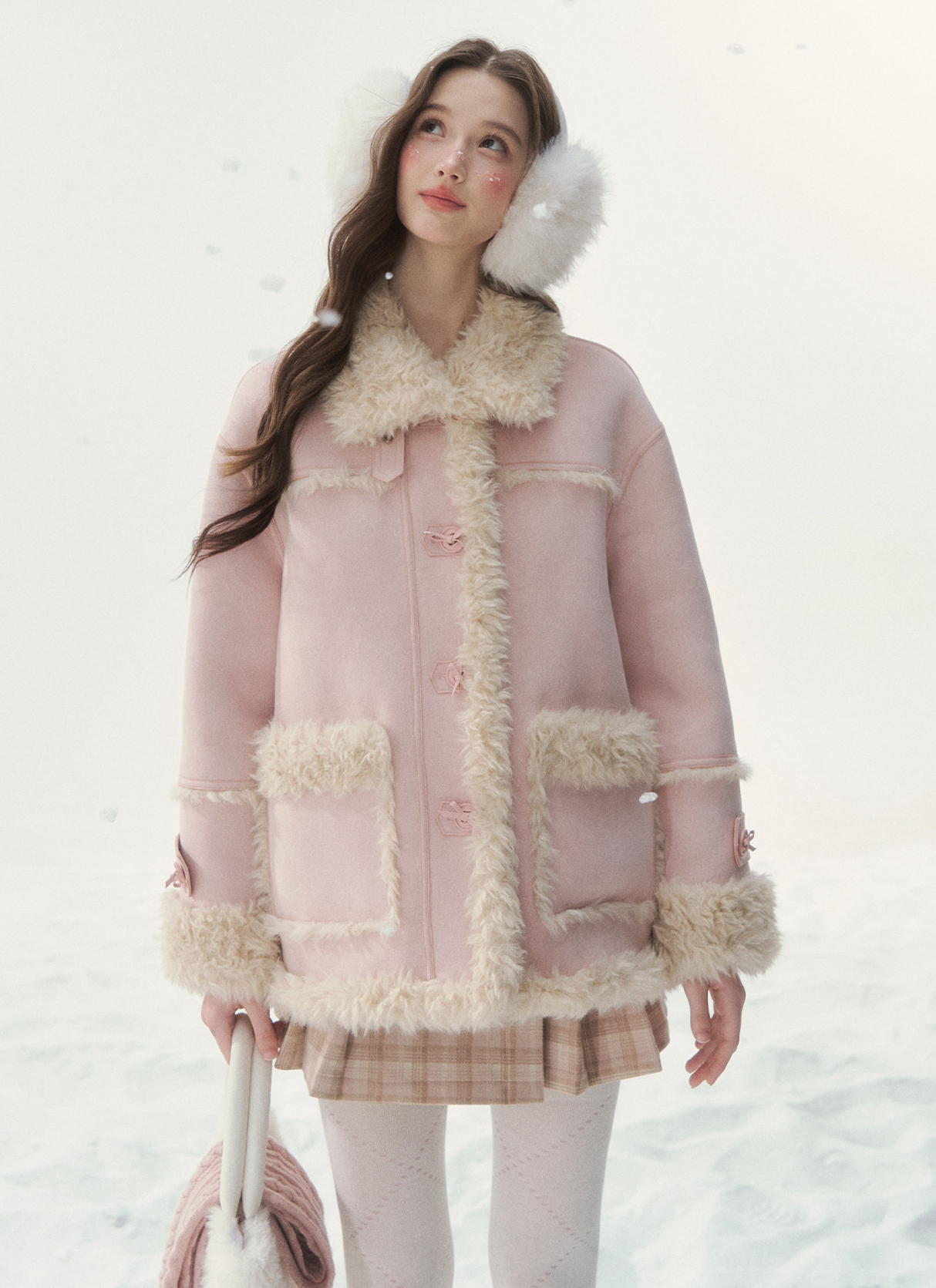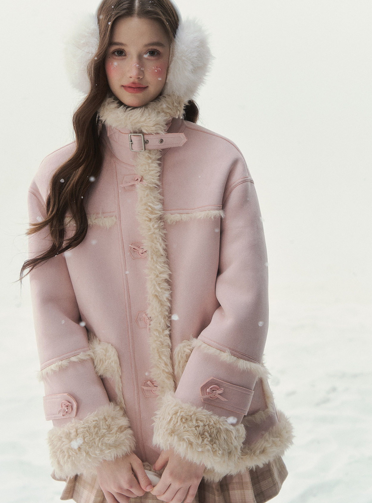 블러시 톤 컬러와 포근한 시어링 텍스처를 리버서블로 즐길 수 있는, 겨울 감성의 포인트 코트입니다.