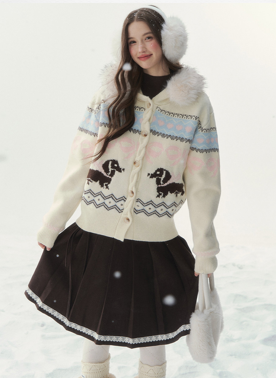 Fluffy Collar Dachs Cardigan
