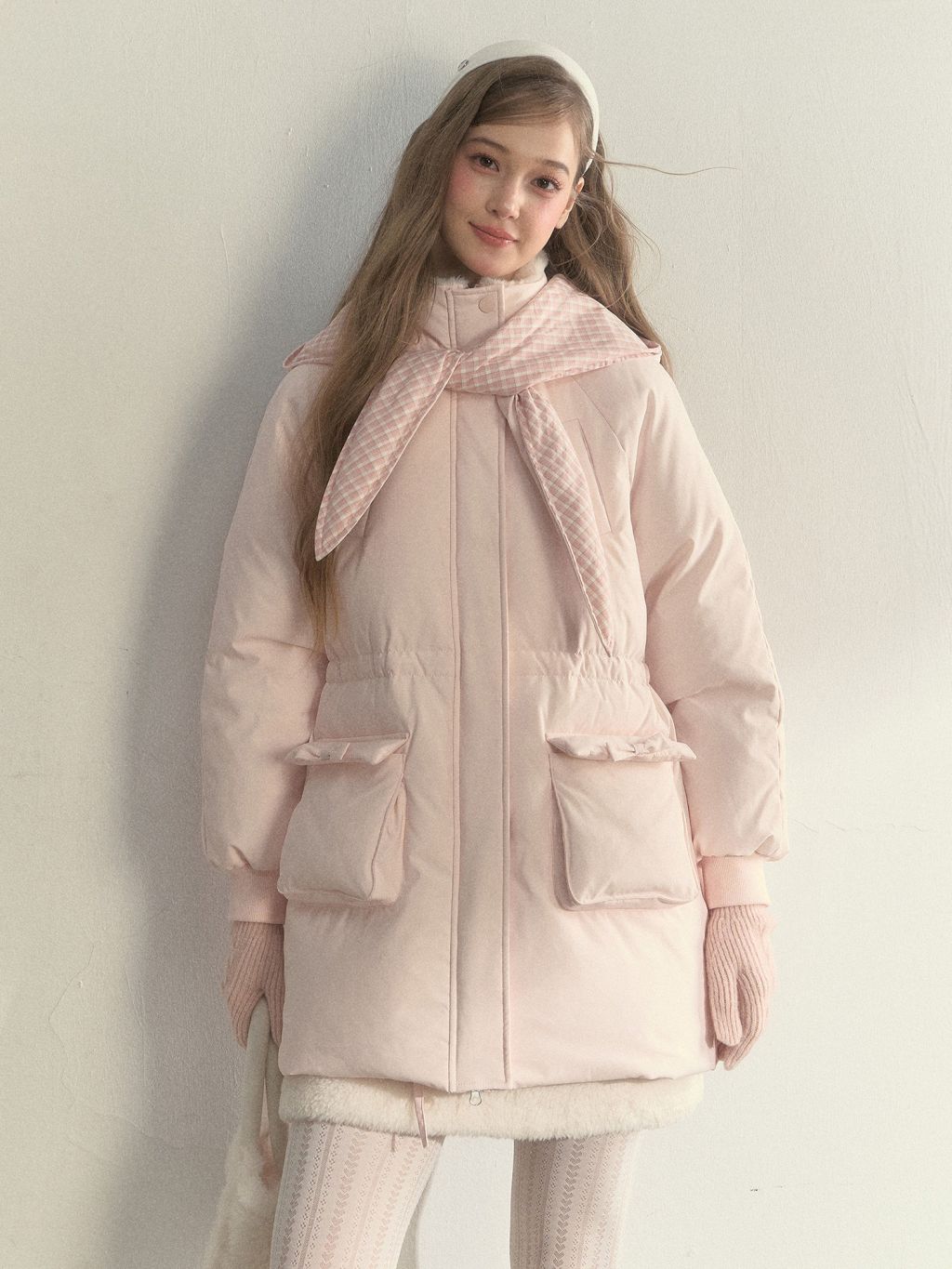 Cloudy Pink Scarf Hood Down Jacket
