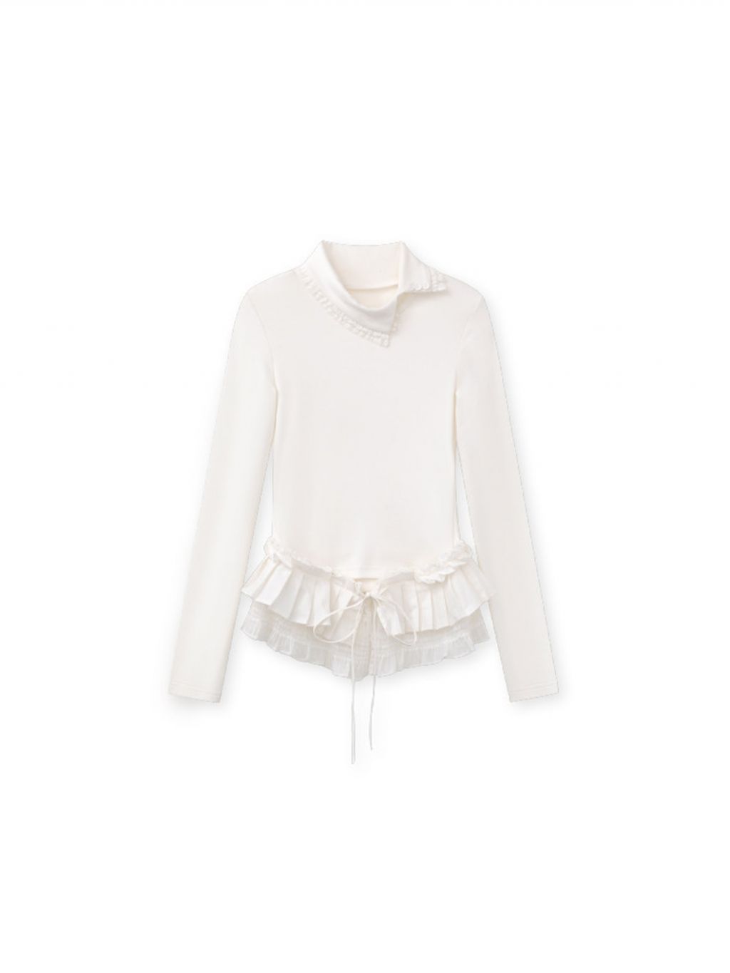 - 비대칭 카라 + 레이스 트리밍으로 얼굴선을 예쁘게 살려주는 디테일