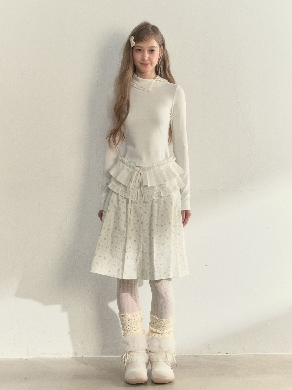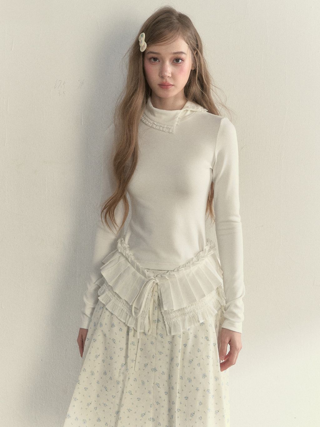 - 밑단의 러플이 겹쳐진 페플럼 실루엣으로 허리 라인 강조