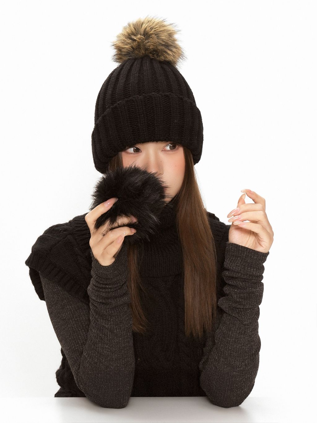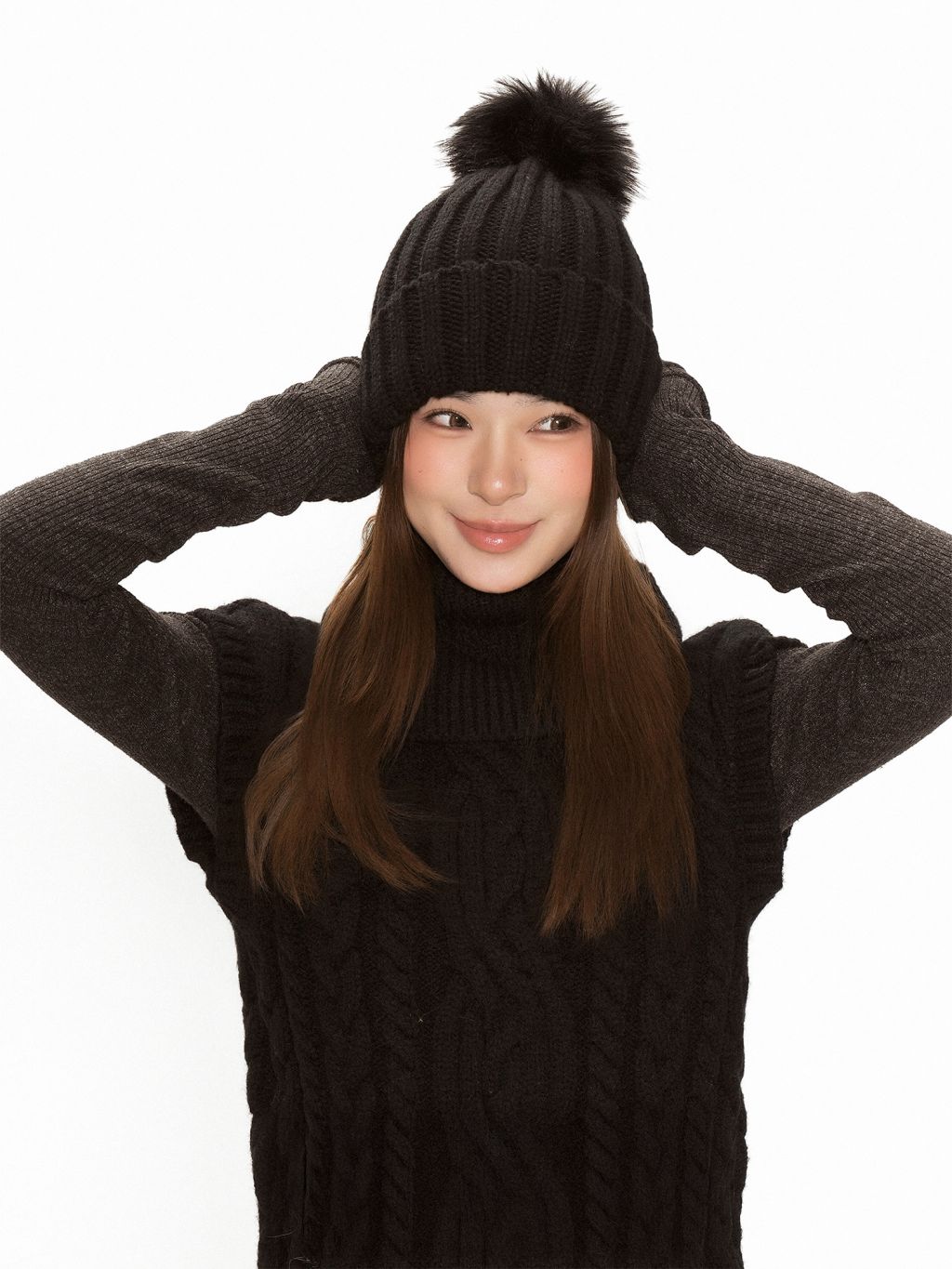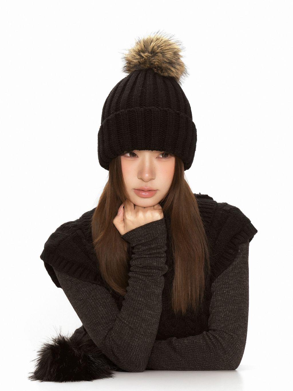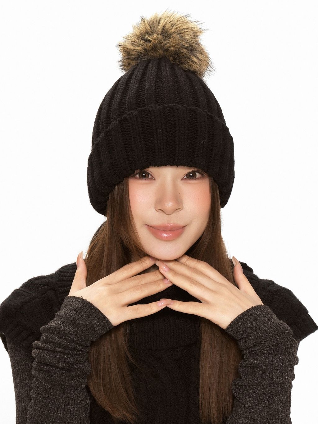 - 폼폼 포인트로 얼굴이 더 작아 보이는 볼륨감 연출