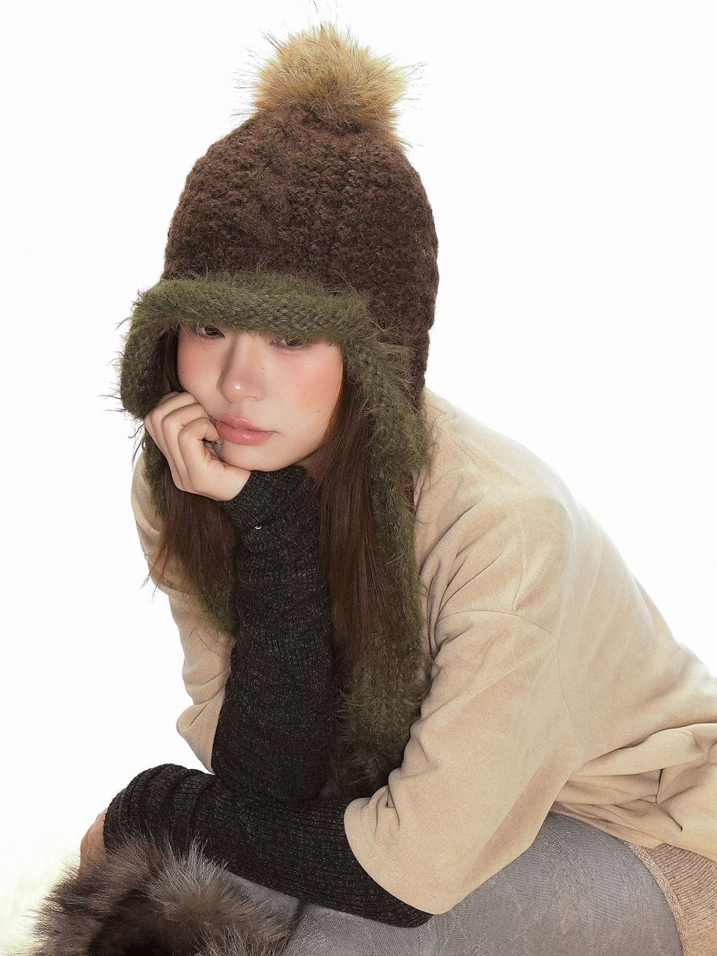 복슬한 텍스처의 니트 바디에 이어플랩 디자인과 폼폼 포인트를 더해, 한겨울에도 귀까지 포근하게 감싸주는 아이템입니다. 착용만으로 빈티지한 무드와 귀여운 실루엣이 완성돼요.