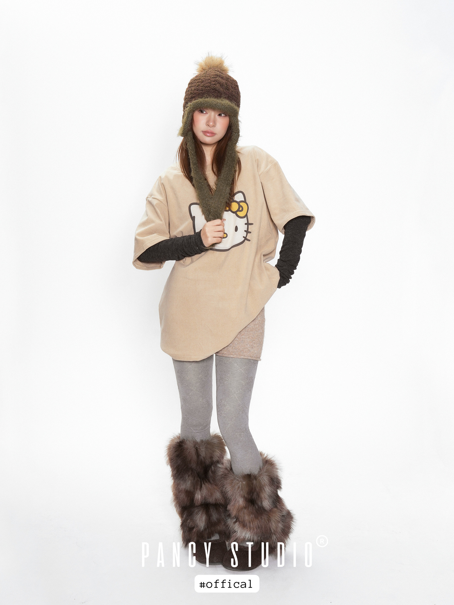 - 상단 폼폼 디테일로 룩에 입체적인 포인트