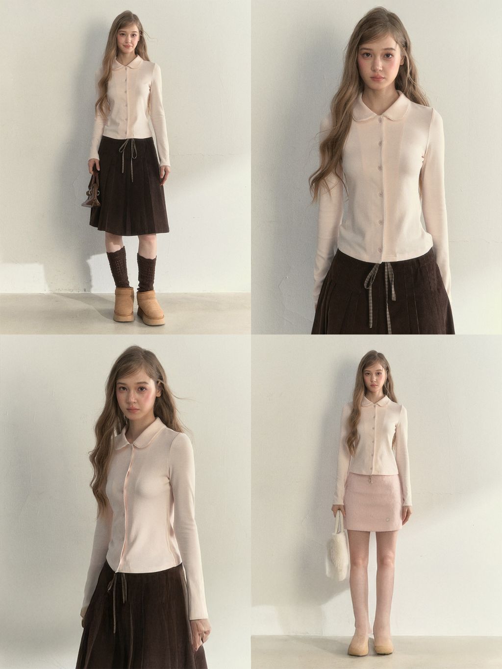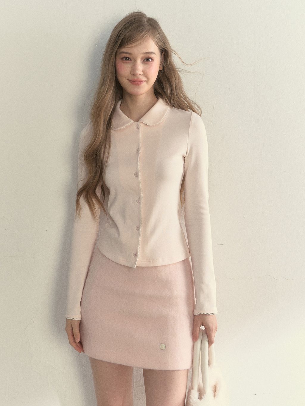 - 돌리 카라 디테일로 얼굴선을 부드럽게 정리해 주는 러블리 포인트