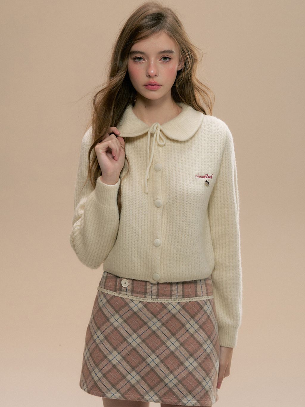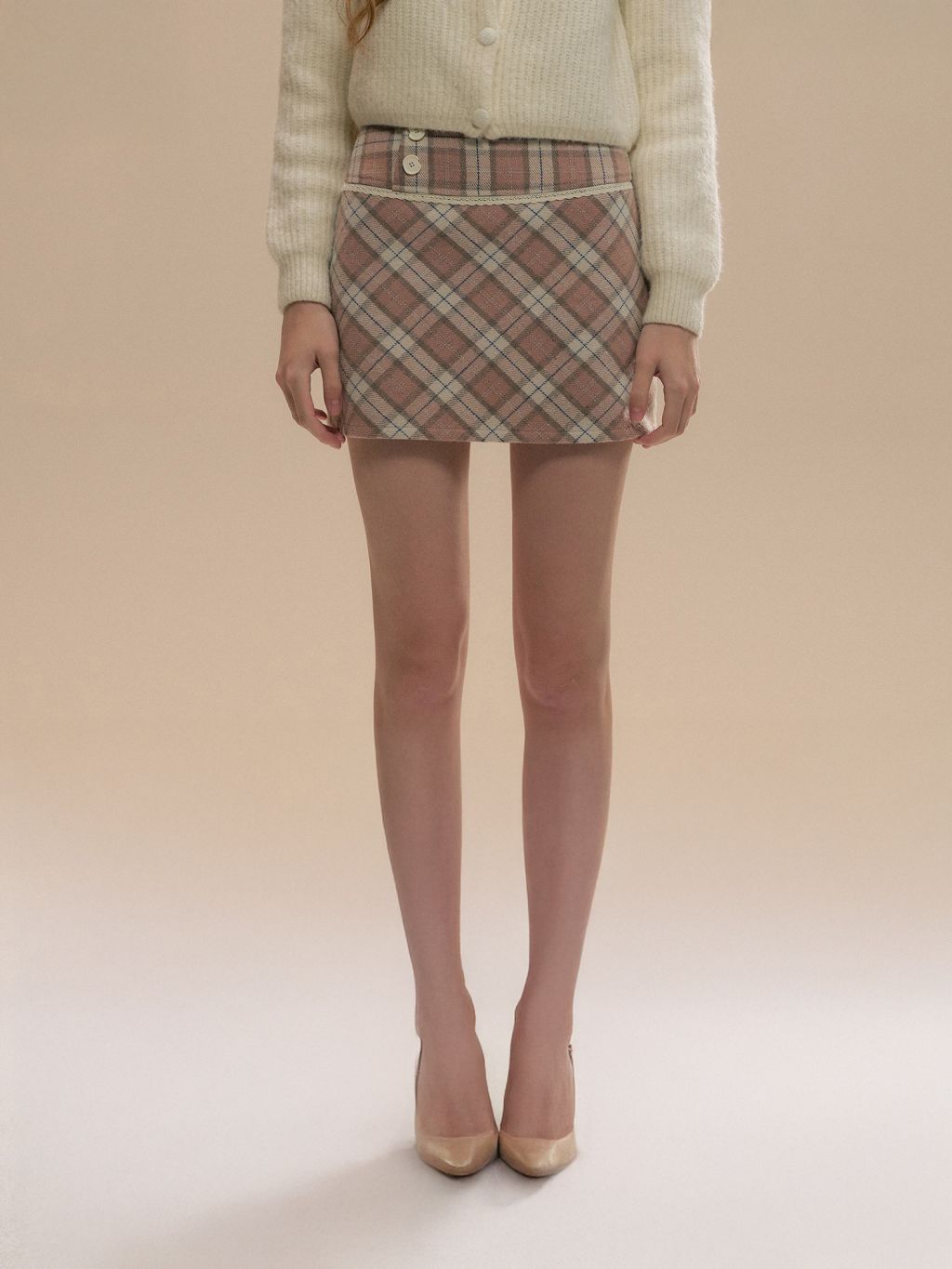브라운 톤이 은은하게 섞인 체크 패턴으로, 코디에 따뜻한 빈티지 무드를 더해주는 A라인 미니 스커트예요. 과하지 않은 실루엣이라 니트·가디건 어디에나 자연스럽게 어울립니다.