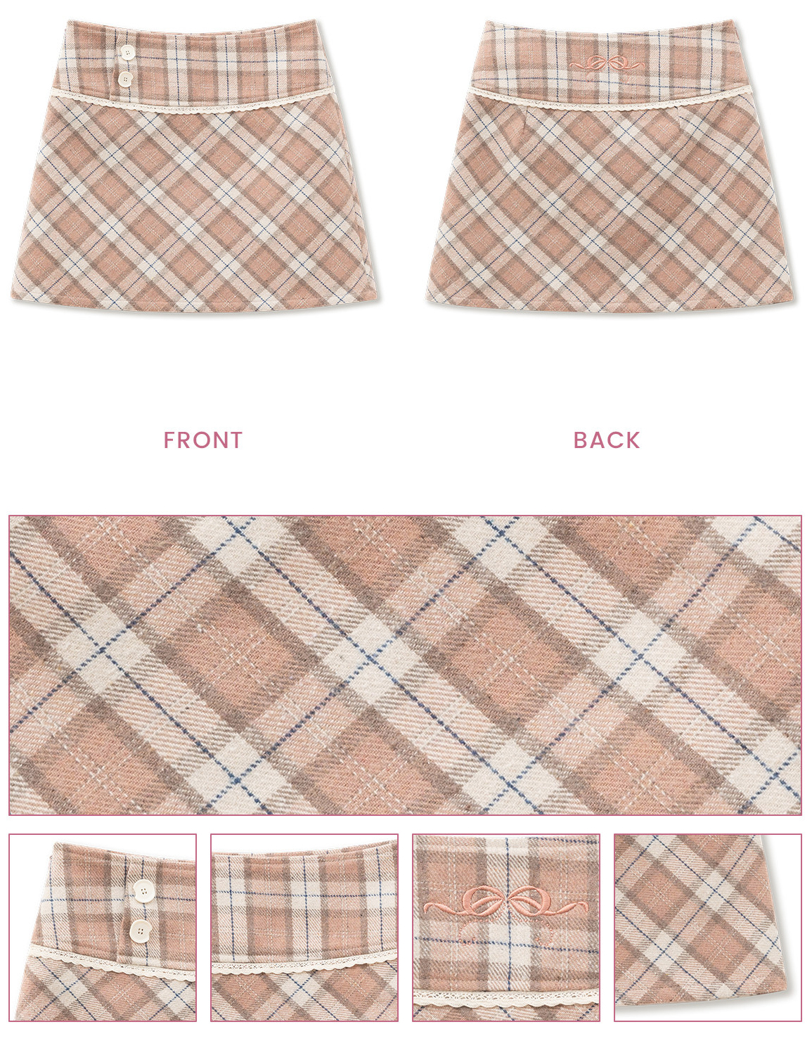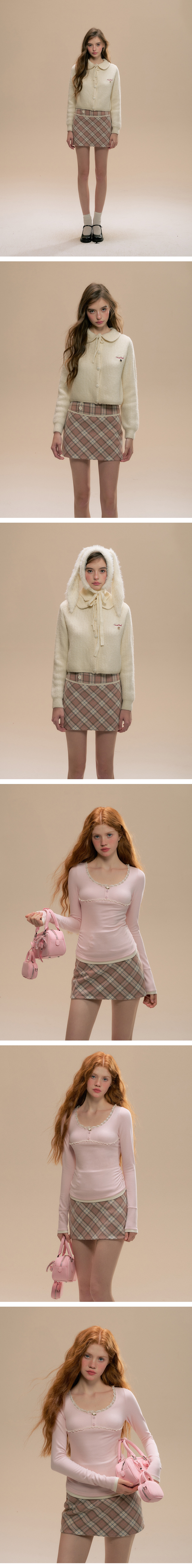 - 브라운 베이스 핑크 체크 패턴으로 포근하고 클래식한 컬러 무드 연출