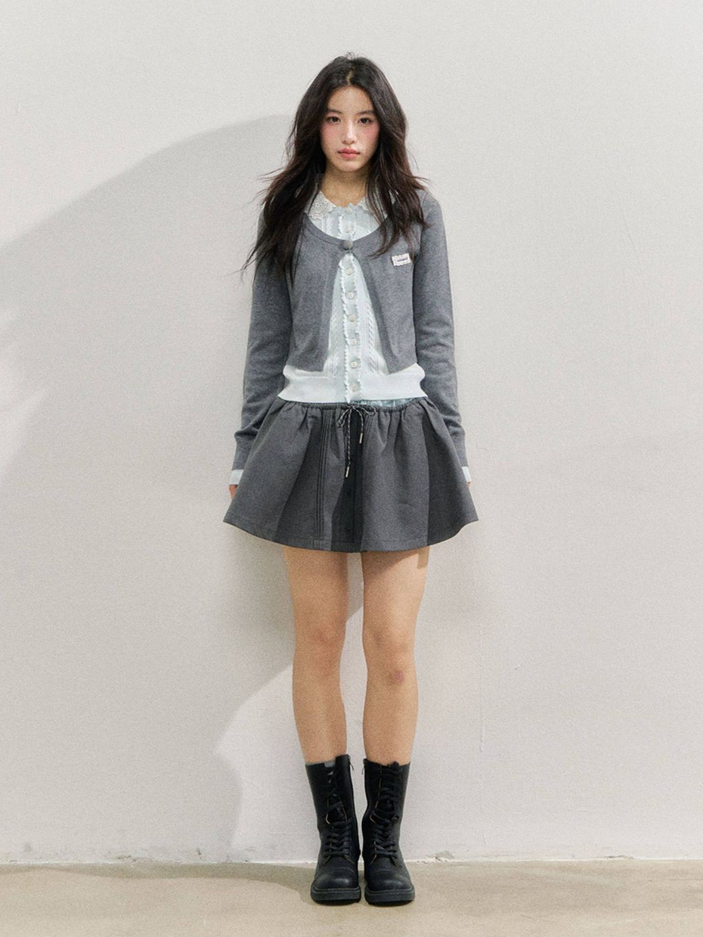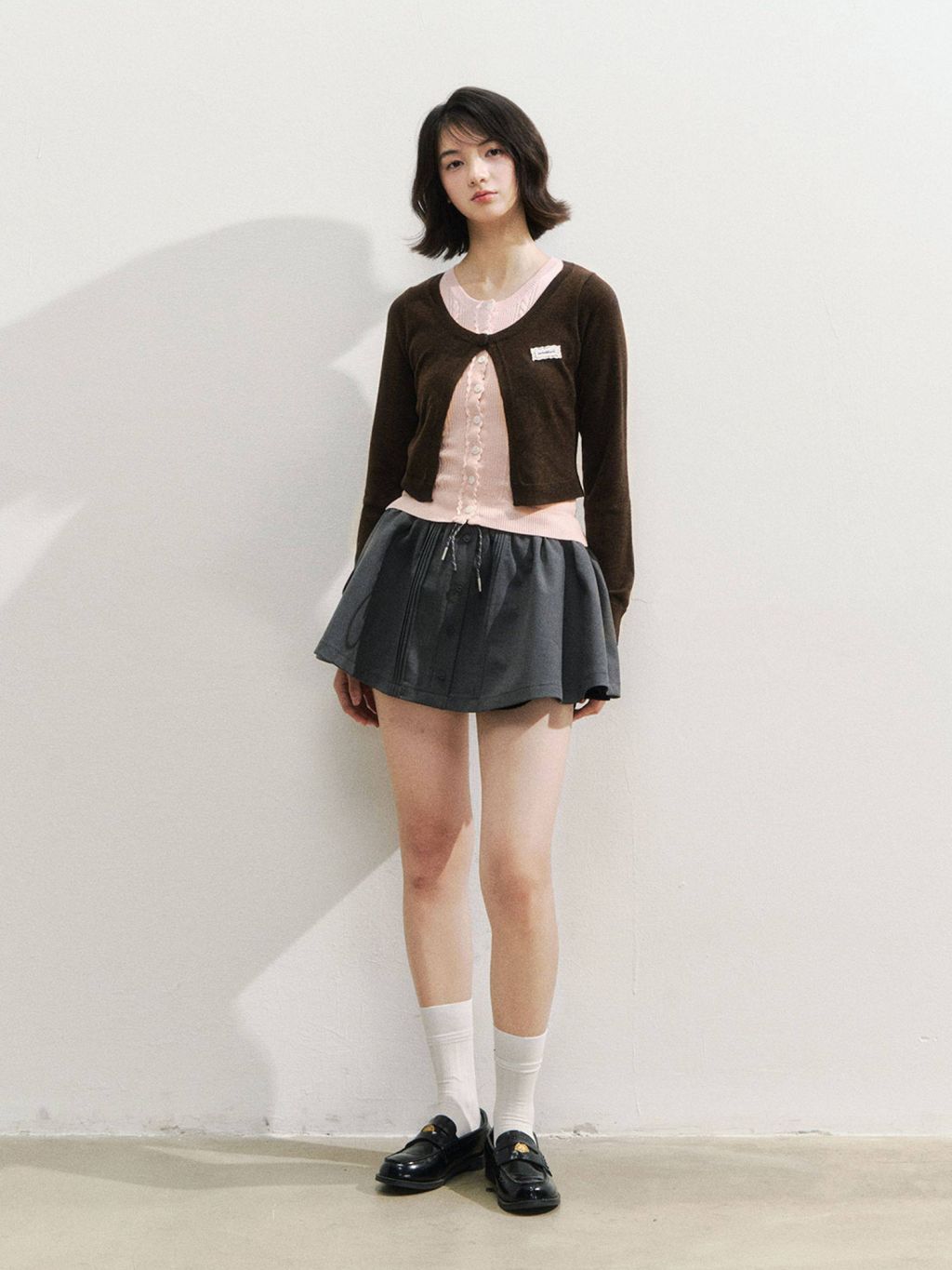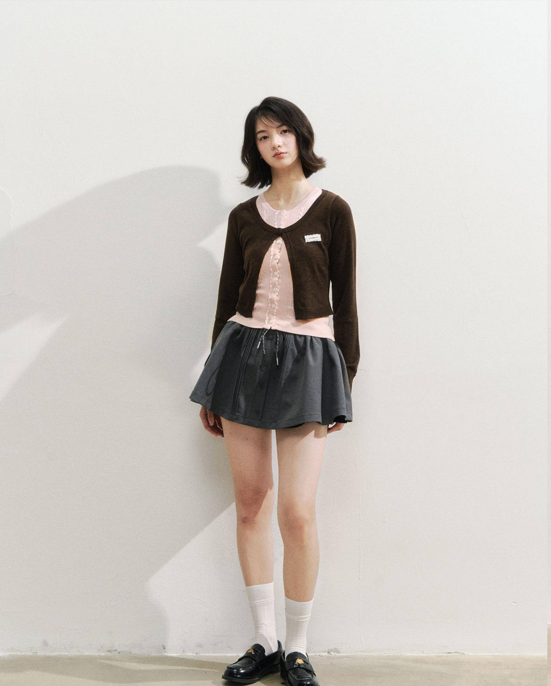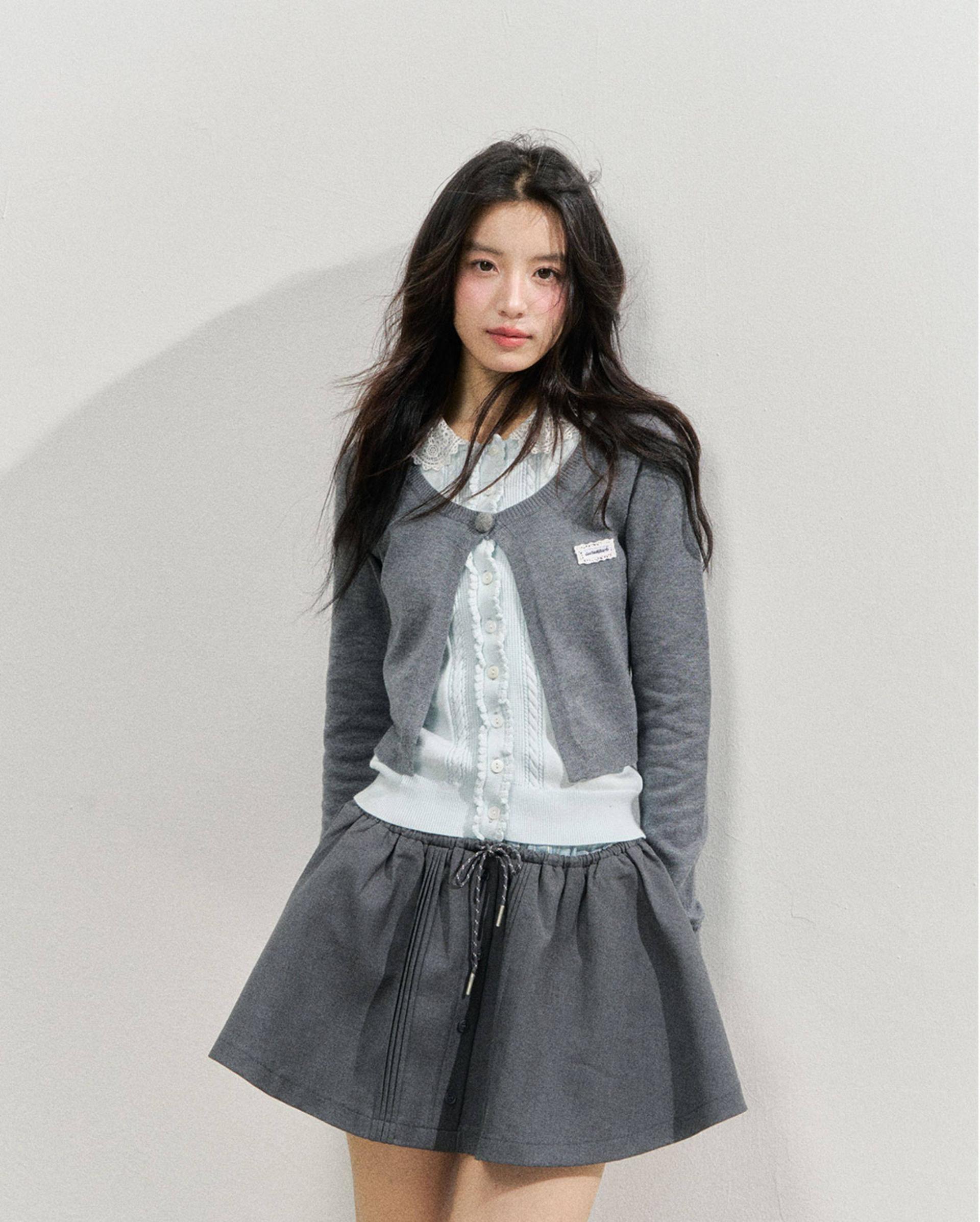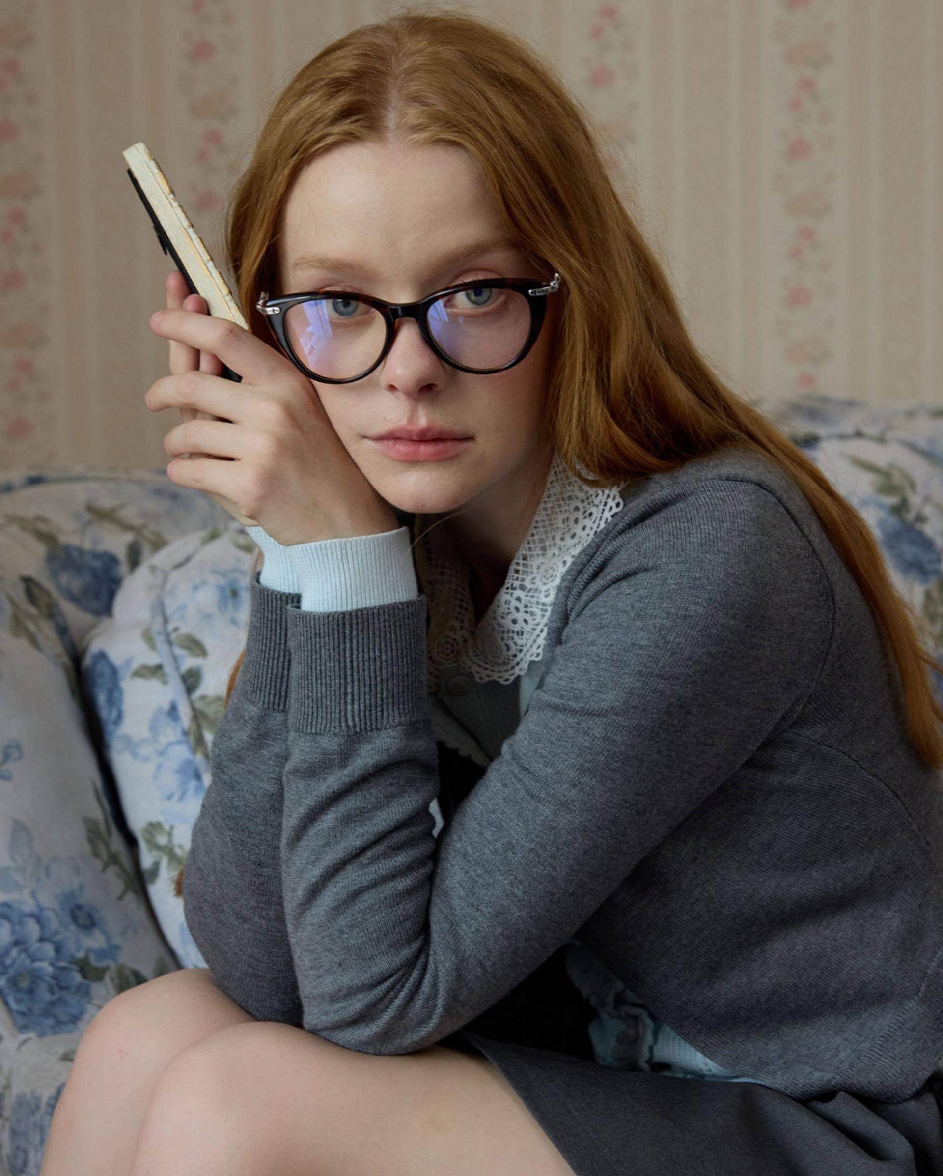 레이스 카라 블라우스를 레이어드한 듯한 ‘페이크 투피스’ 디자인으로, 단정한 프레피 무드를 한 번에 완성하는 가디건입니다. 슬림한 바디핏과 짧은 기장감이 스커트/하이웨이스트와 특히 예쁘게 떨어집니다.