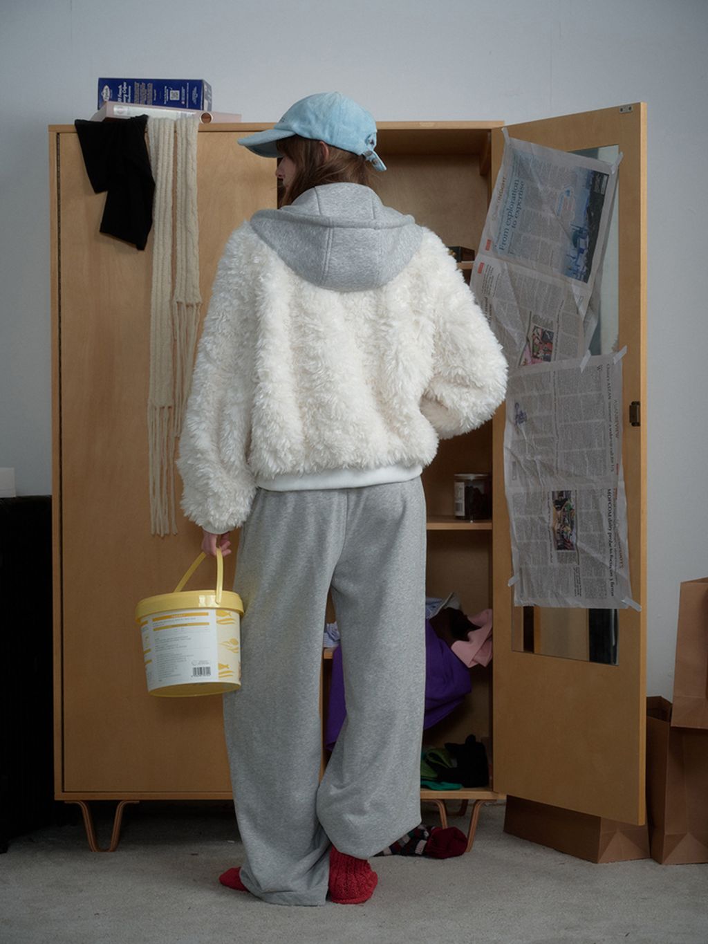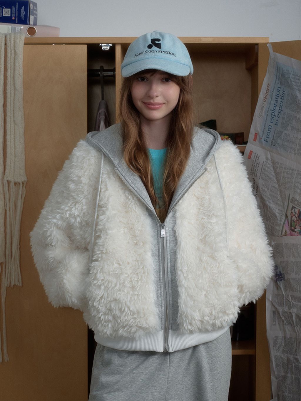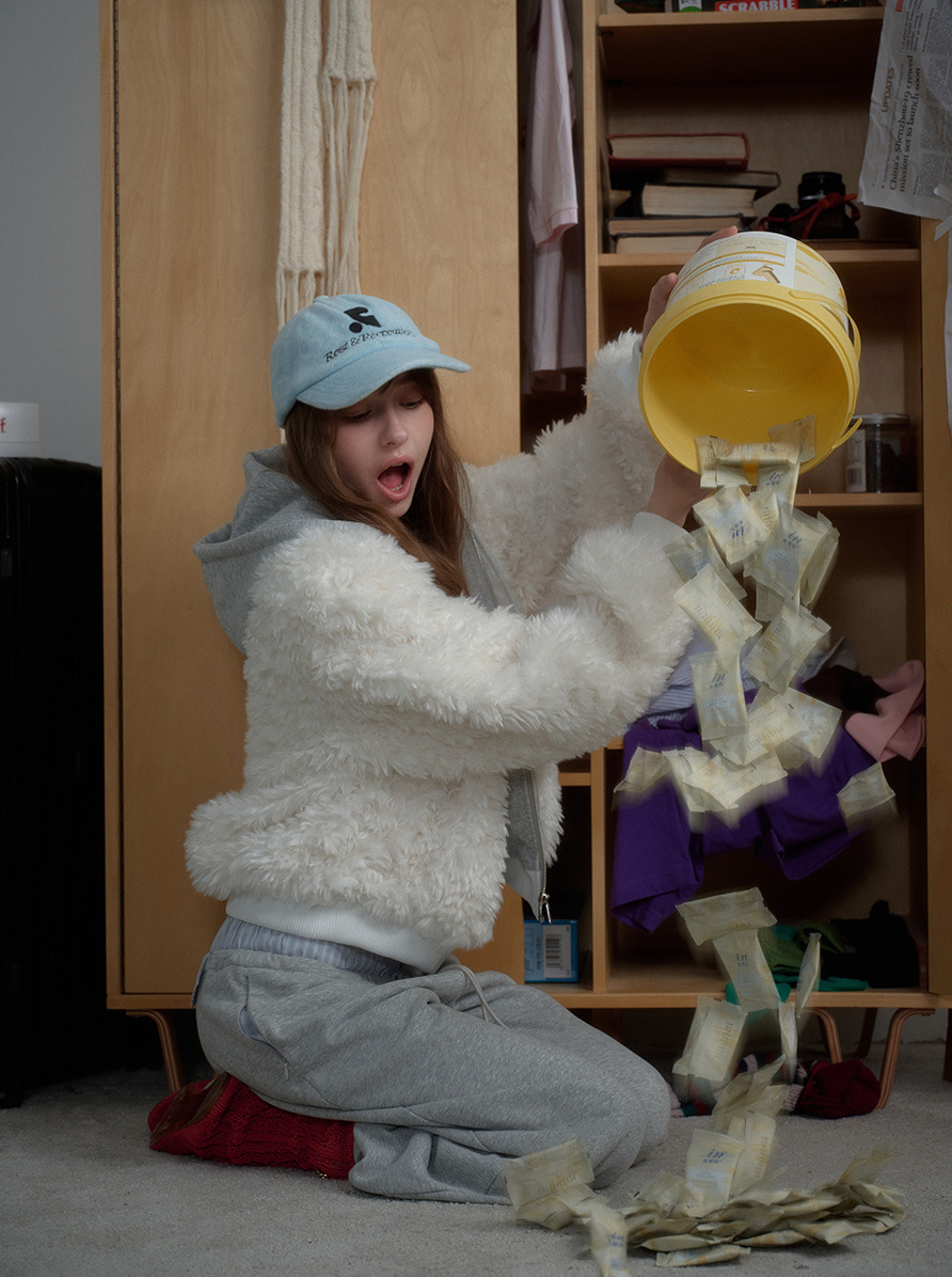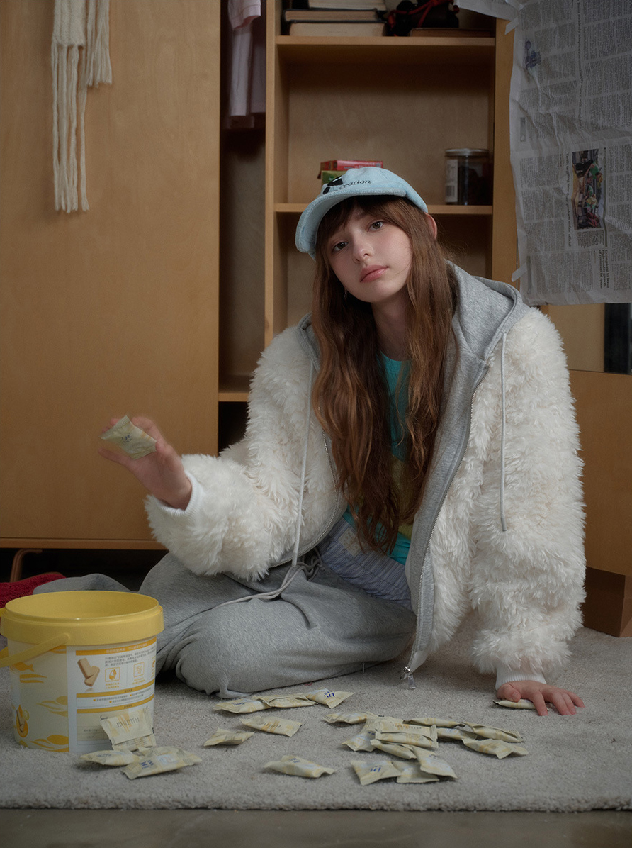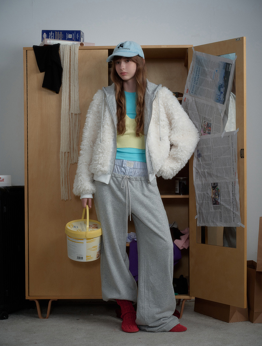 몽글몽글한 퍼 텍스처에 후드 집업 레이어드를 더해, 한 벌만 걸쳐도 포근+치키 무드가 완성되는 아우터예요. 스웻팬츠부터 미니 스커트까지 어디든 귀엽게 받아주는 데일리 퍼 후디 집업입니다.
