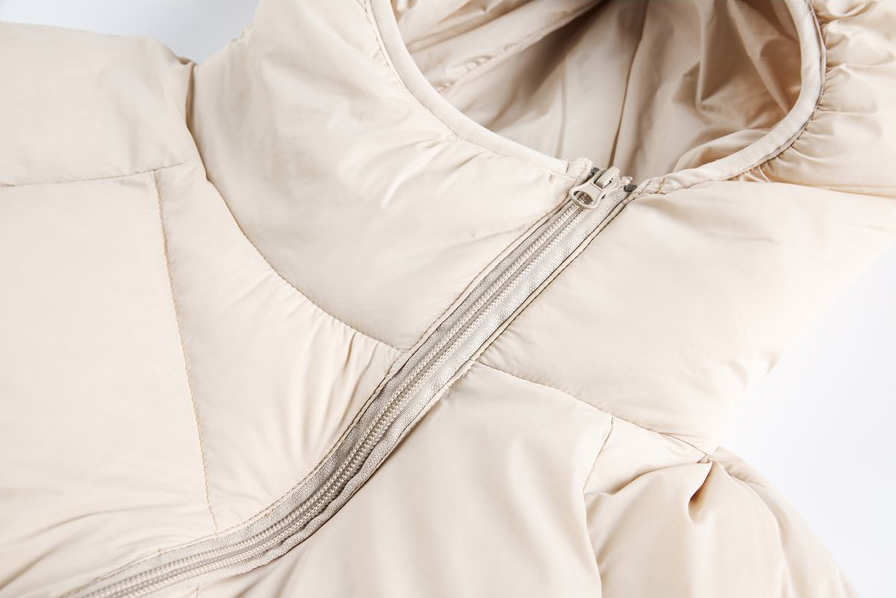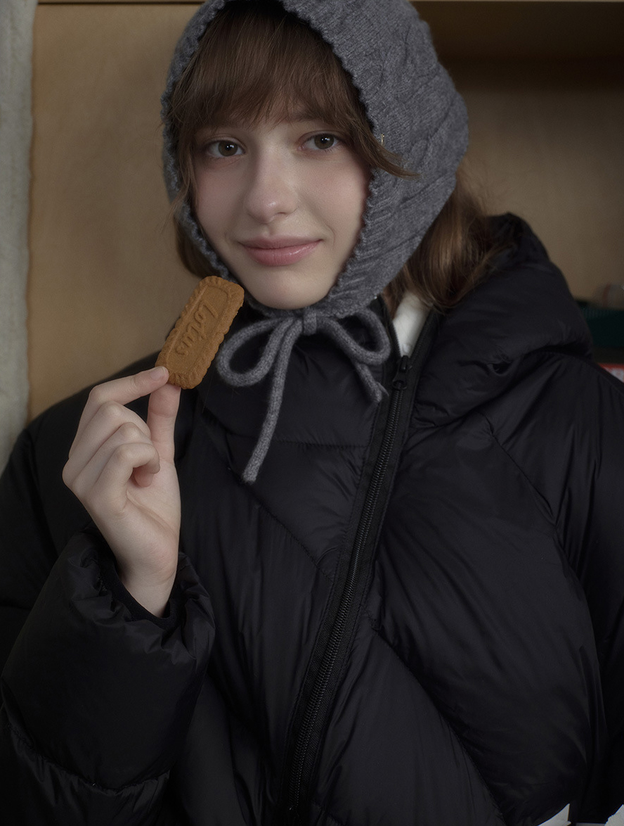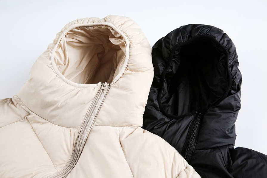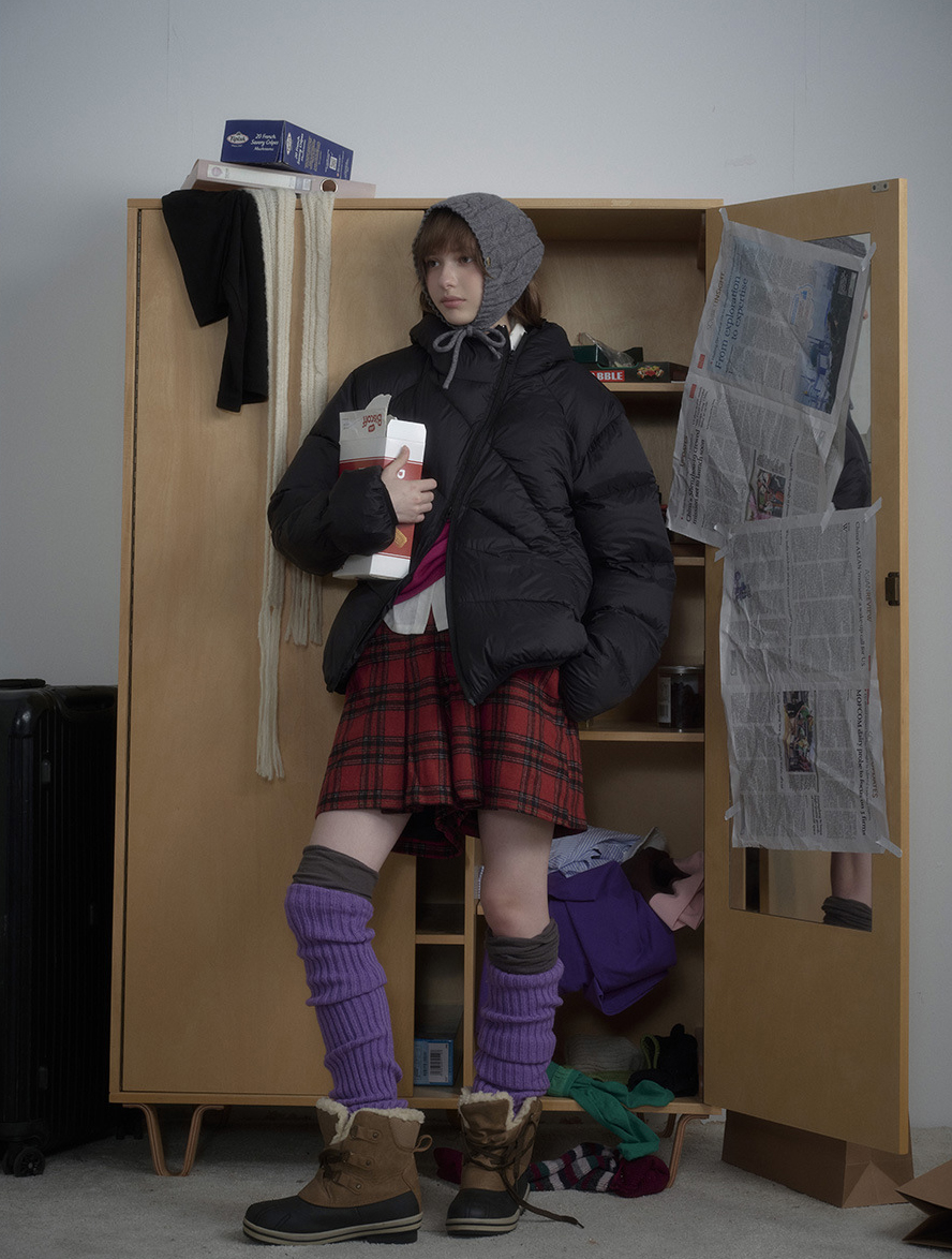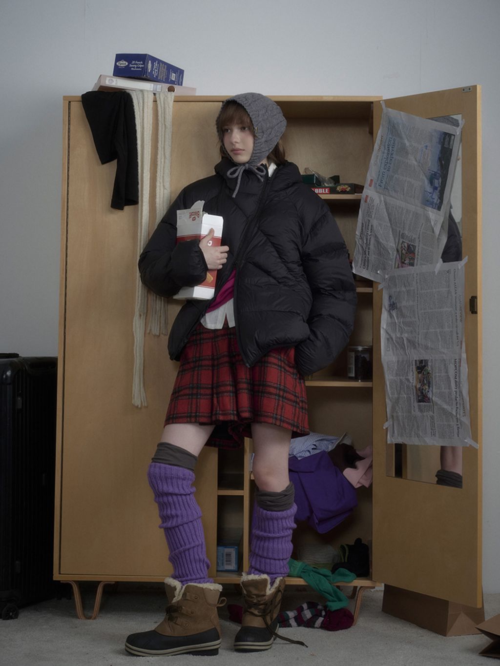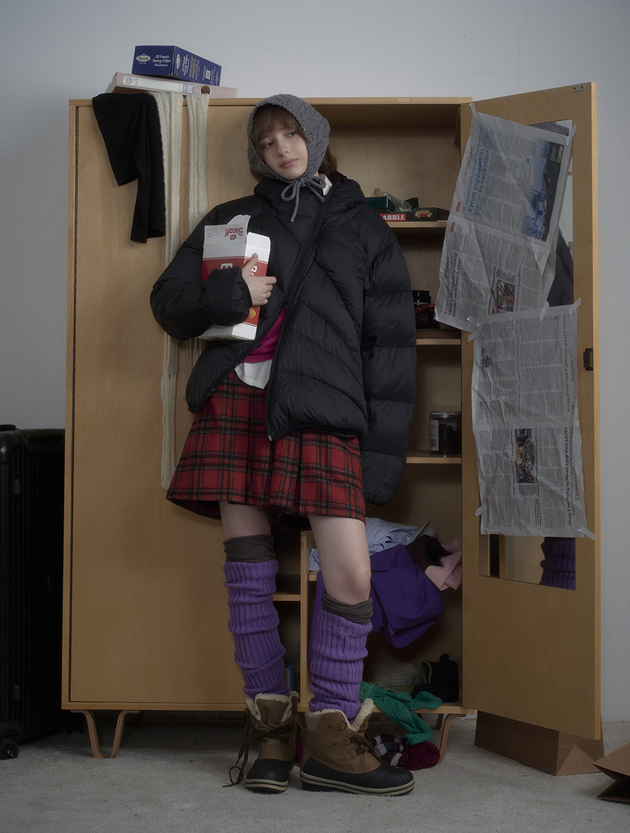 사선 지퍼 라인으로 한눈에 실루엣이 살아나는, 볼륨감 좋은 후드 다운 자켓 입니다. 툭 걸쳐도 키치한 스쿨 무드가 완성됩니다.