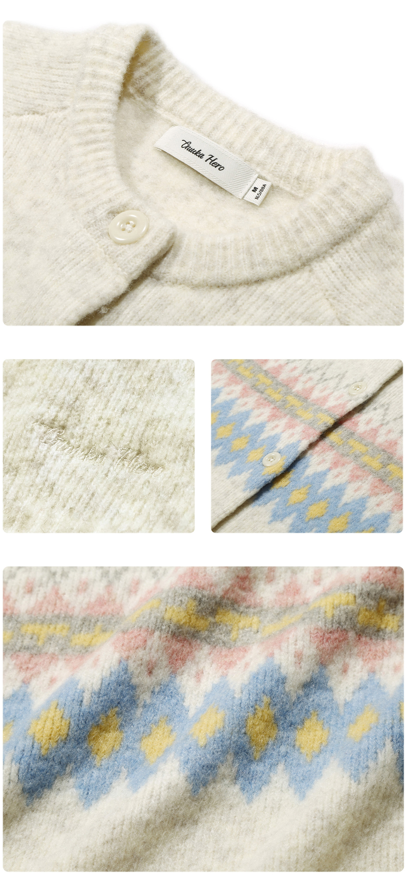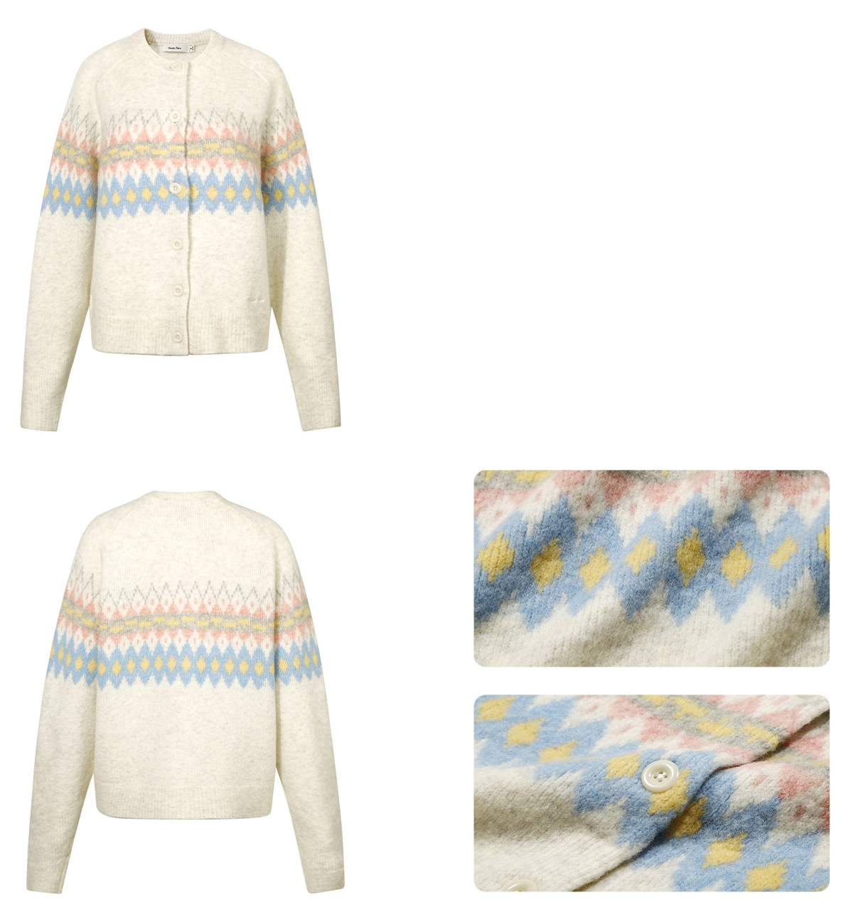 - 파스텔 페어아일 자카드 패턴으로 빈티지하면서도 사랑스러운 포인트