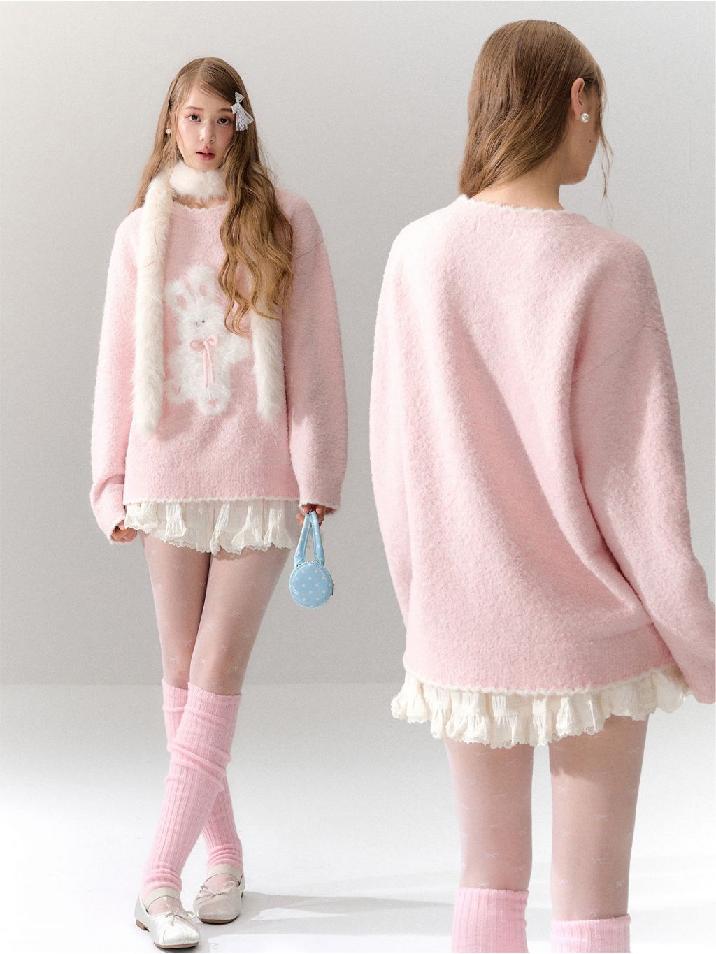 Fluffy Pink Bunny Fuzzy Knit Sweater