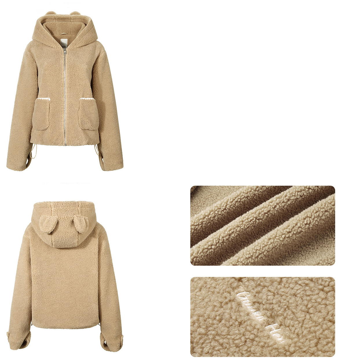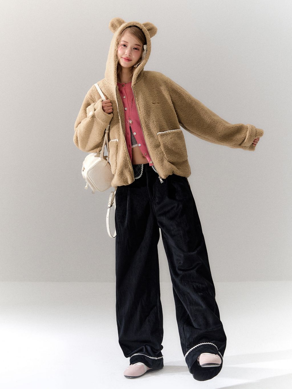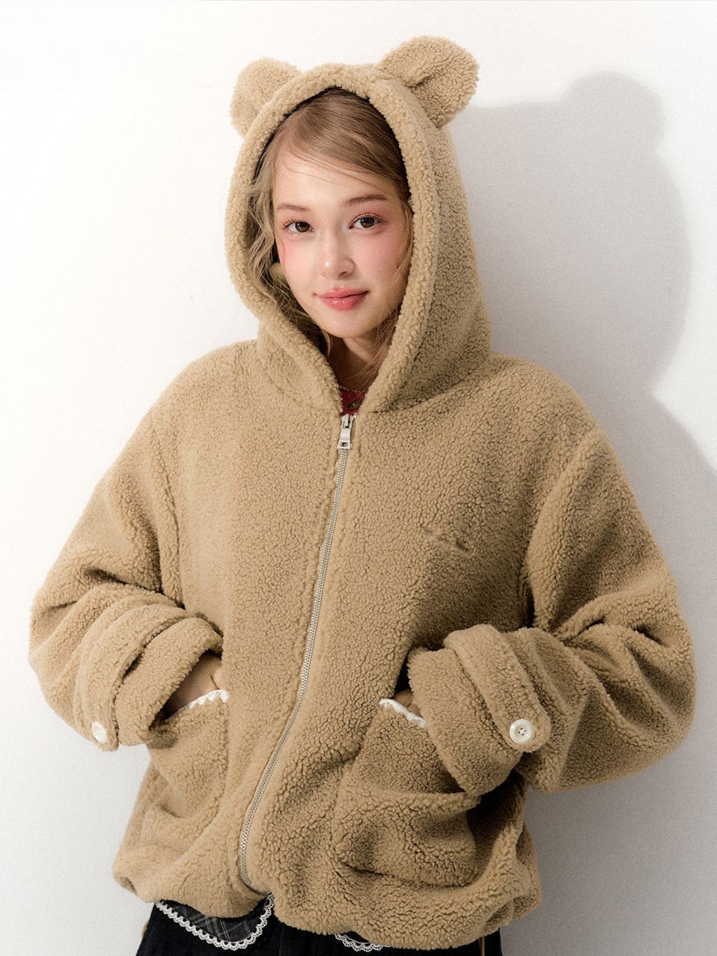 몽글몽글한 양털 텍스처에 베어 이어 후드를 더해, 걸치기만 해도 귀여움이 완성되는 집업 플리스 가디건 입니다. 루즈한 실루엣이라 이너 위에 툭—데일리 방한 아우터로 활용도까지 높습니다.