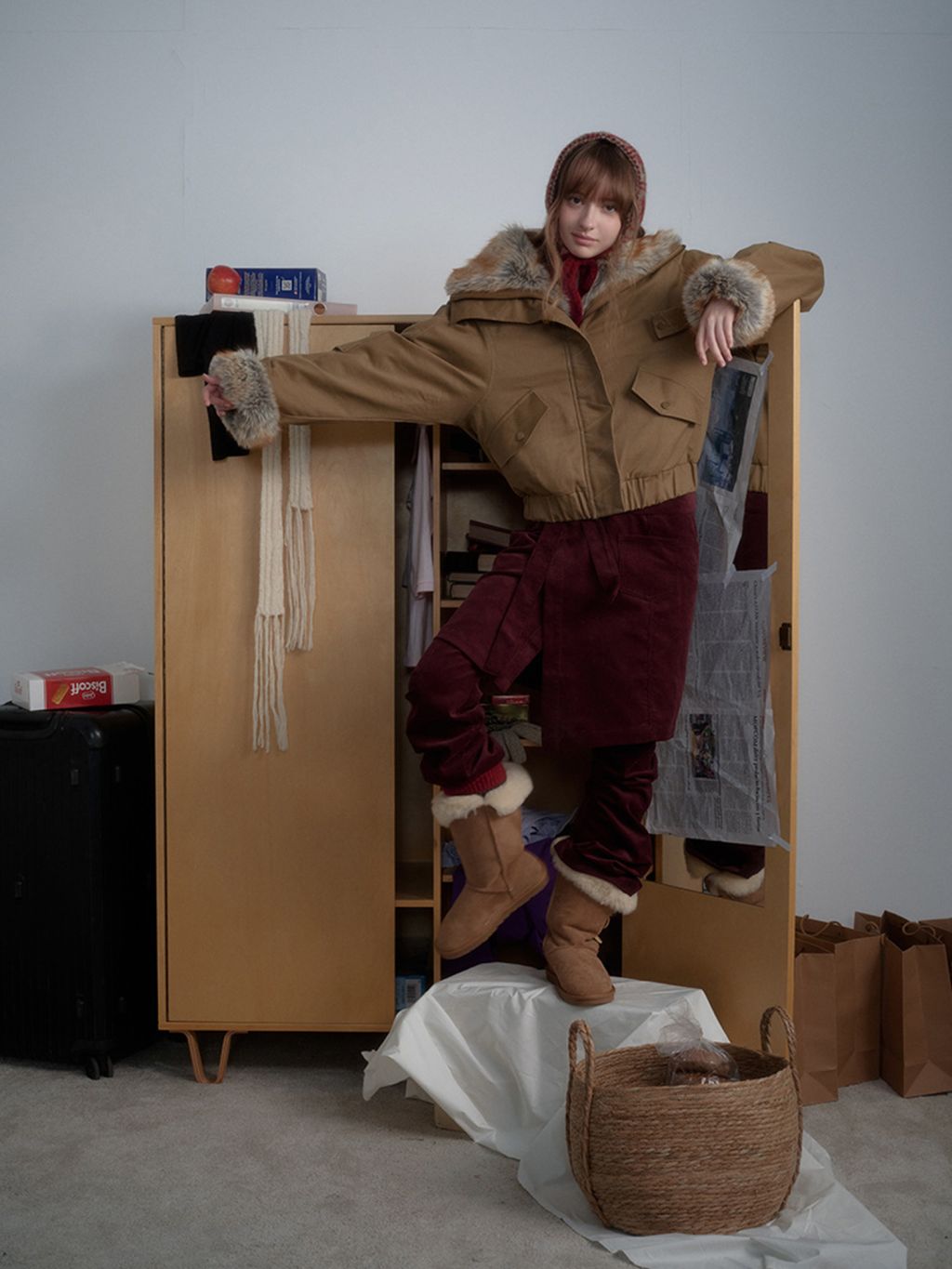 - 풍성한 퍼 칼라 & 소매 커프스 트리밍으로 한겨울 포인트/보온감 강화