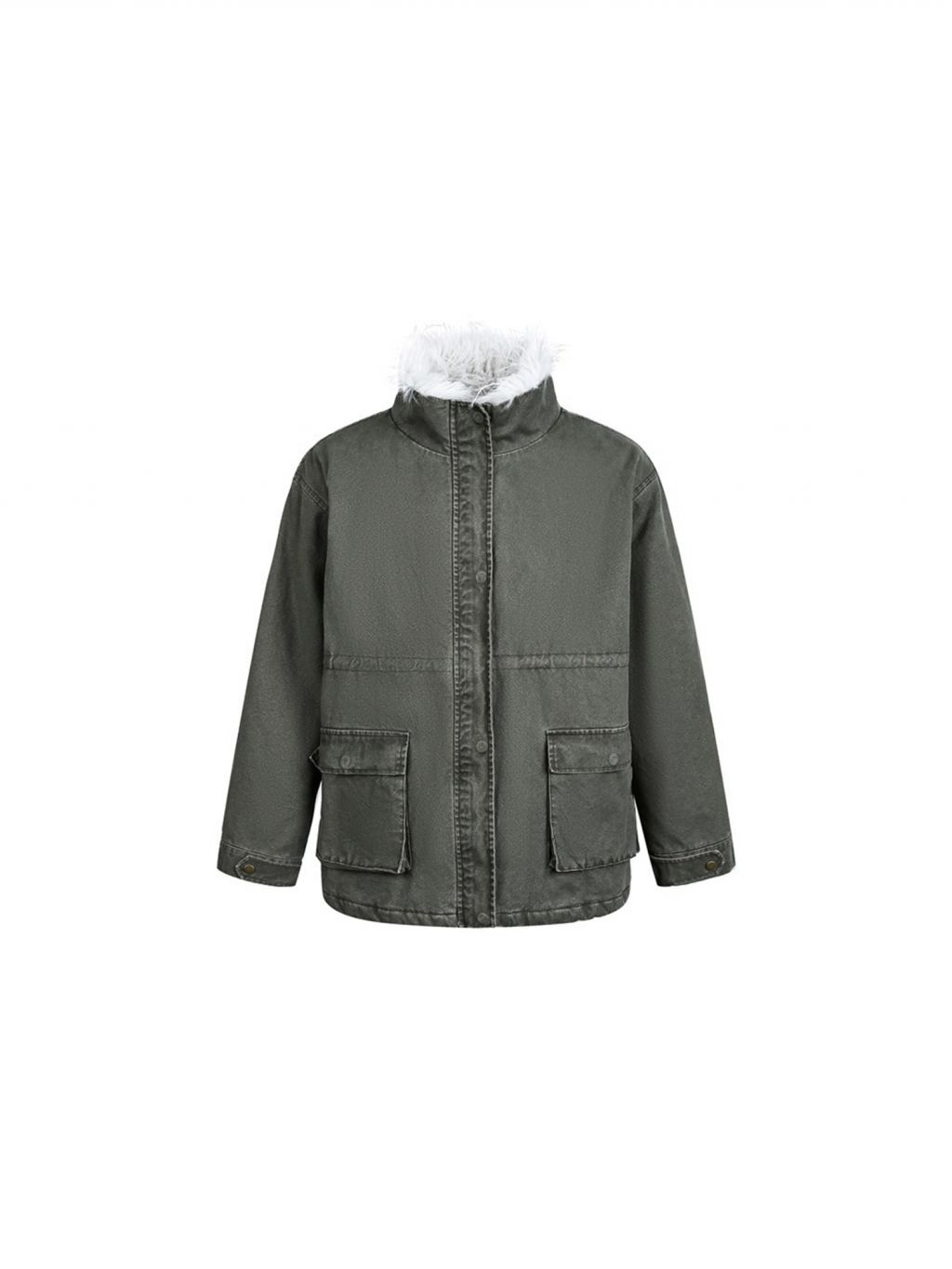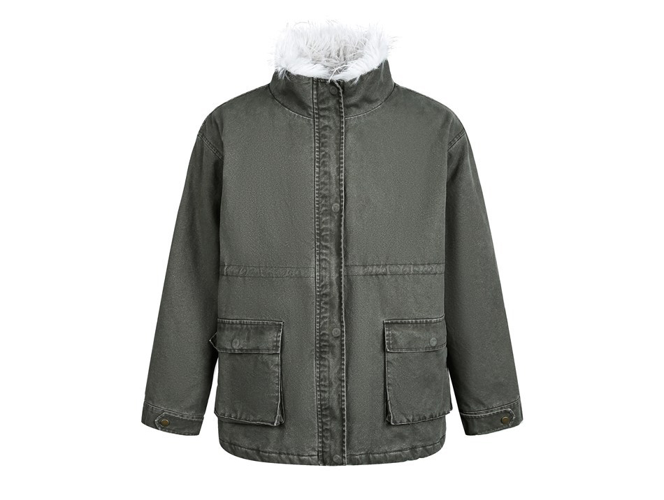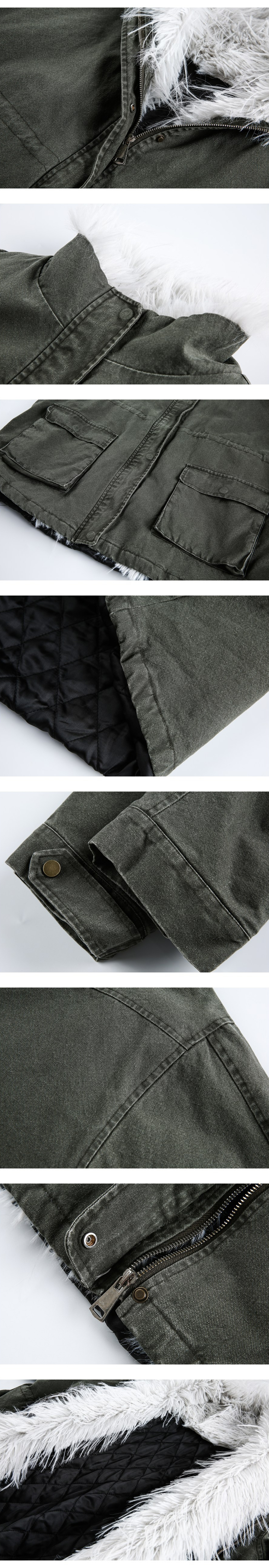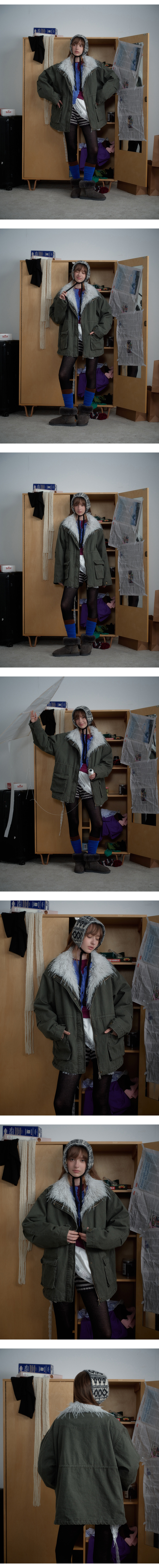 워시드 카키 캔버스에 화이트 퍼 스탠드카라를 더해, 한 벌만으로 빈티지+러블리 무드가 확 살아나는 윈터 아우터입니다. 넉넉한 핏과 빅 포켓 디테일로 레이어드가 쉬워 데일리 룩에 바로 얹기 좋습니다.