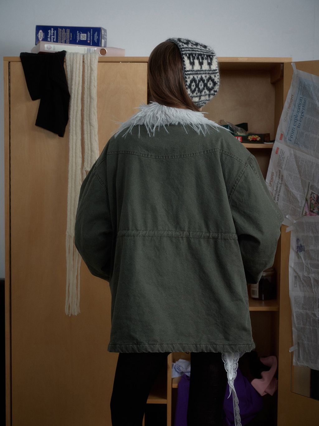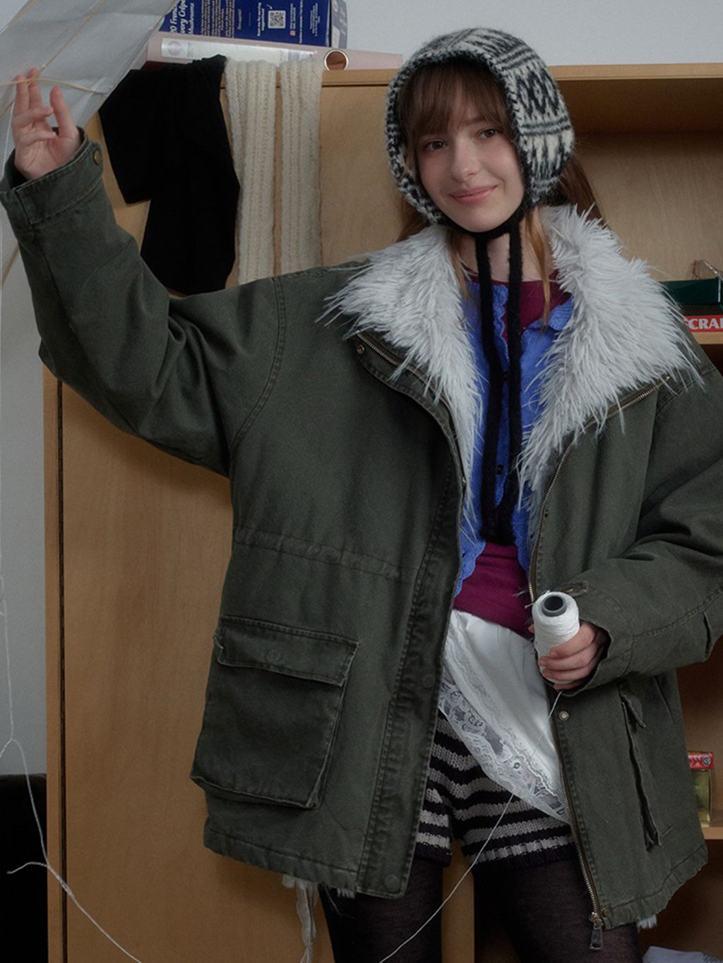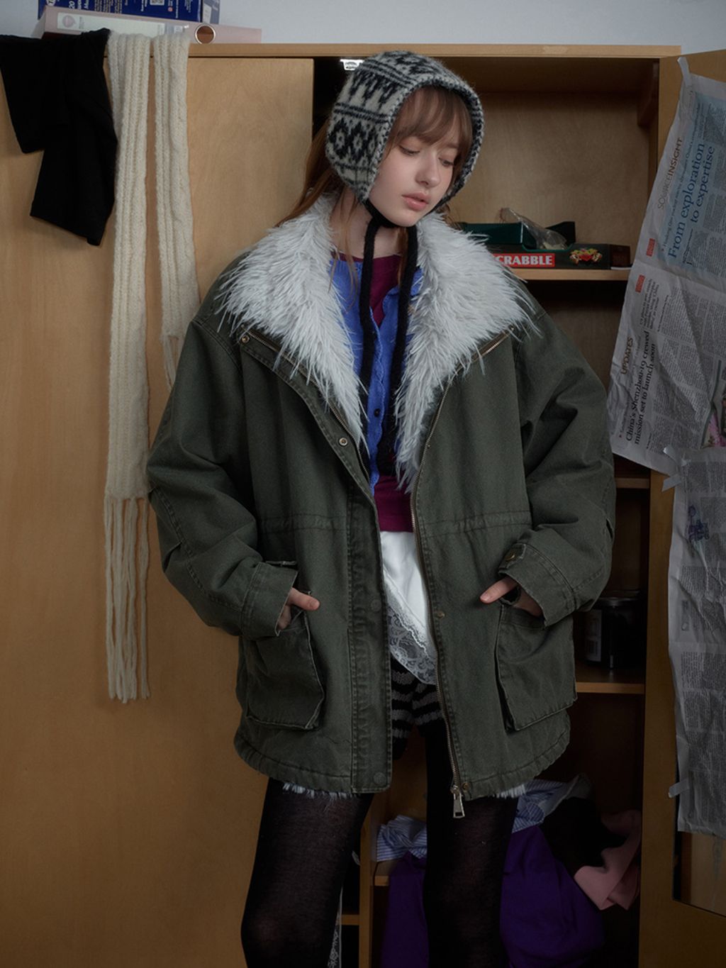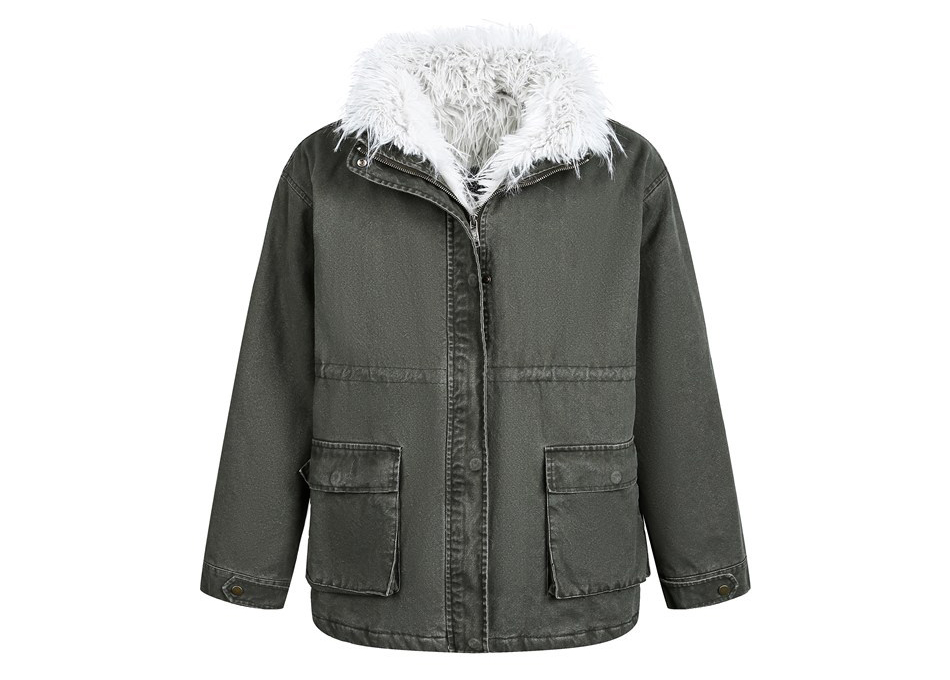 워시드 카키 캔버스에 화이트 퍼 스탠드카라를 더해, 한 벌만으로 빈티지+러블리 무드가 확 살아나는 윈터 아우터입니다. 넉넉한 핏과 빅 포켓 디테일로 레이어드가 쉬워 데일리 룩에 바로 얹기 좋습니다.