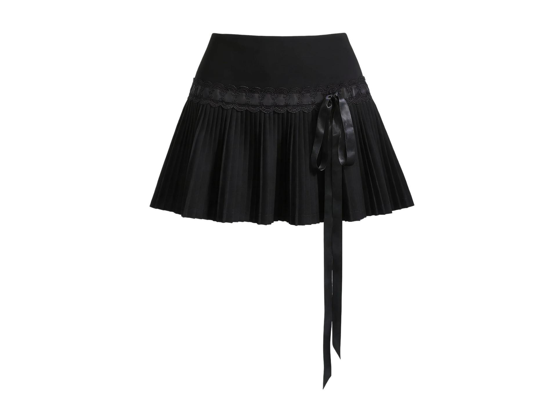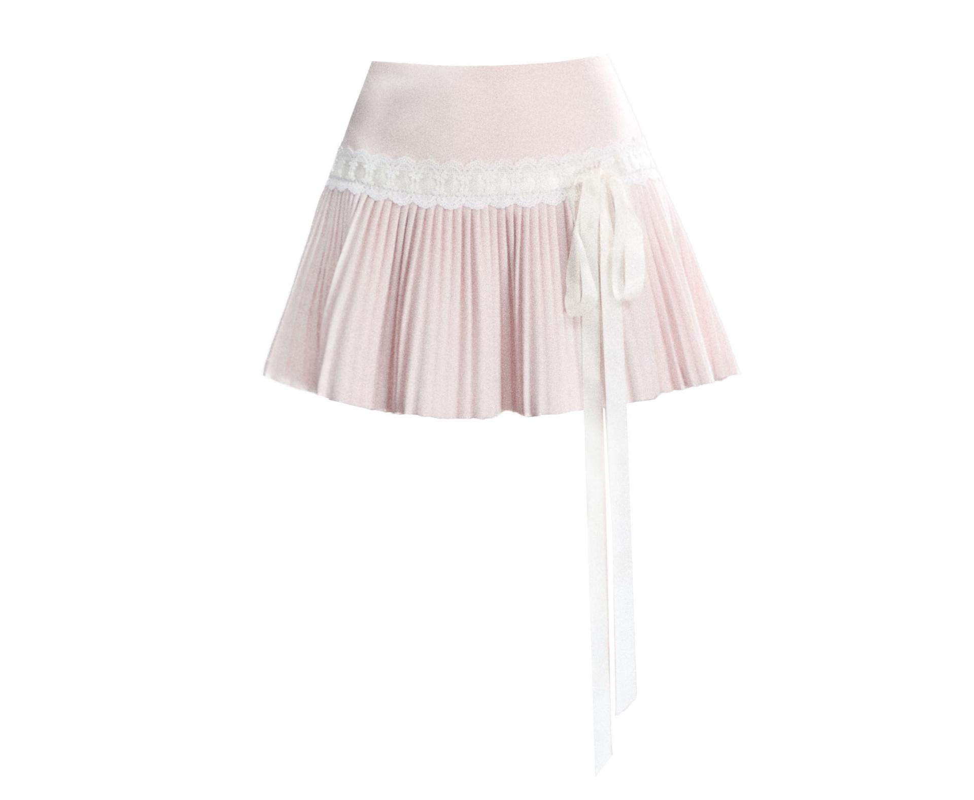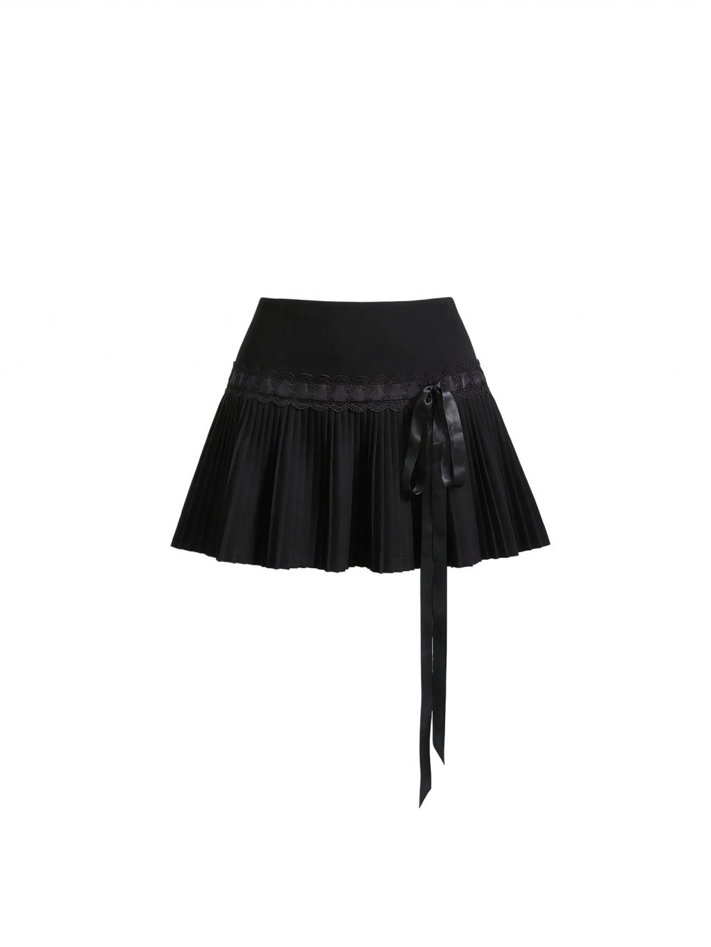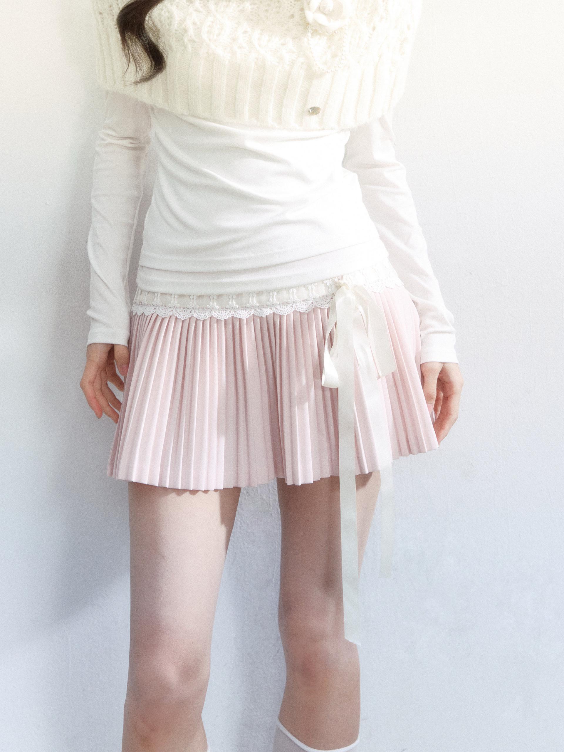 Ribbon Lace Pleat Mini Skirt