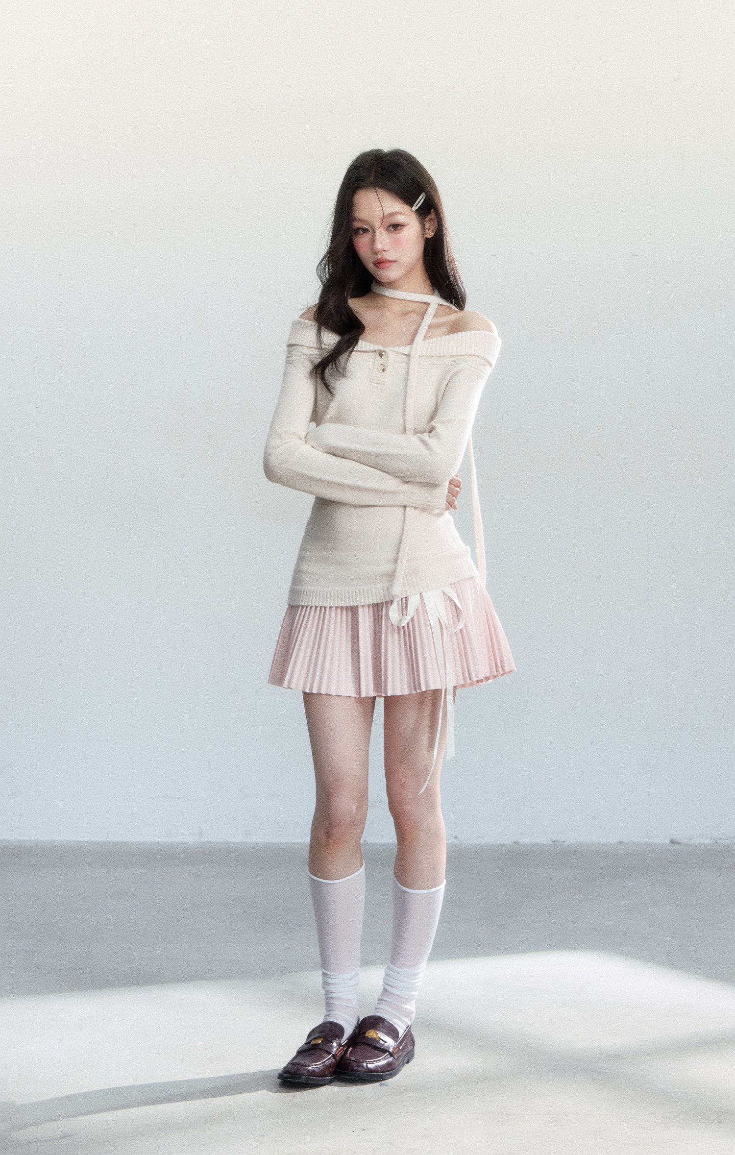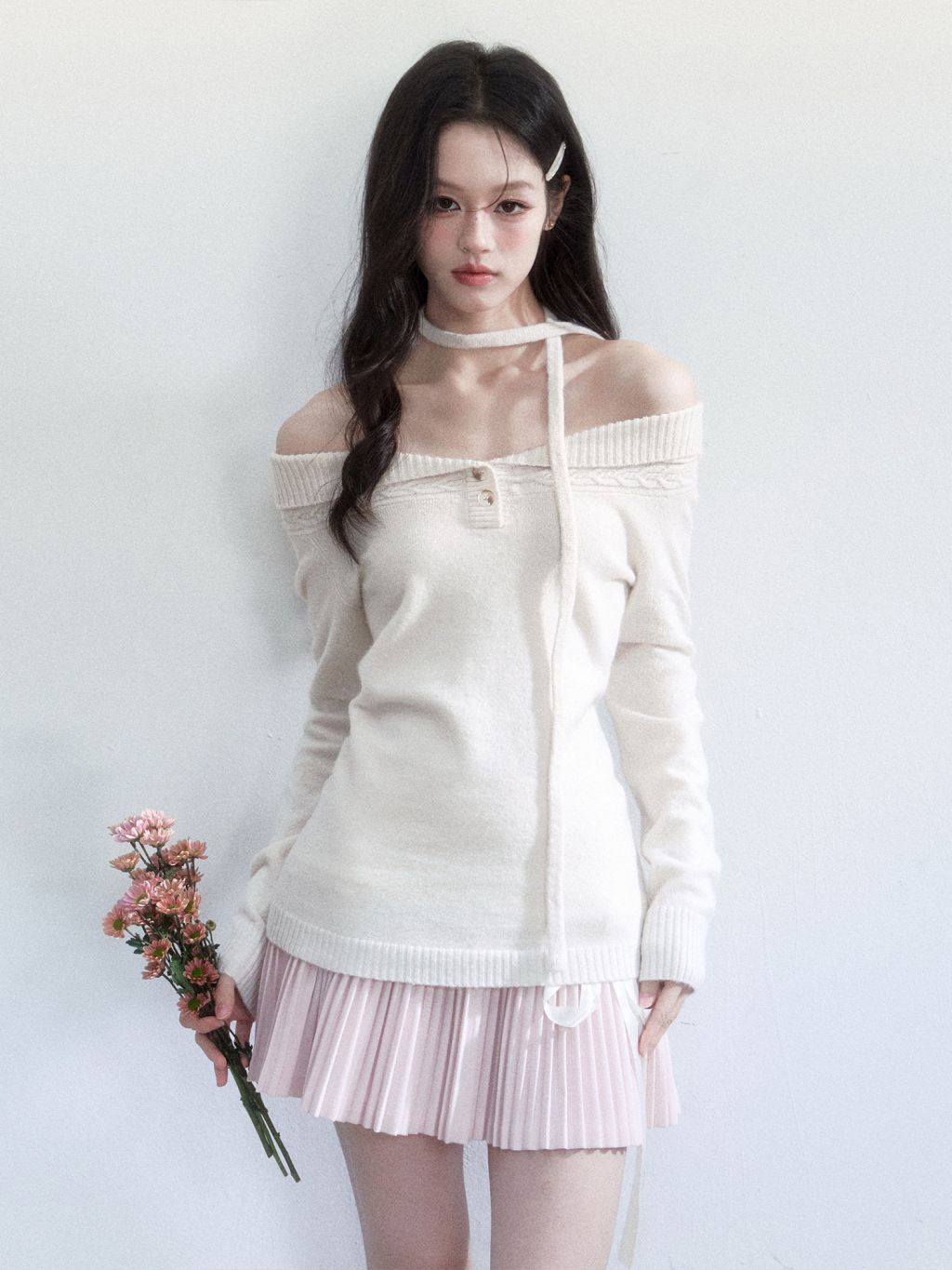 - 사이드 롱 리본 디테일로 묶어 연출하면 스타일링 완성도가 올라갑니다.