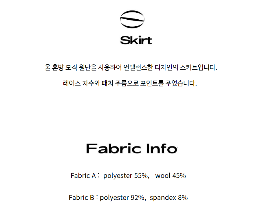 【 Fabric A : polyester 55%, wool 45% Fabric B : polyester 92%, spandex 8% 】