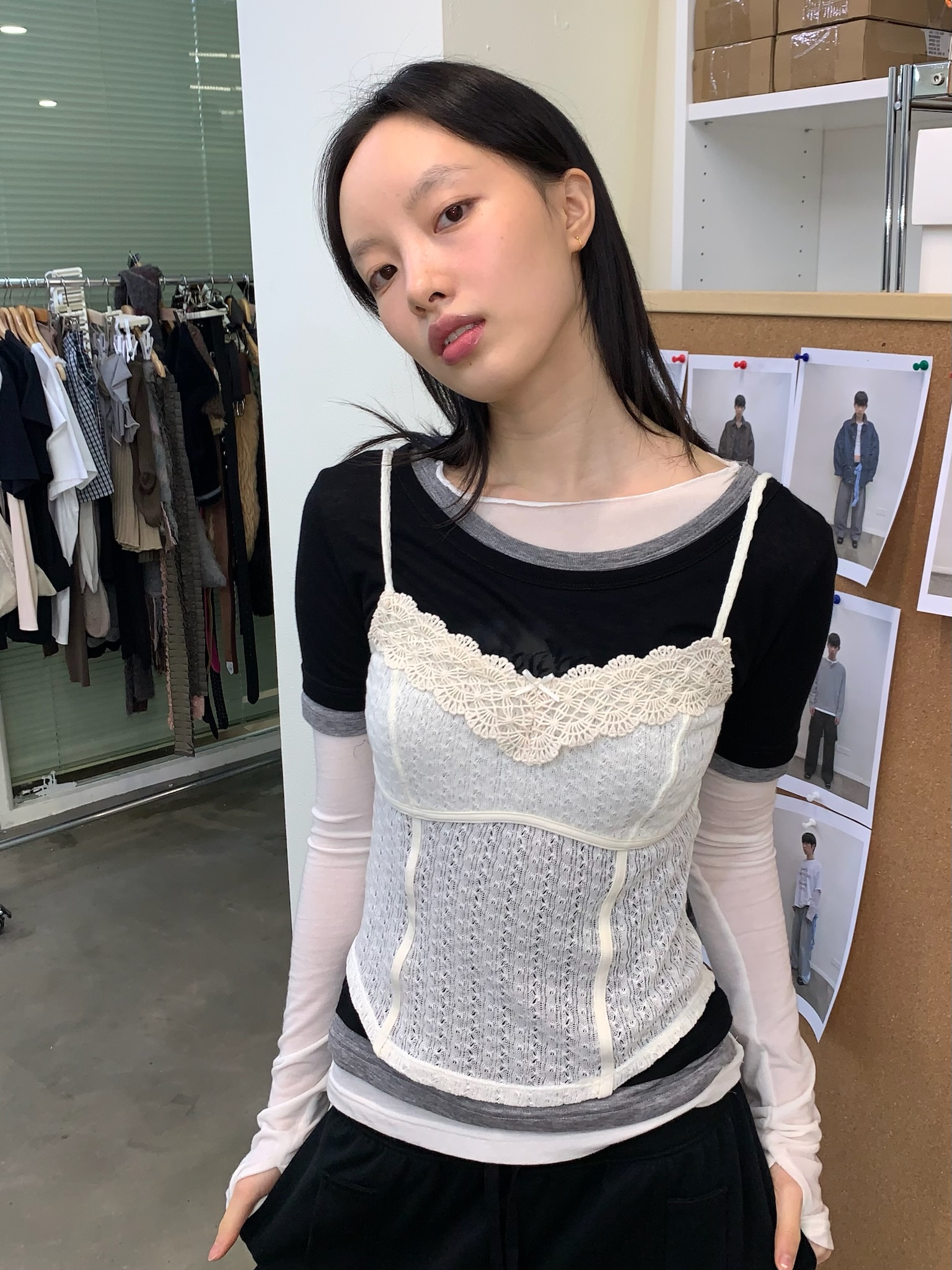 가슴 아래 부분을 시스루 디테일을로 디자인하여 단품으로