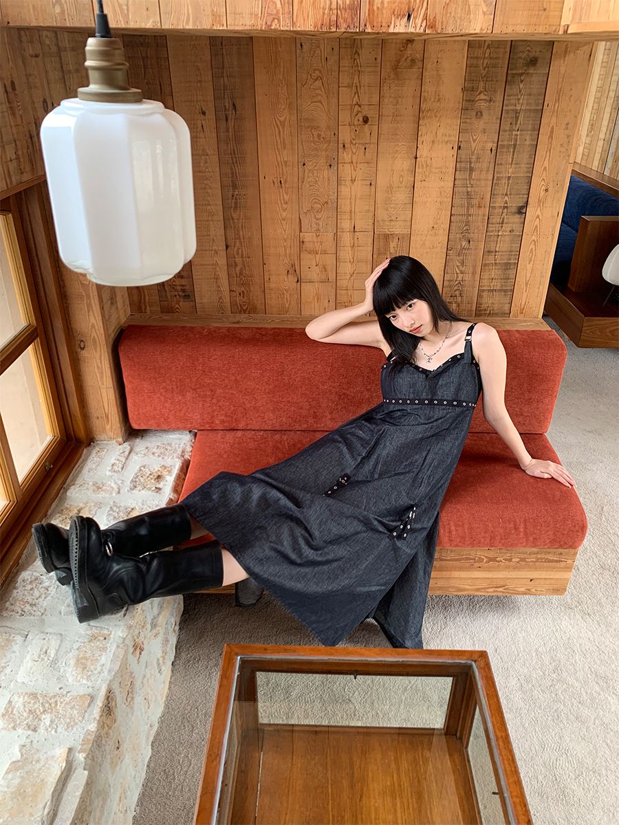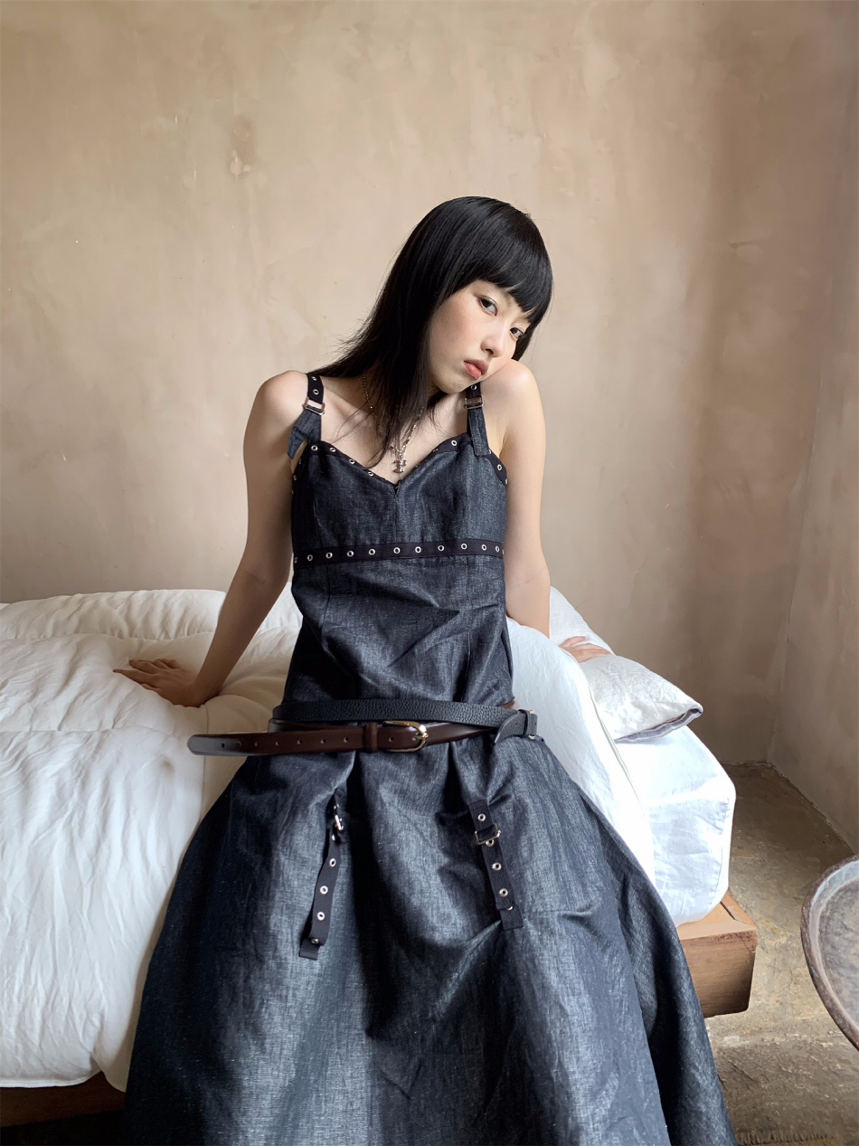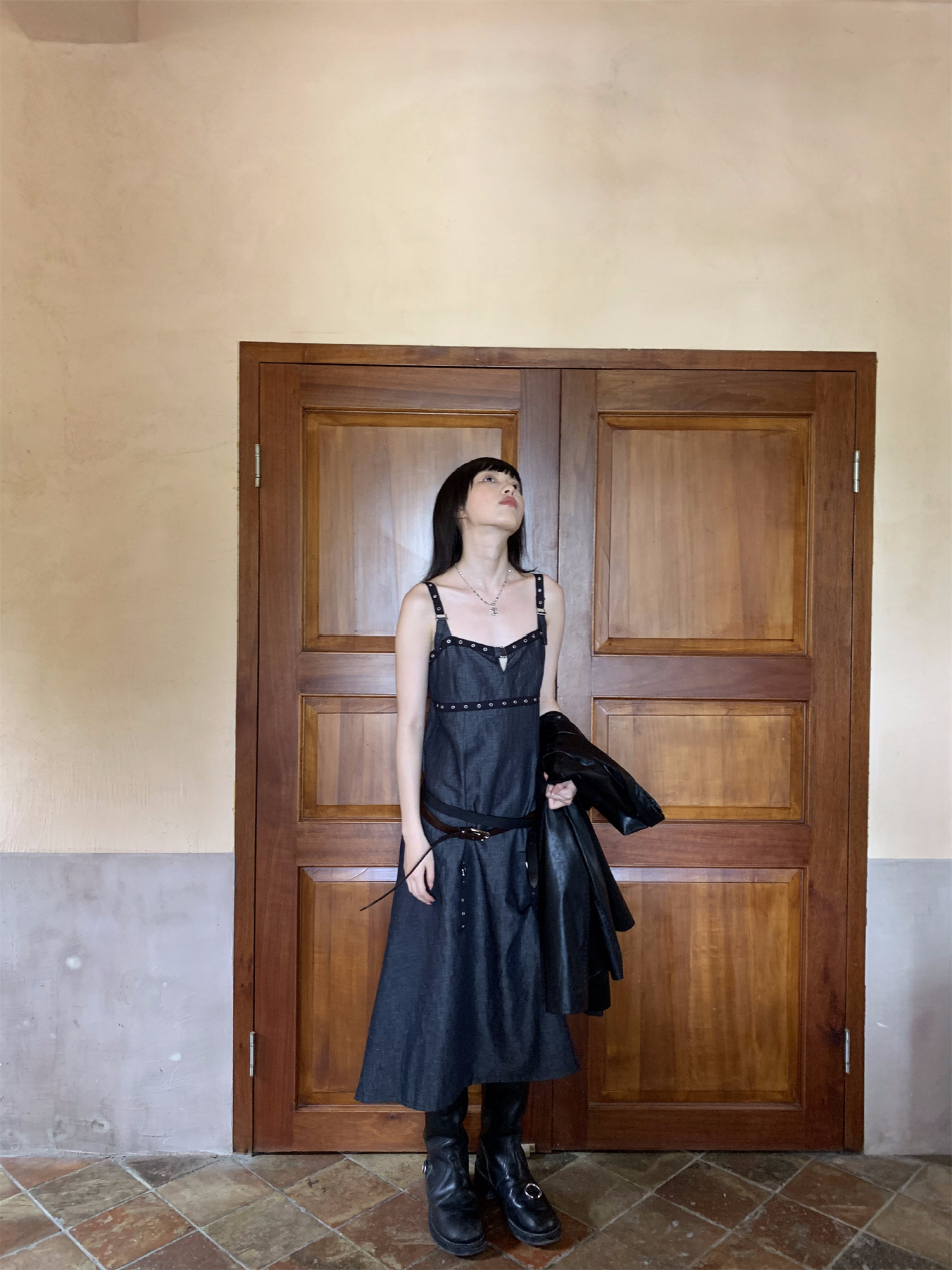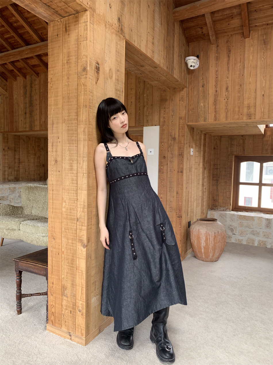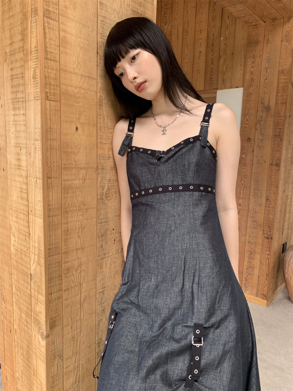 아일렛이 들어가 펑크적인 요소가 가미된 빈티지한 디자인의 원피스입니다.