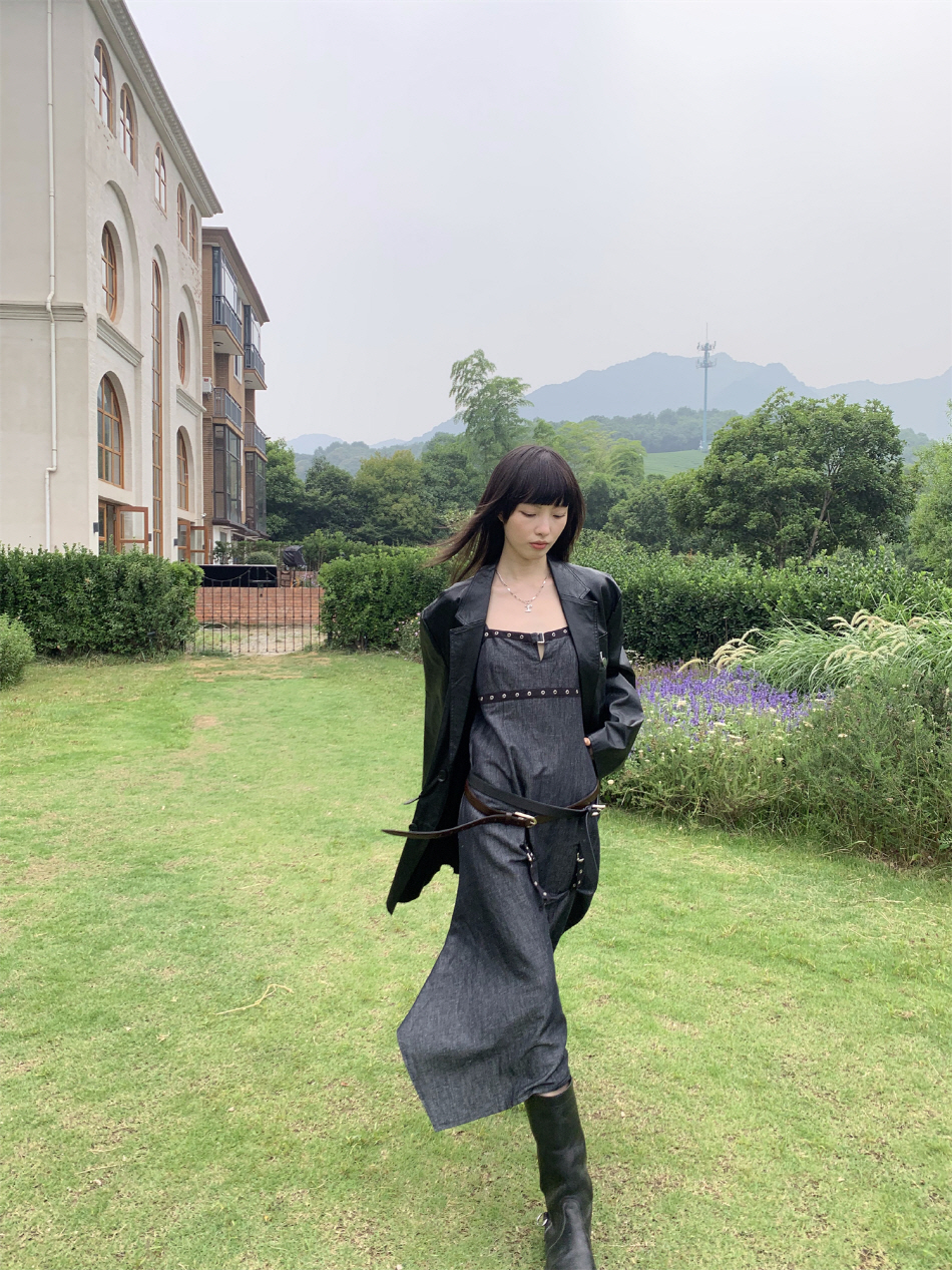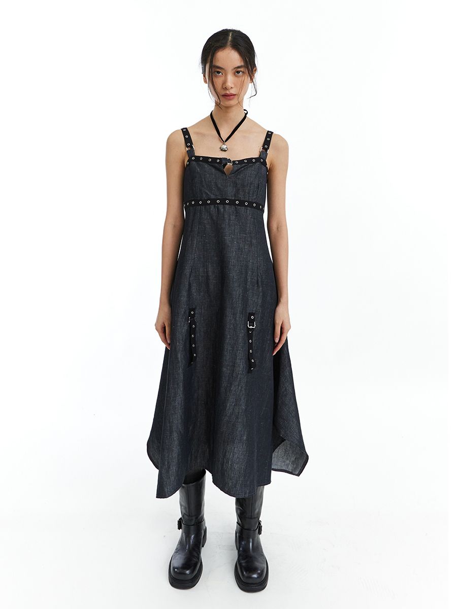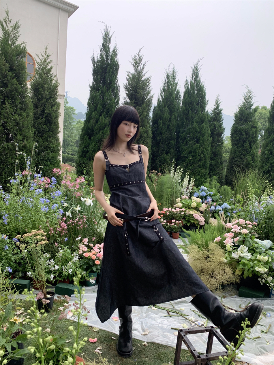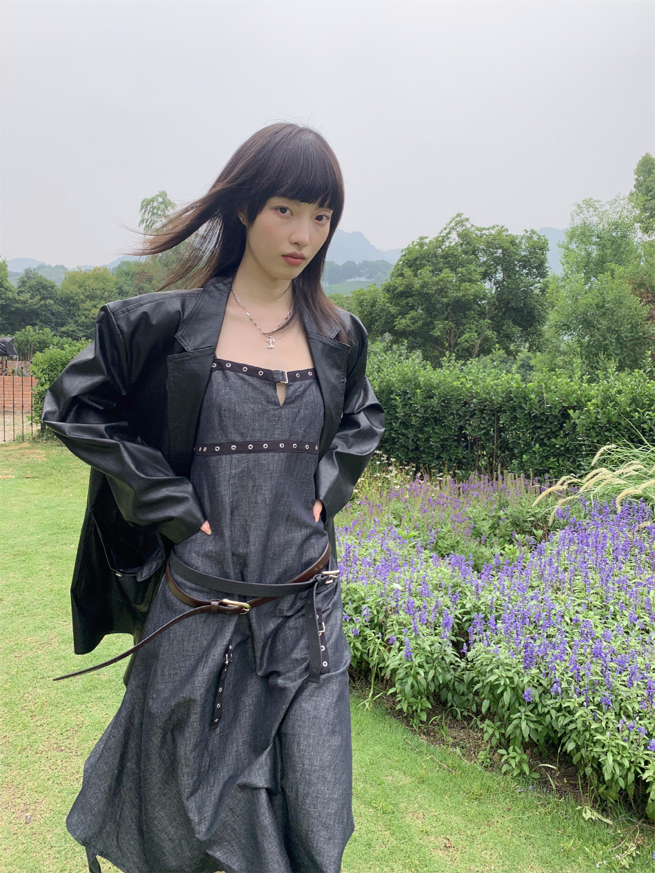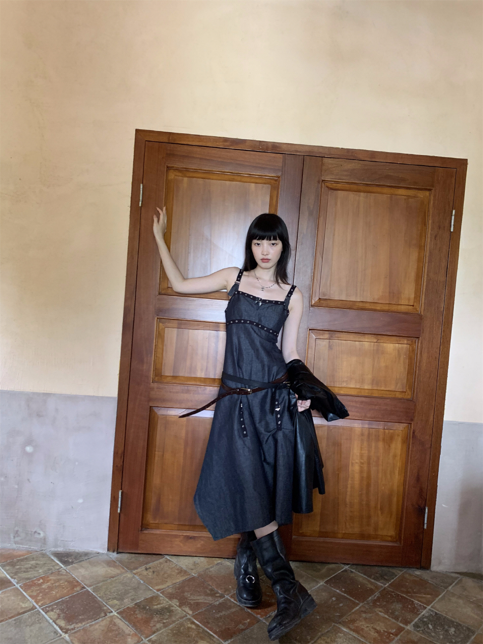 아일렛이 들어가 펑크적인 요소가 가미된 빈티지한 디자인의 원피스입니다.