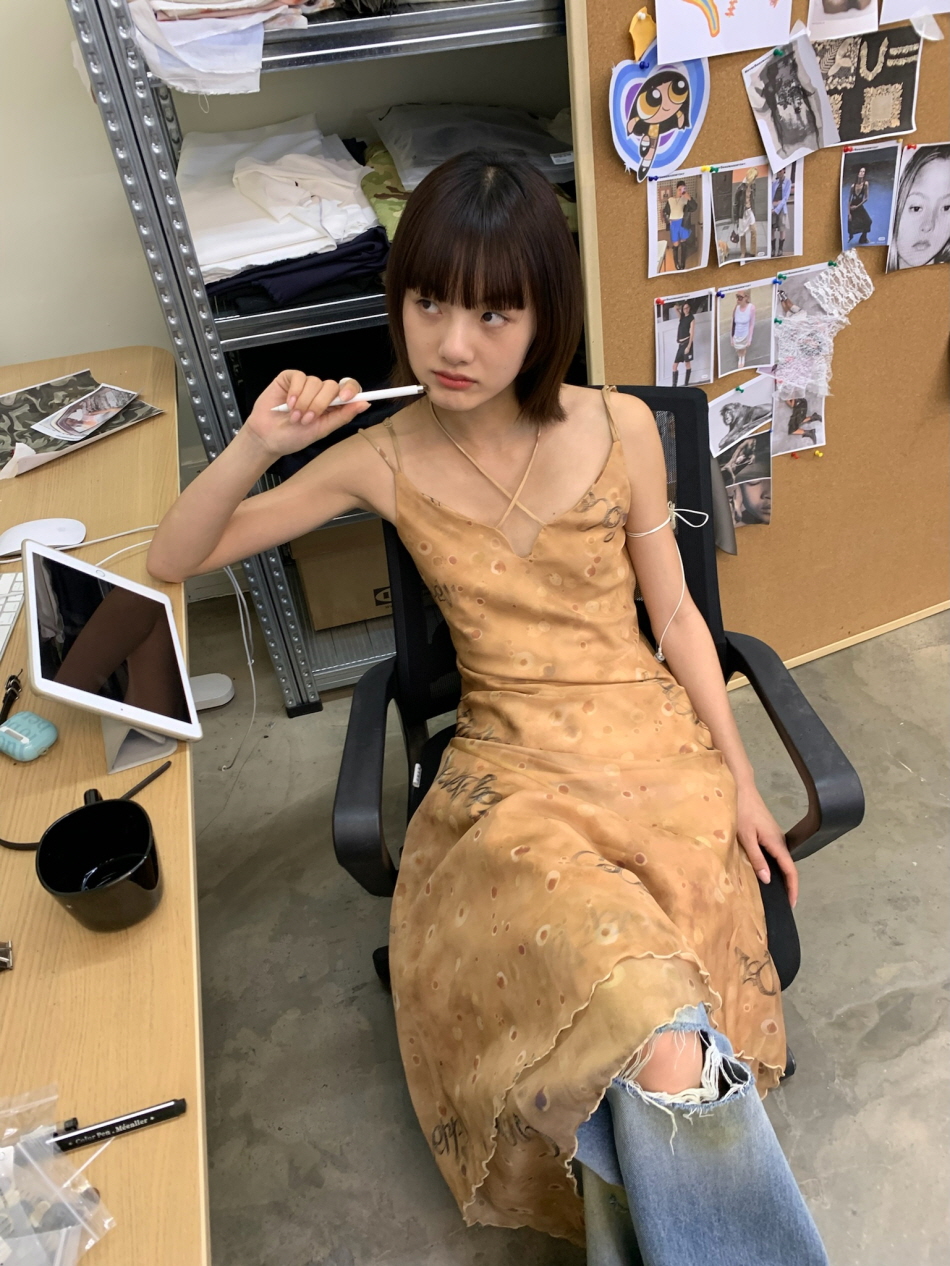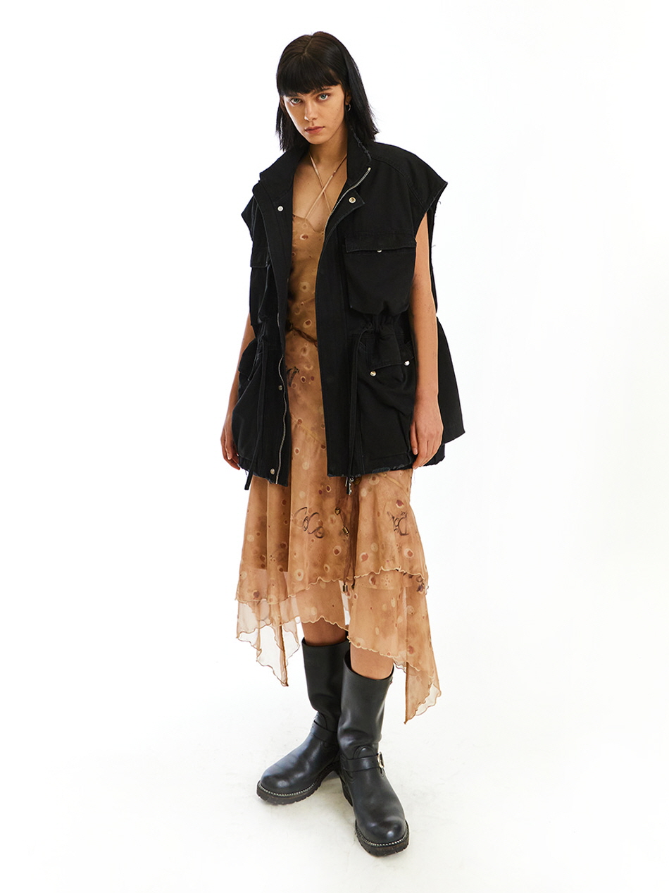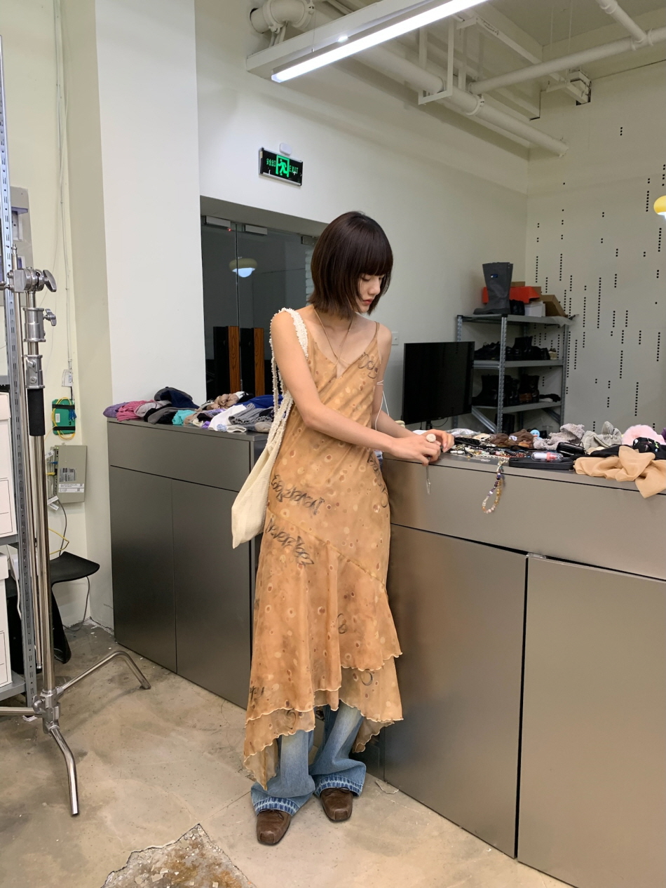 불규칙적으로 겹쳐지는 레이어드 디자인과 밑단 부분에