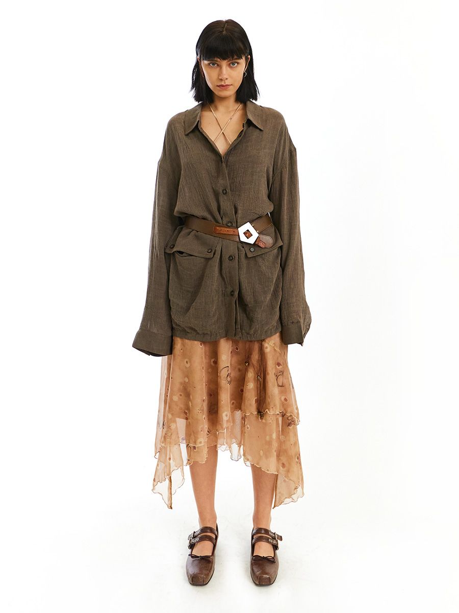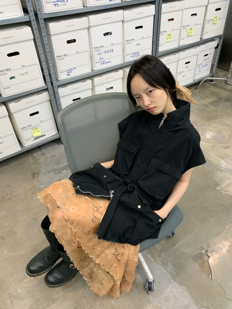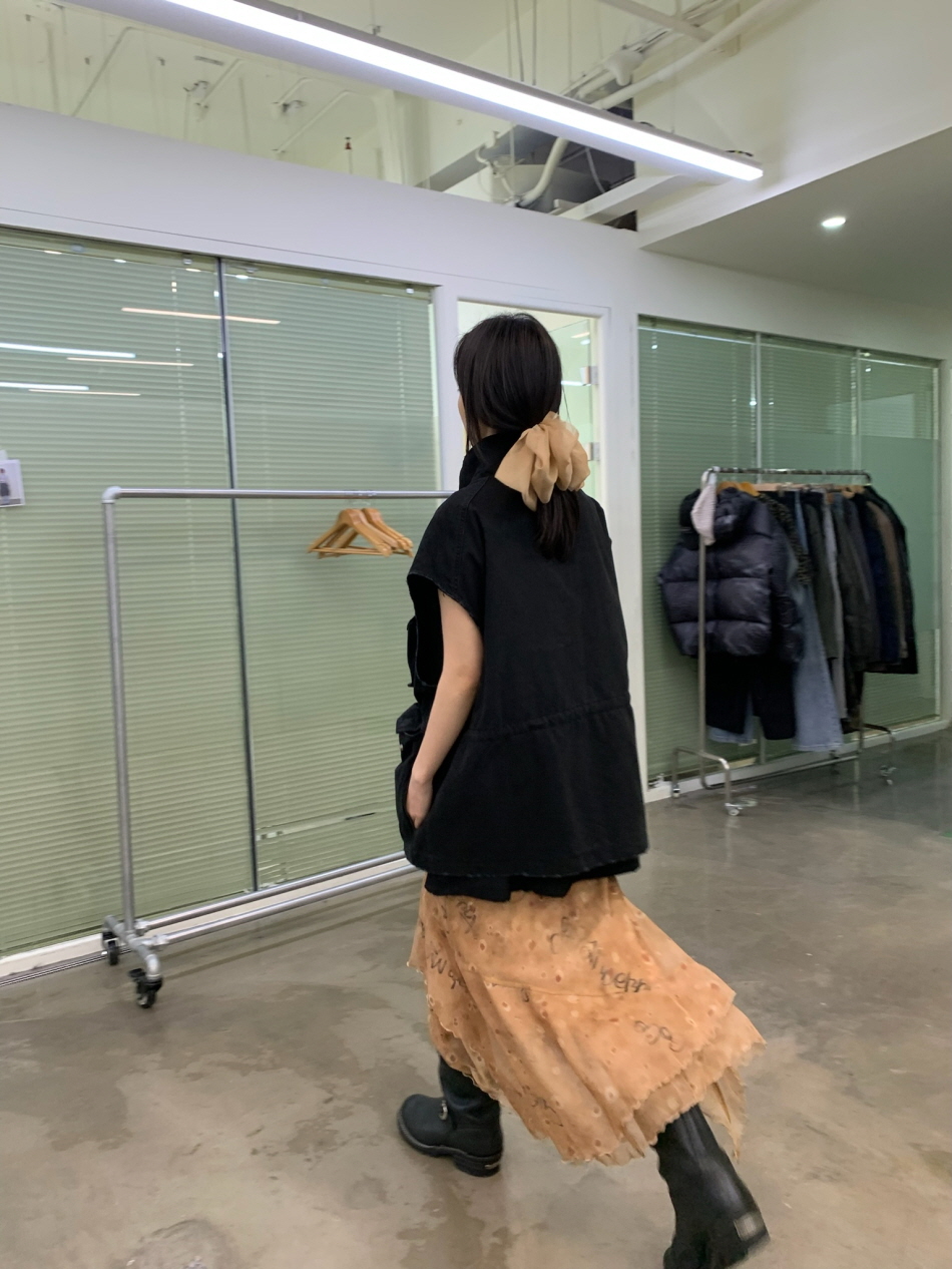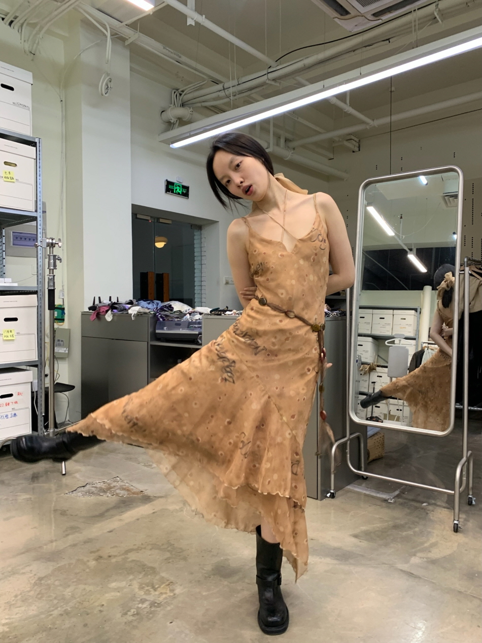 불규칙적으로 겹쳐지는 레이어드 디자인과 밑단 부분에
