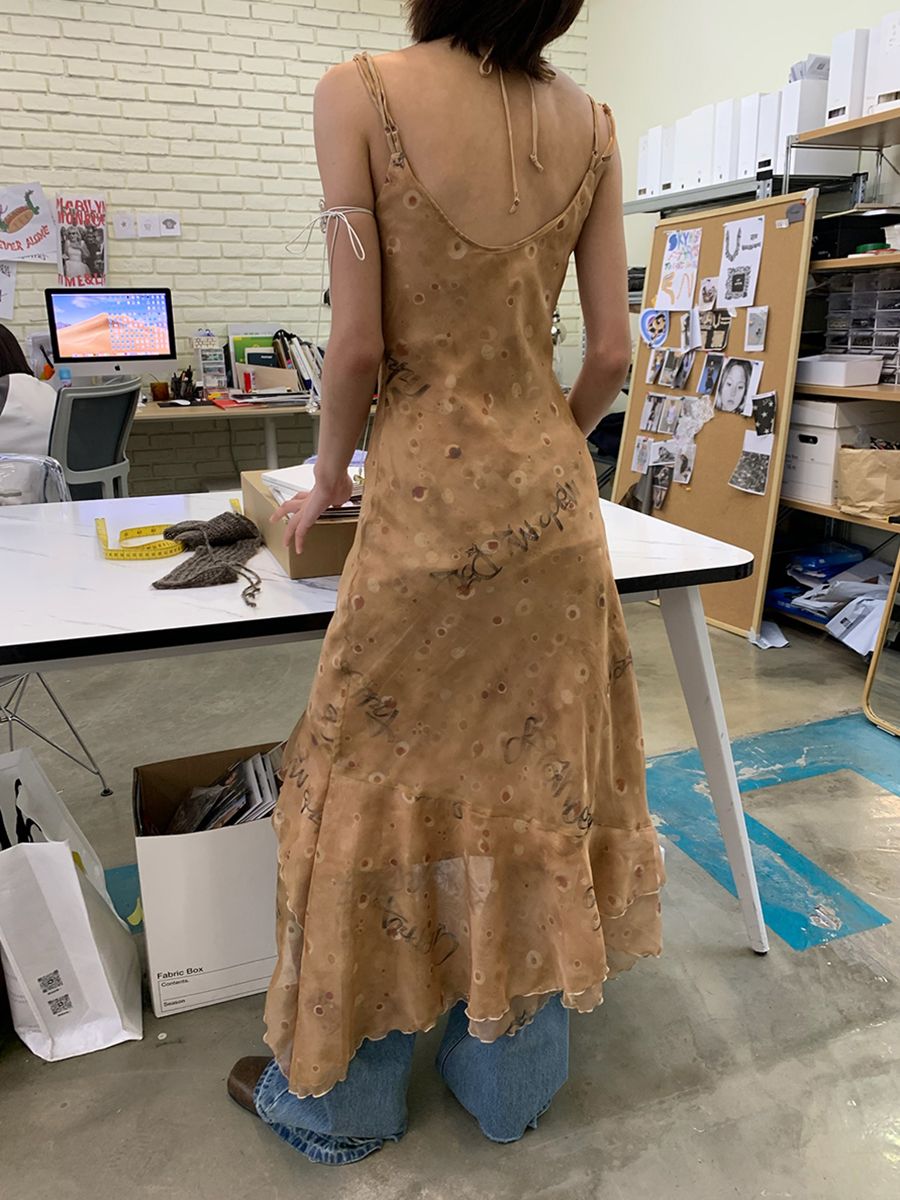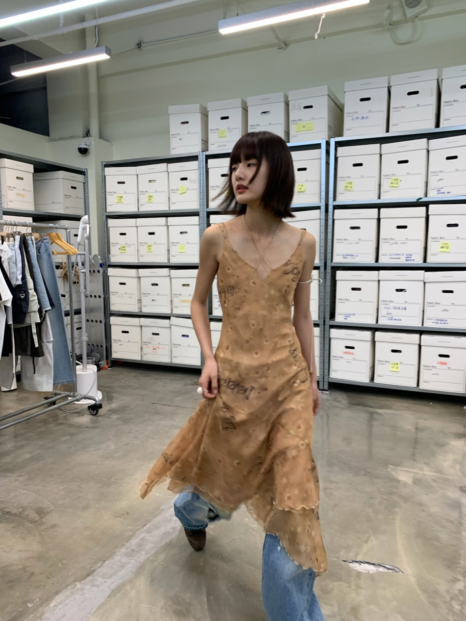얇은 실크 소재를 사용하여 편안하고 부드러운 질감을 느낄 수 있는 맥시 드레스입니다.