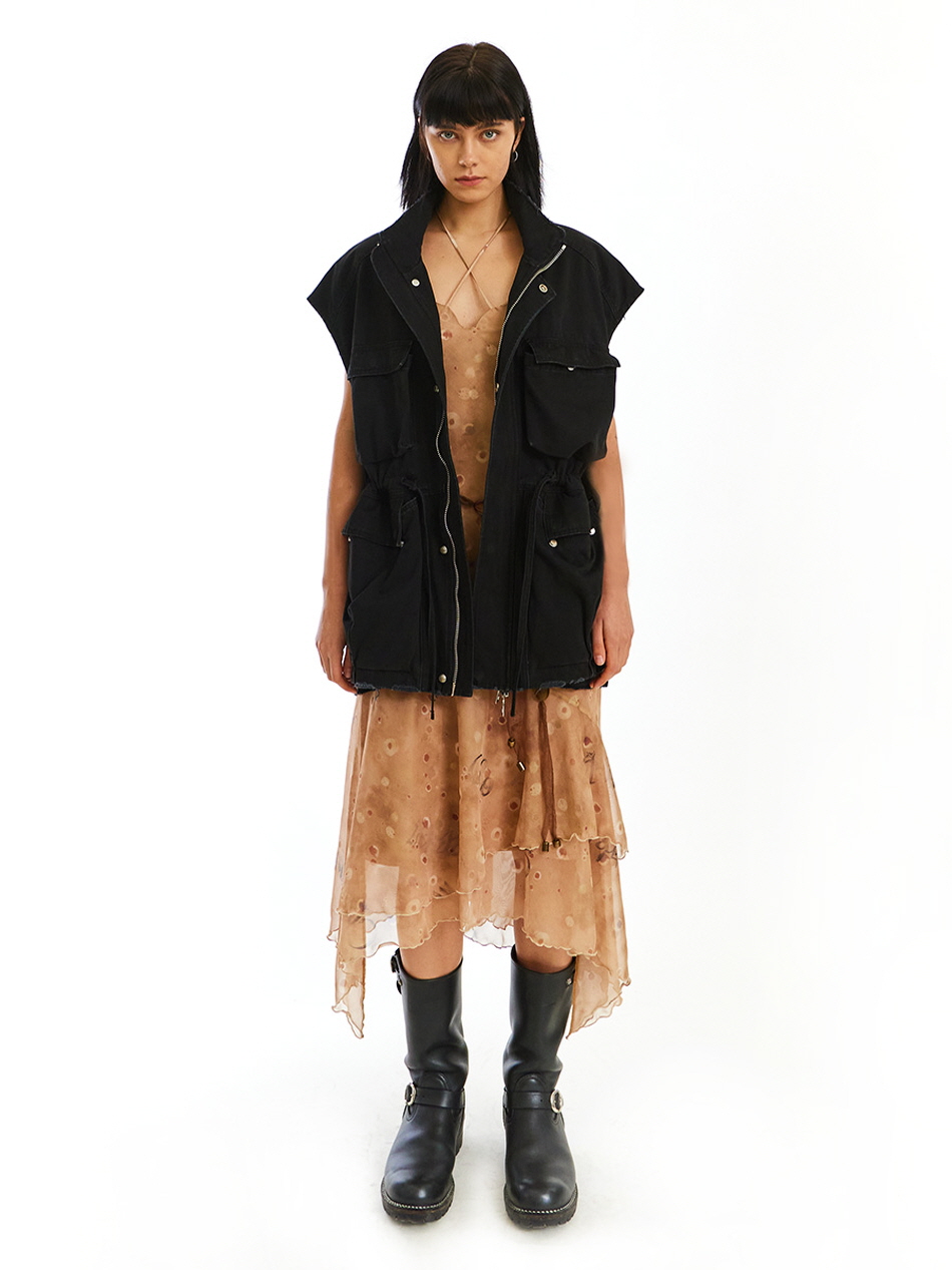 티셔츠나 셔츠 등과 함께 다양하게 코디하여 입을 수 있는 클래식한 카고 스타일의 베스트입니다.