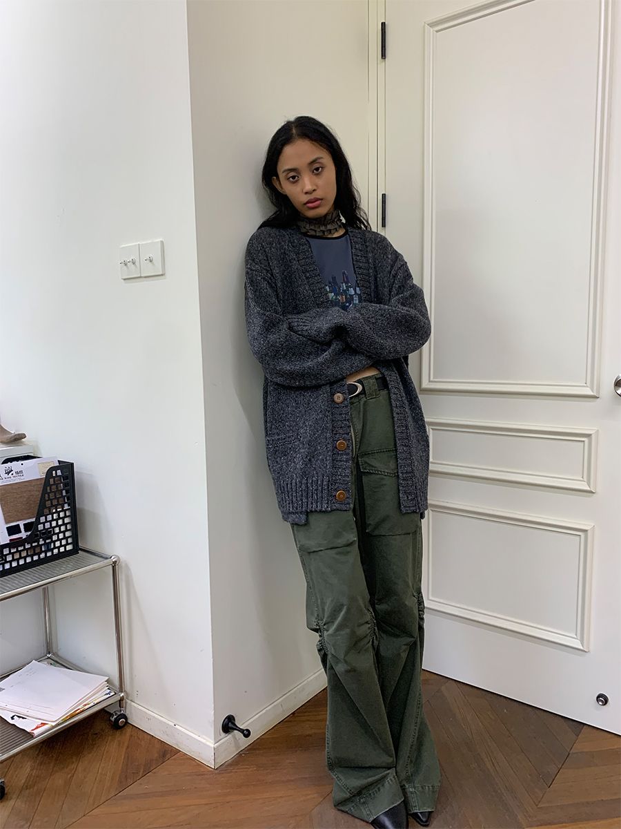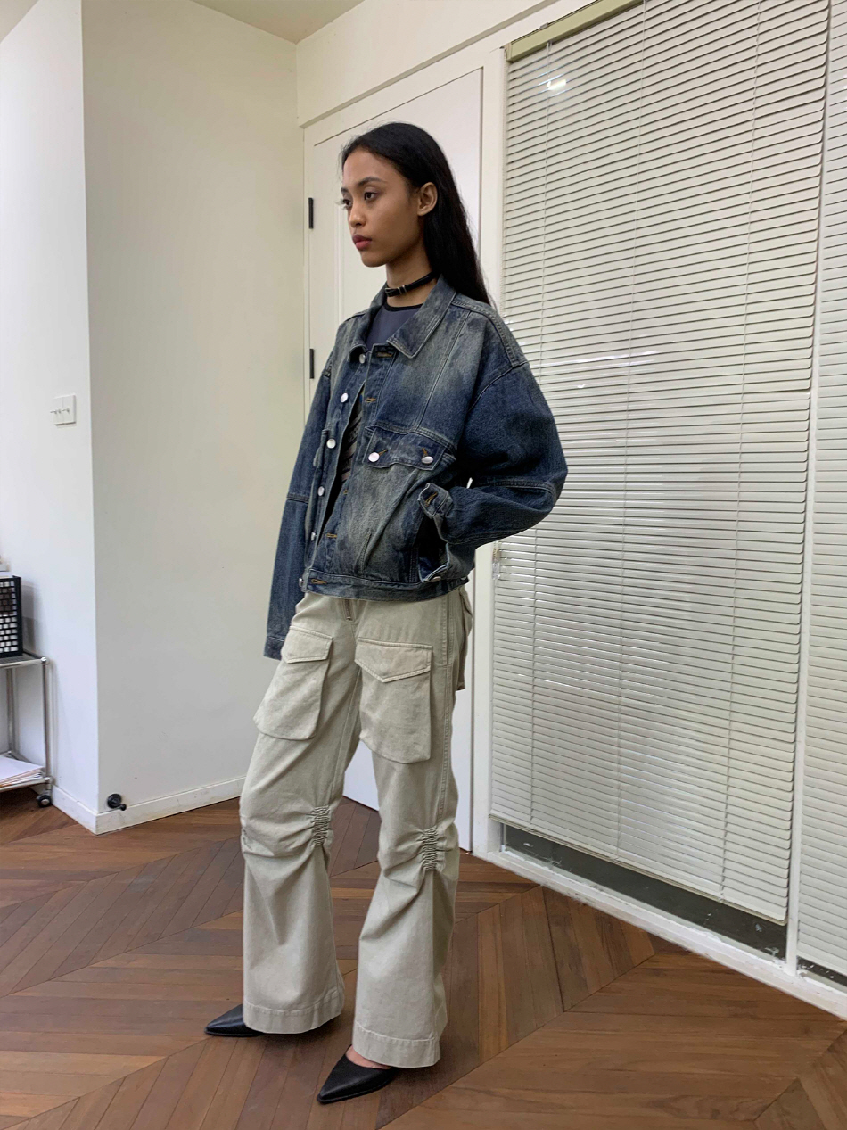 천연 염색과 워싱 공정을 거쳐 자연스럽게 에이징 된 모습을 보여주는 아이템입니다.