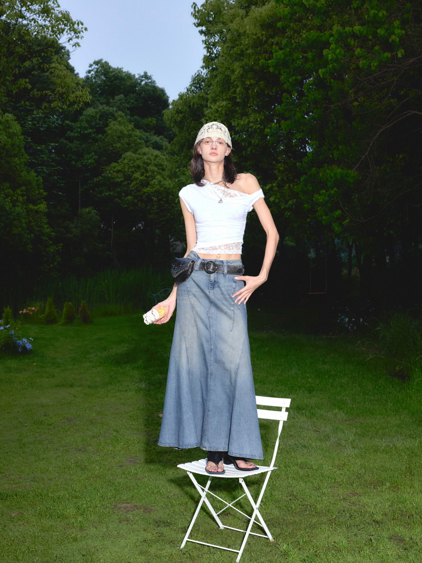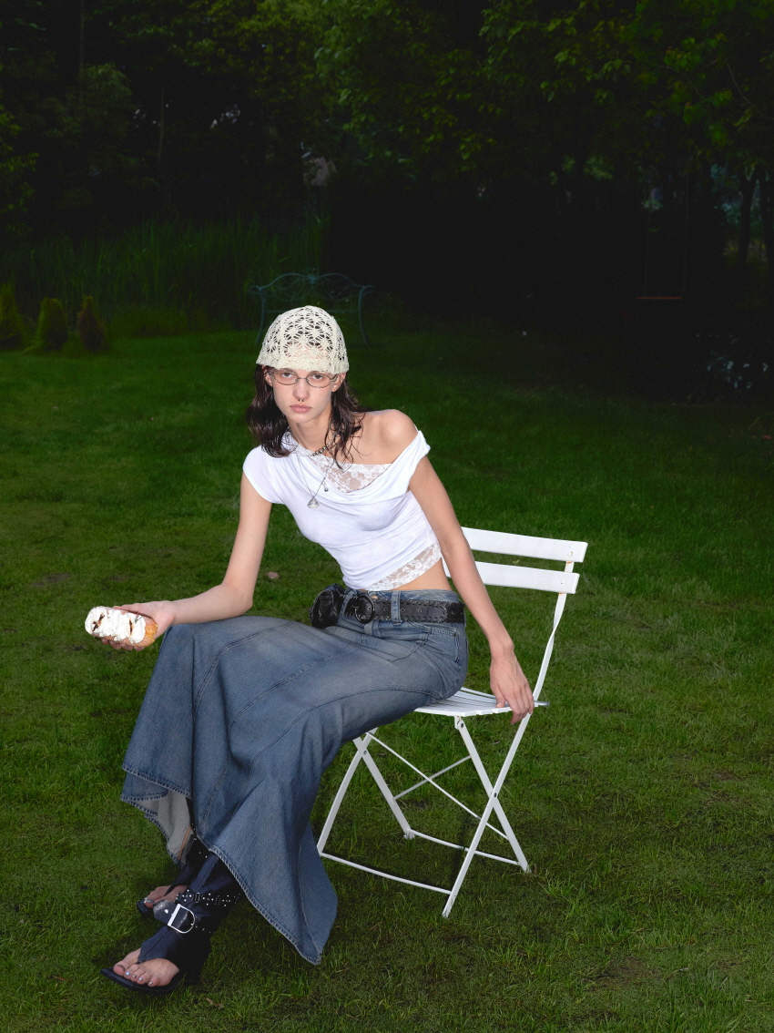 레이스 레이어드 디테일로 유니크하고 섹시한 무드를 연출 할 수 있는 아이템입니다.