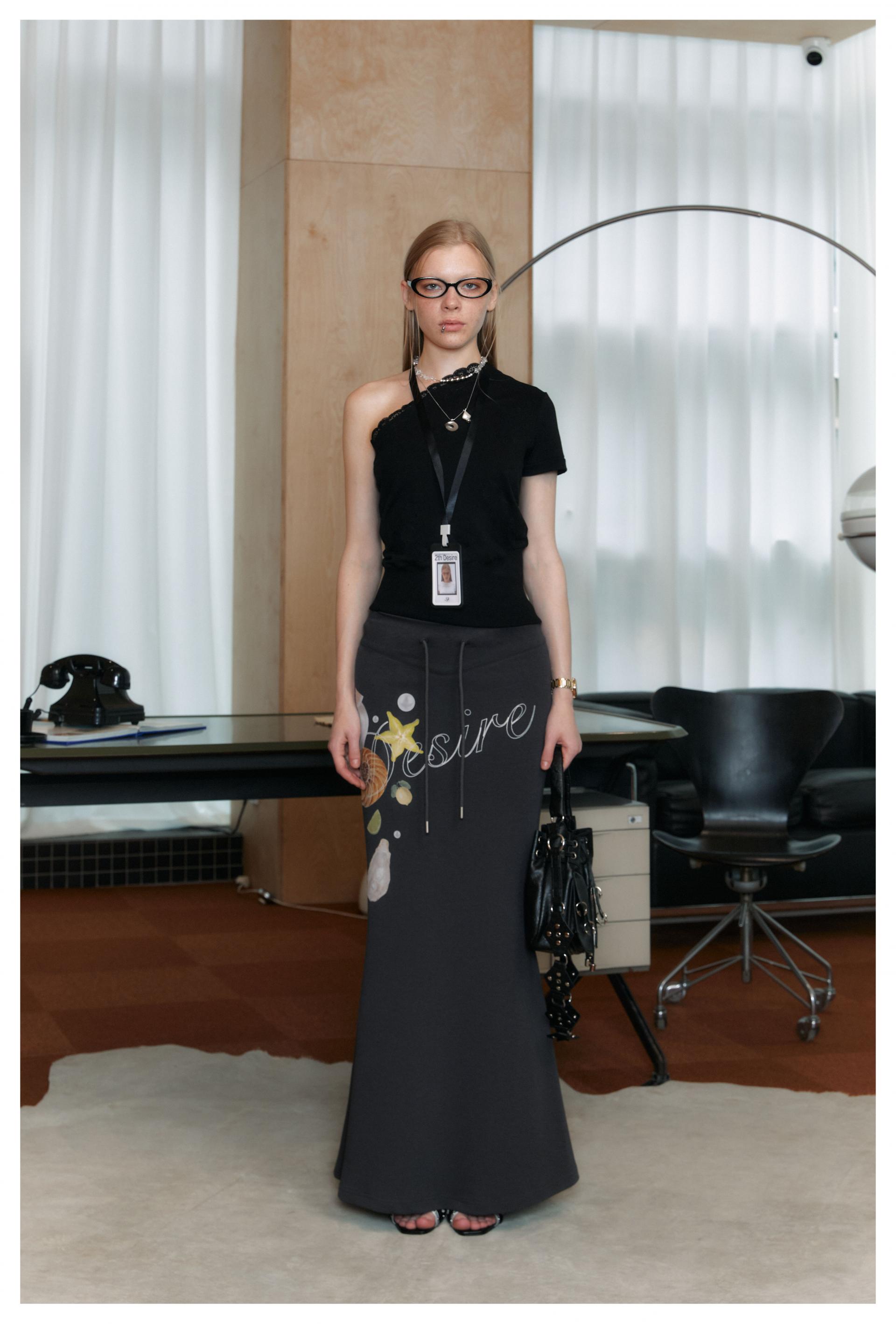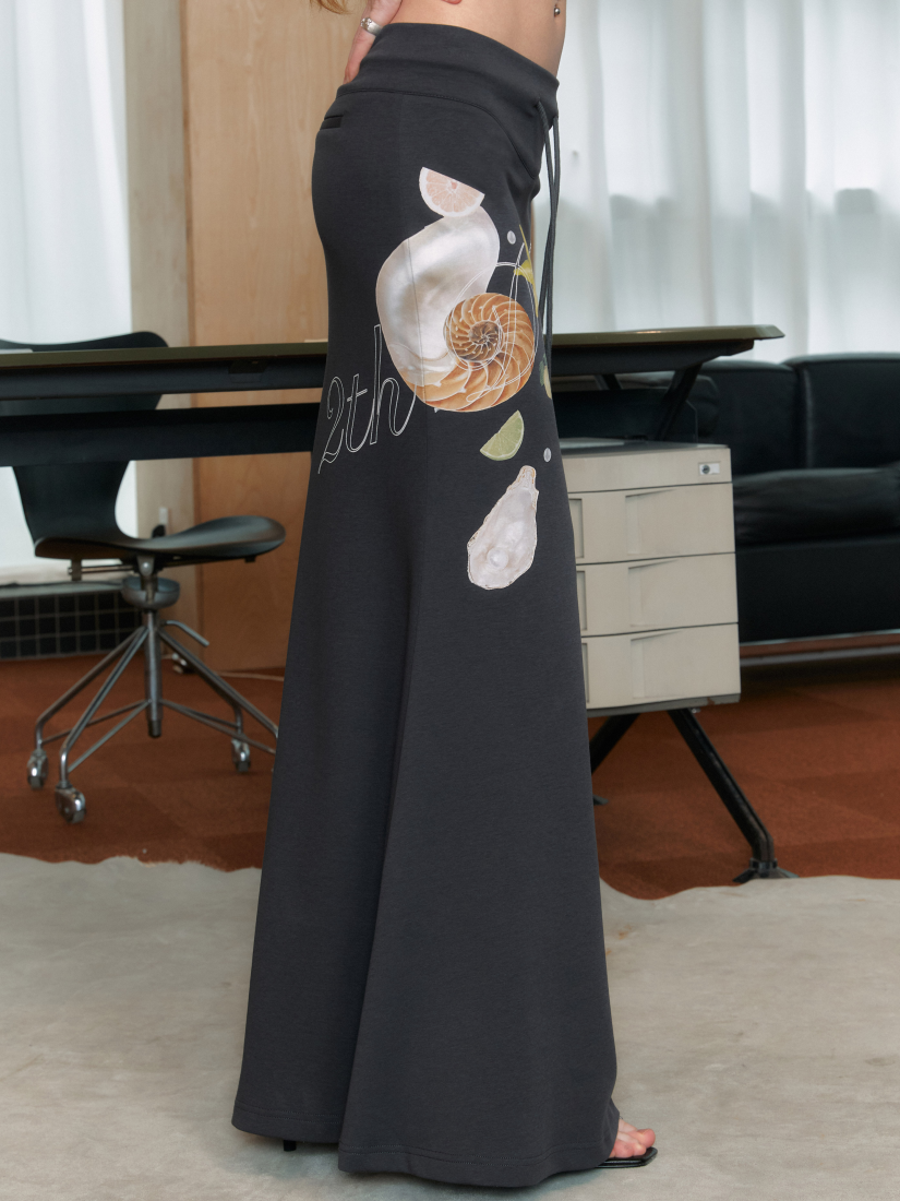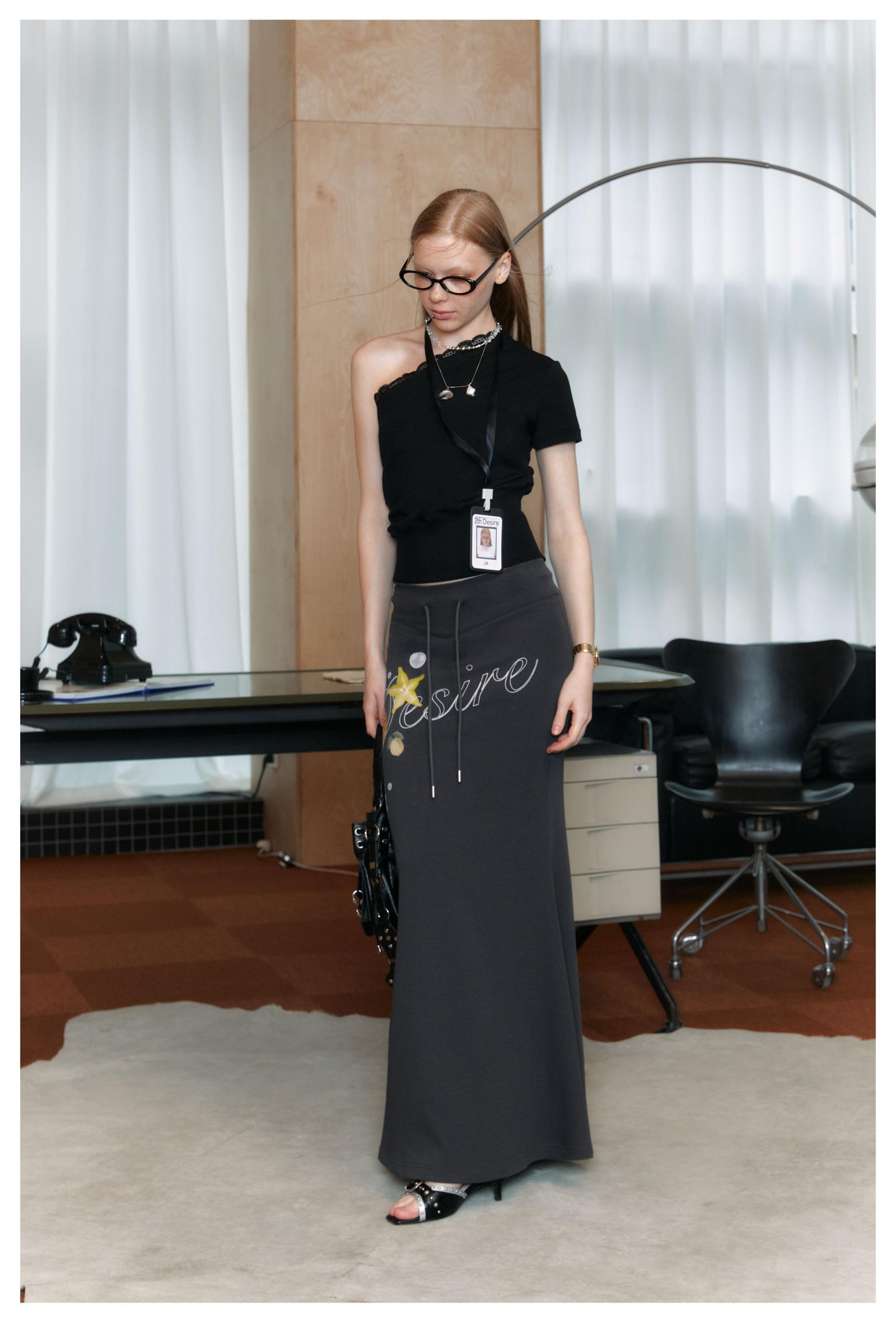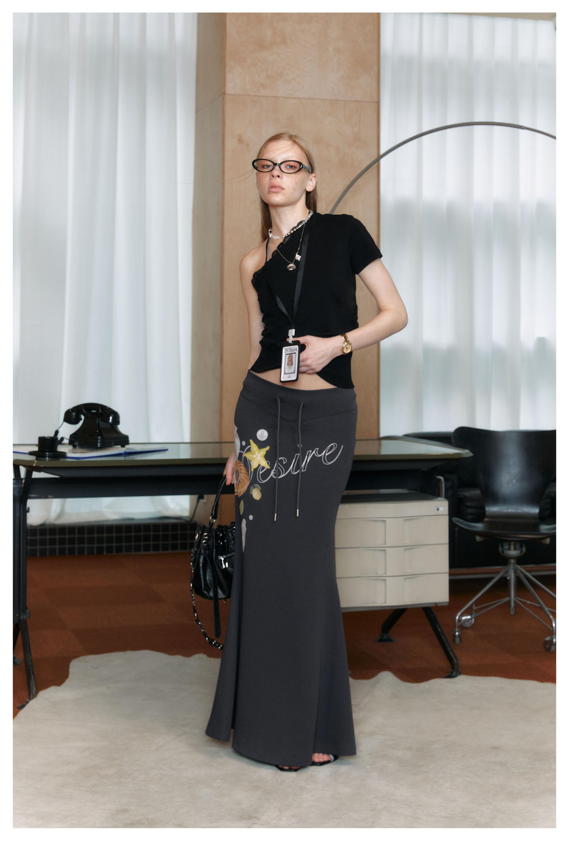 유니크한 그림과 로고 프린팅을 넣어 제작한 롱 스커트입니다.