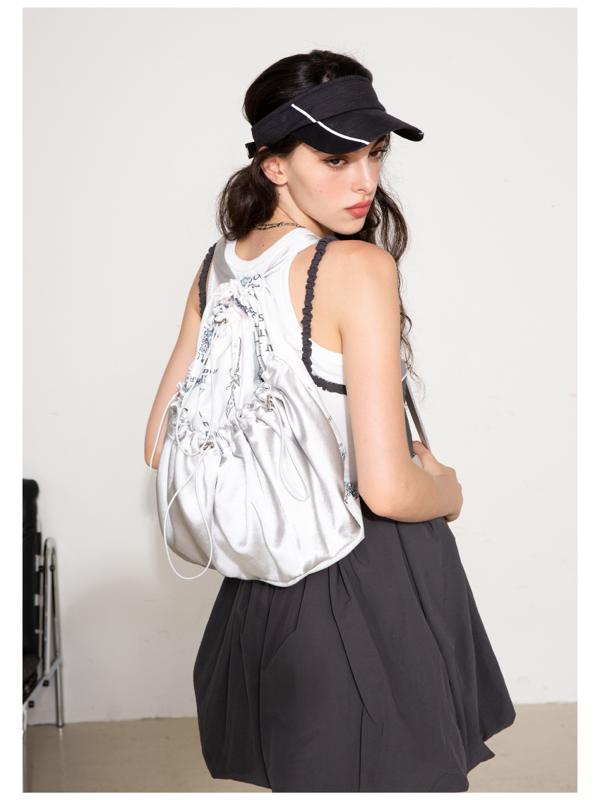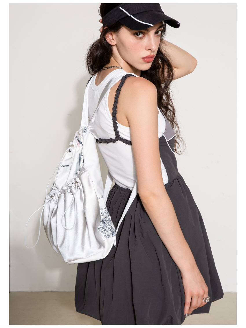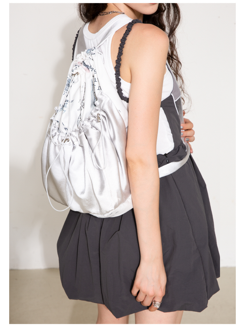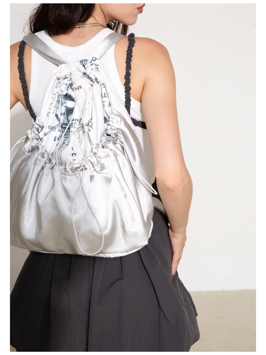 매력적인 프린팅과 실버컬러 원단을 사용하여 제작한 스트링 백팩입니다.