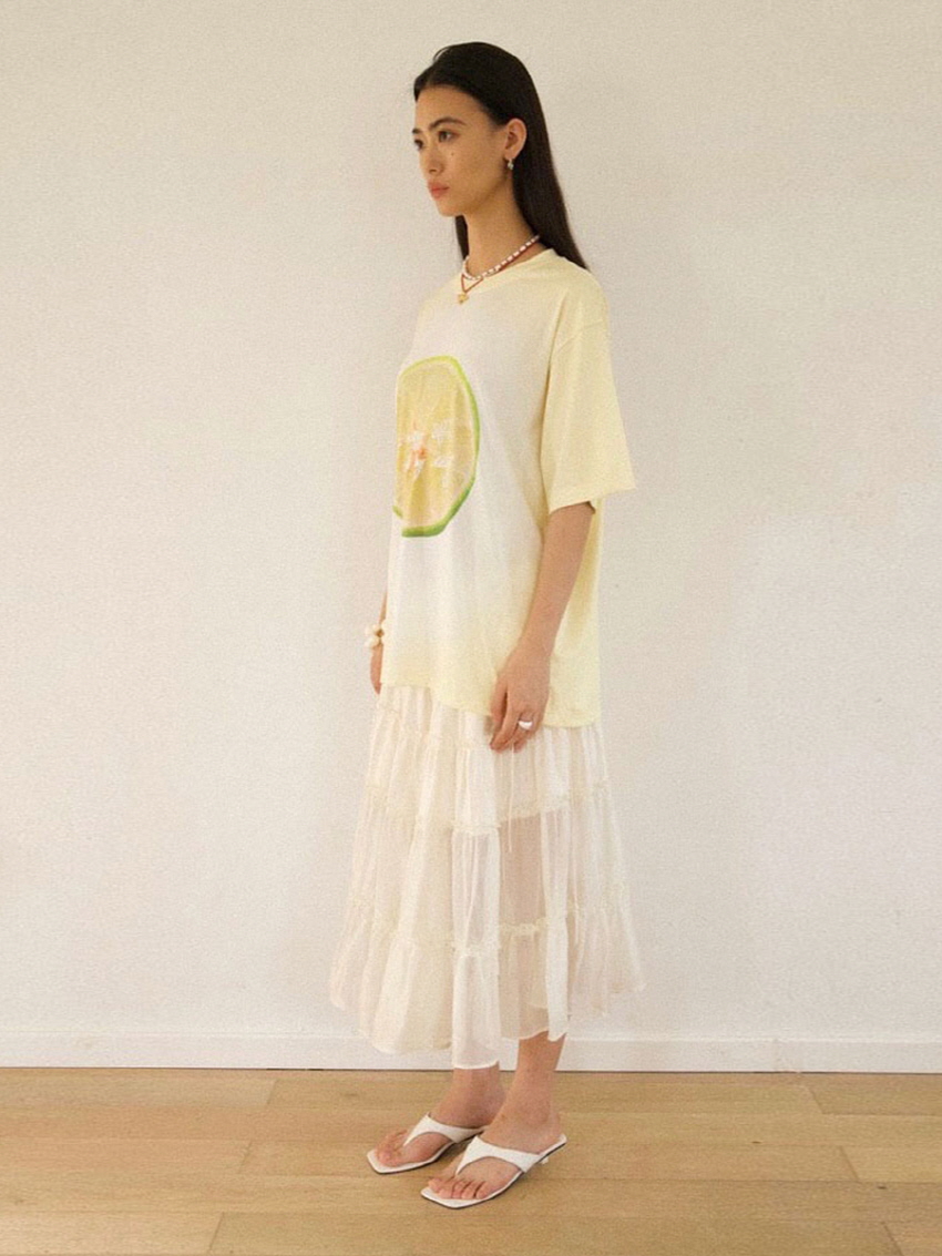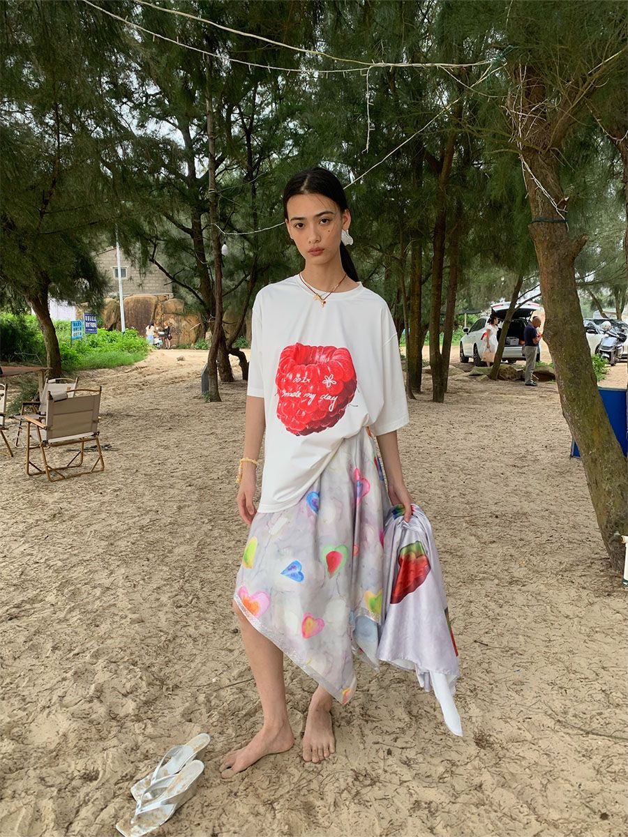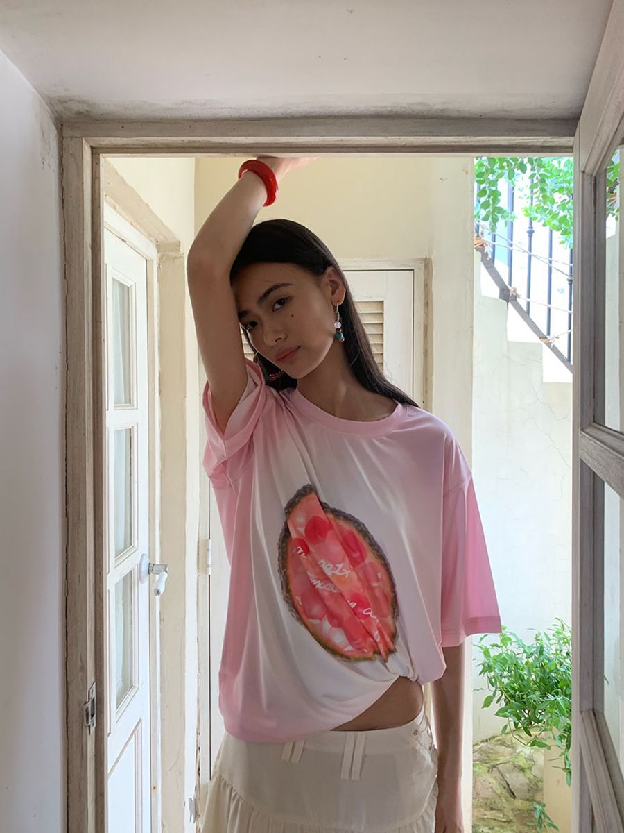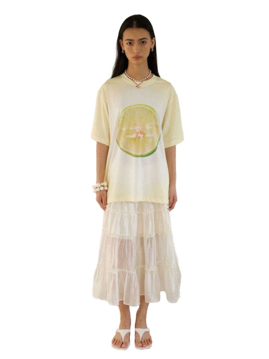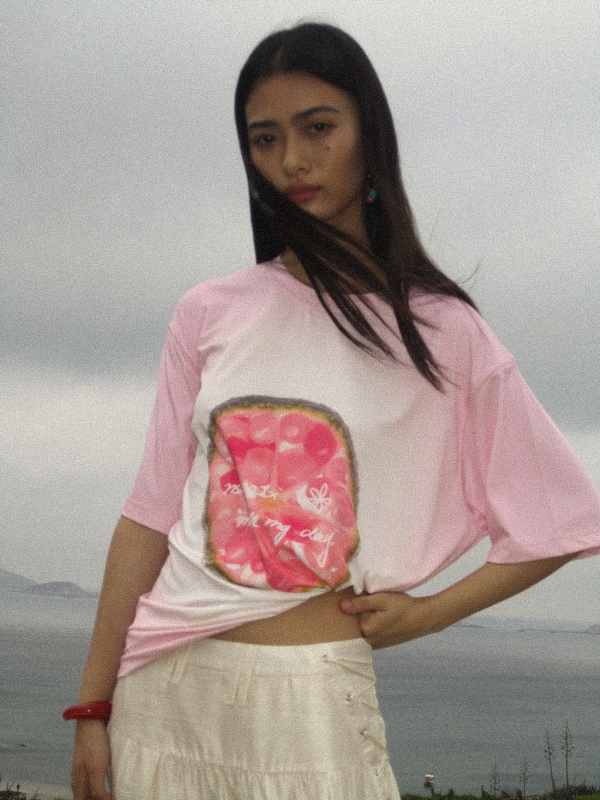 유니크한 과일 프린팅을 넣어 제작한 루즈핏 티셔츠입니다.