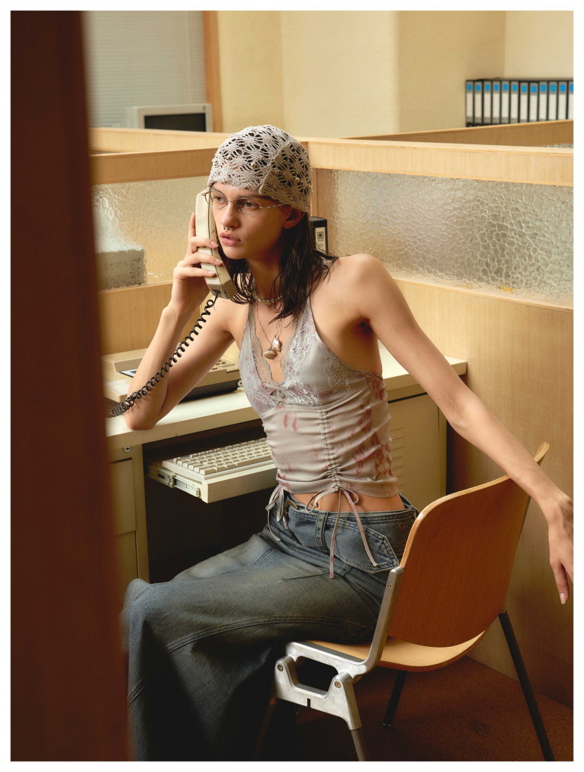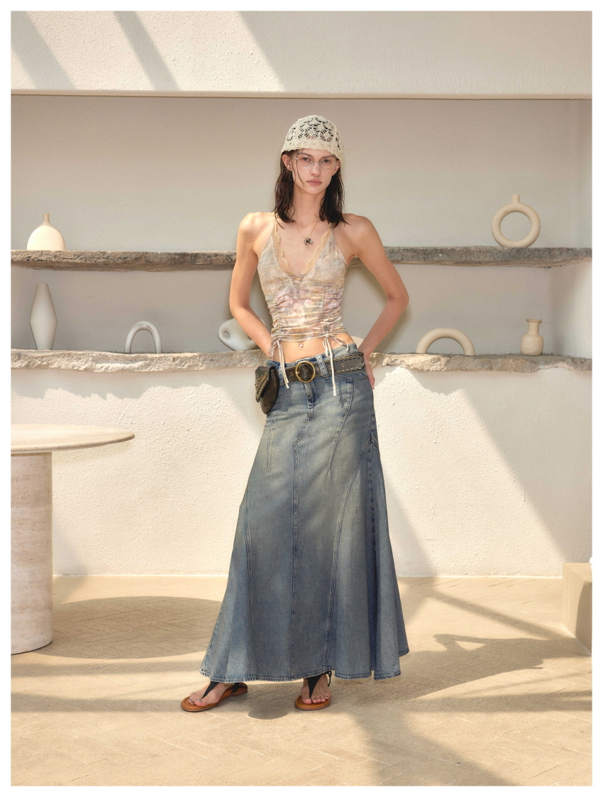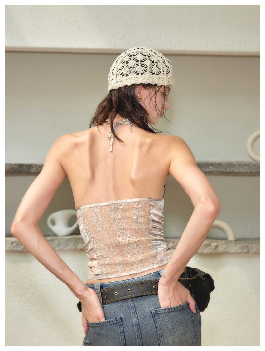 홀터넥 디자인과 레이스, 셔링, 뒷부분에 씨스루 포인트를 주었습니다.