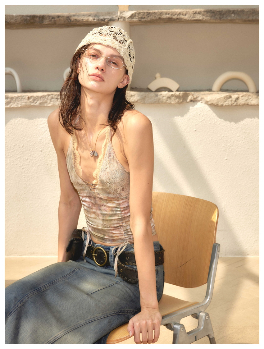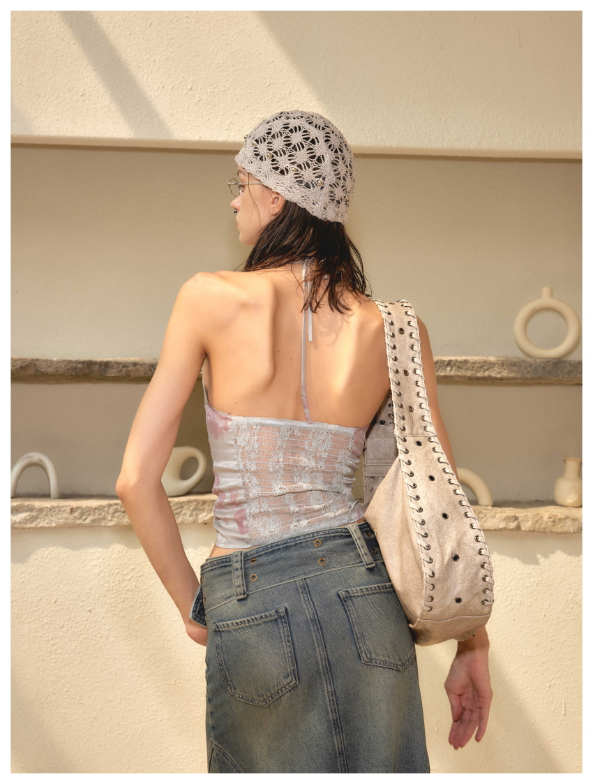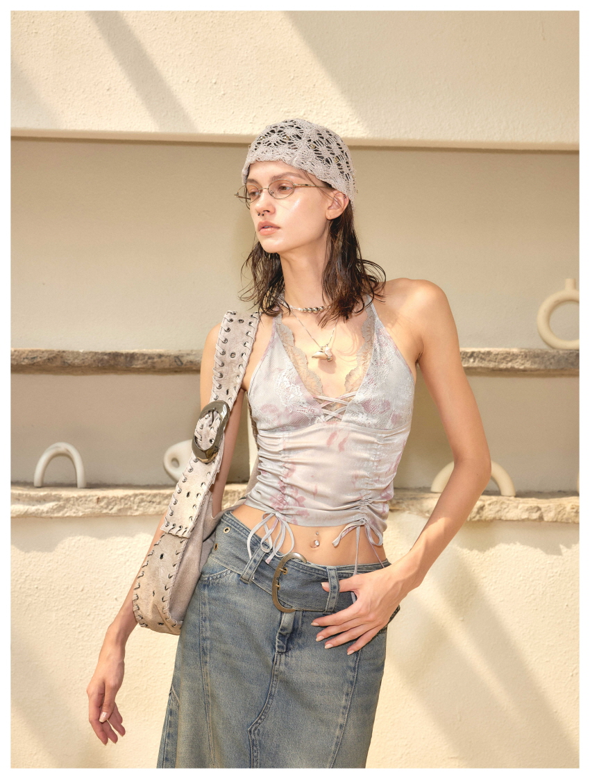 Lace Splice Strap Holder Sleeveless Vest