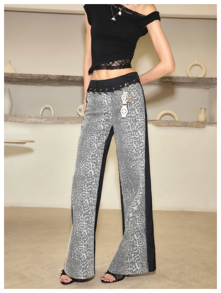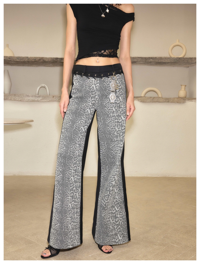 Leopard Print Washed Denim Pants