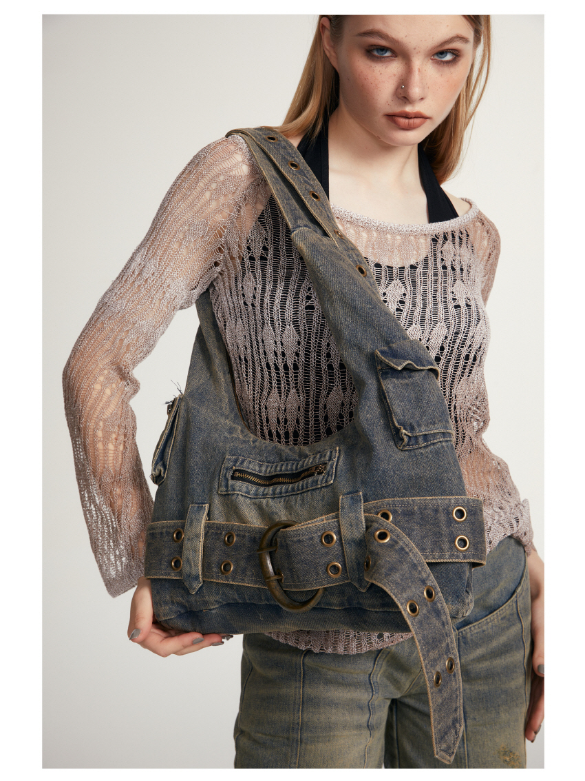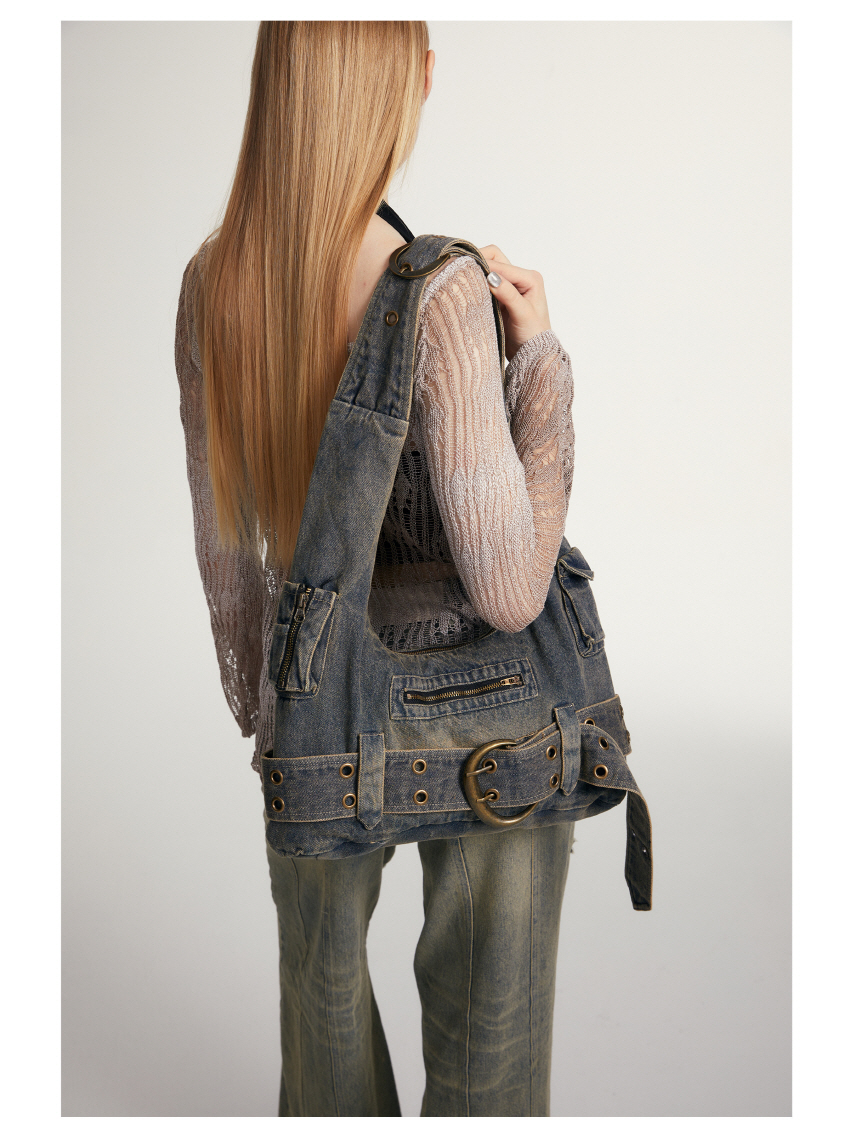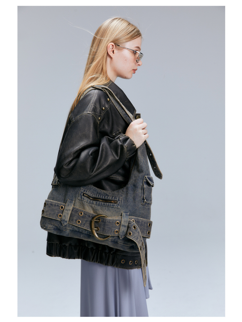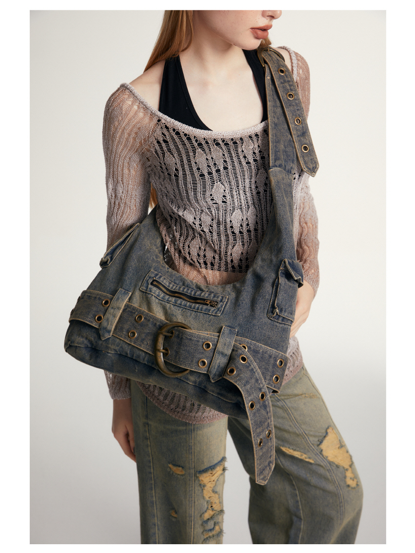 빈티지 데님 소재를 사용한 캐주얼한 스타일의 크로스 숄더 백입니다.