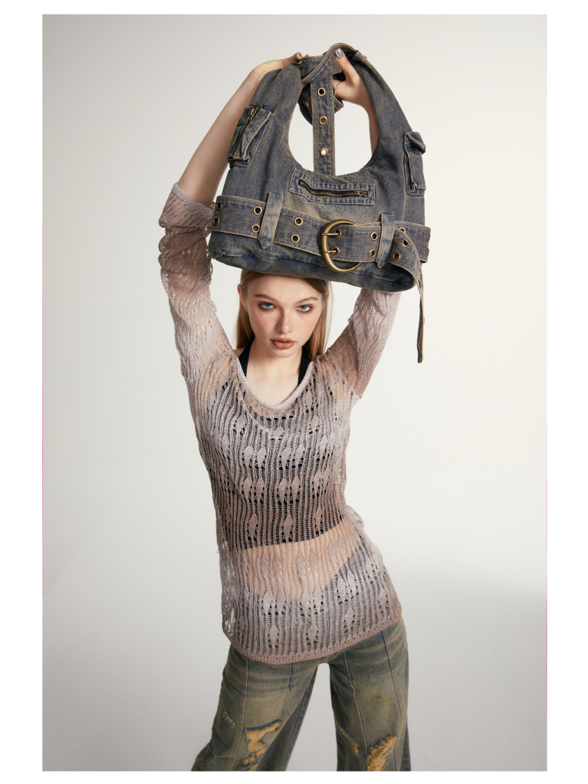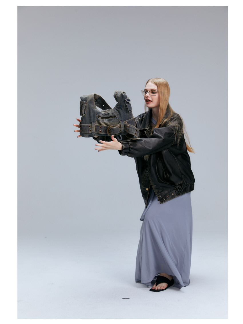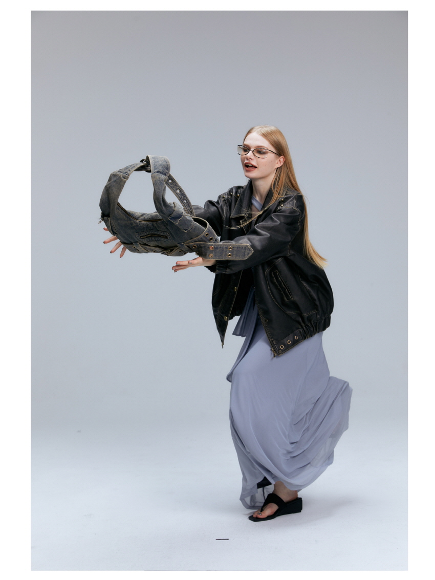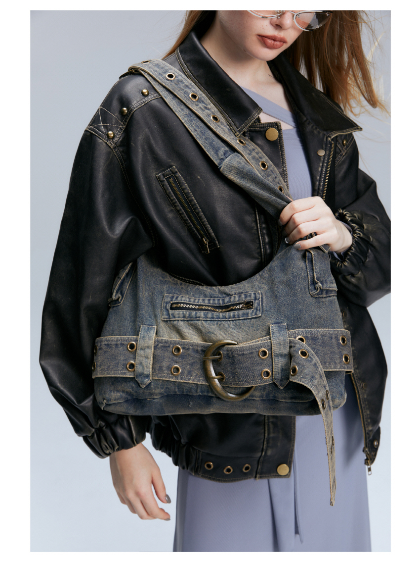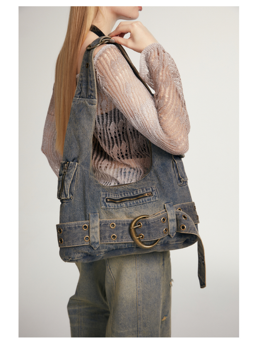 빈티지 데님 소재를 사용한 캐주얼한 스타일의 크로스 숄더 백입니다.