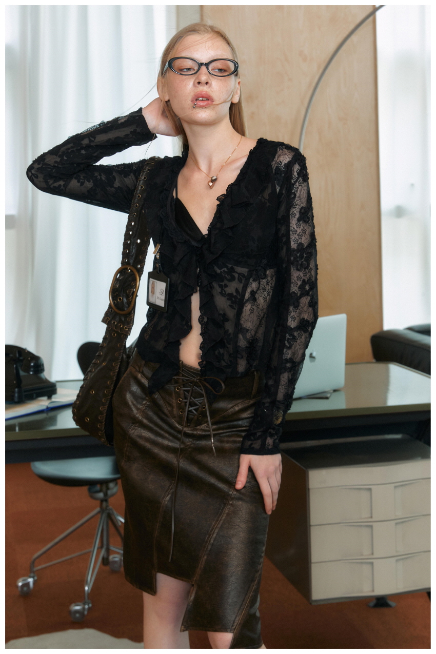 프릴과 레이스 디테일이 아름다운 시스루 셔츠입니다.
