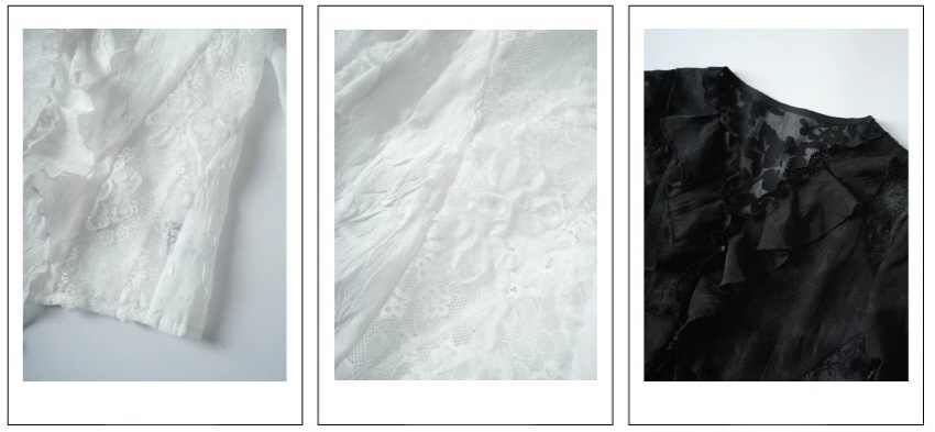- 아름다운 레이스를 조합하여 여성스러우면서 섹시한 무드로 연출함