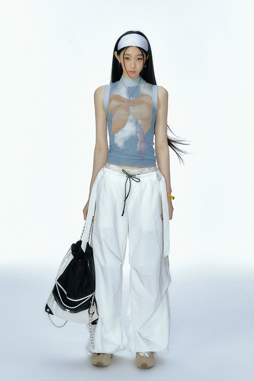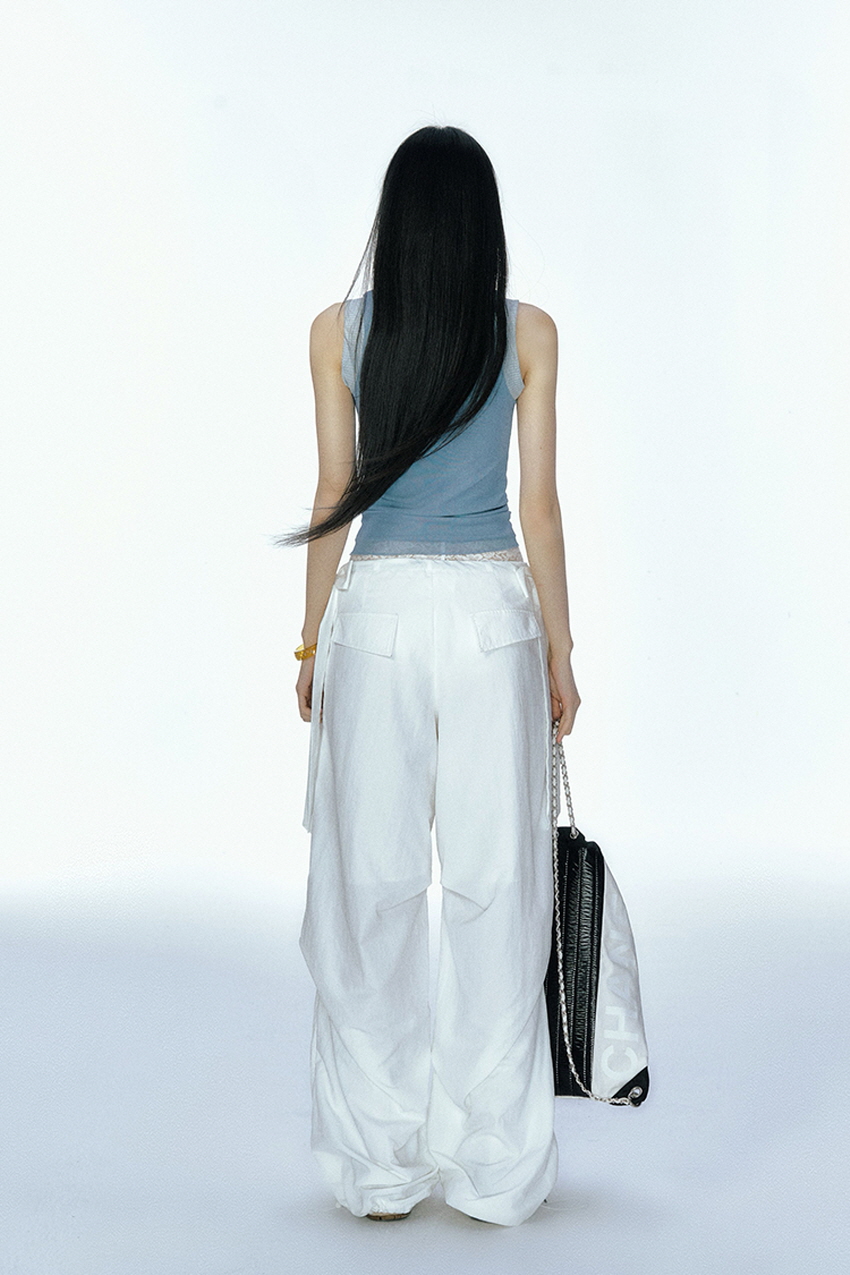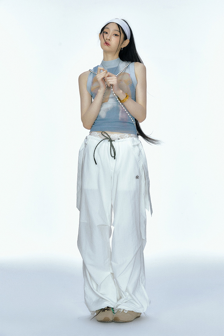 Detachable Ribbon White Sports Pants